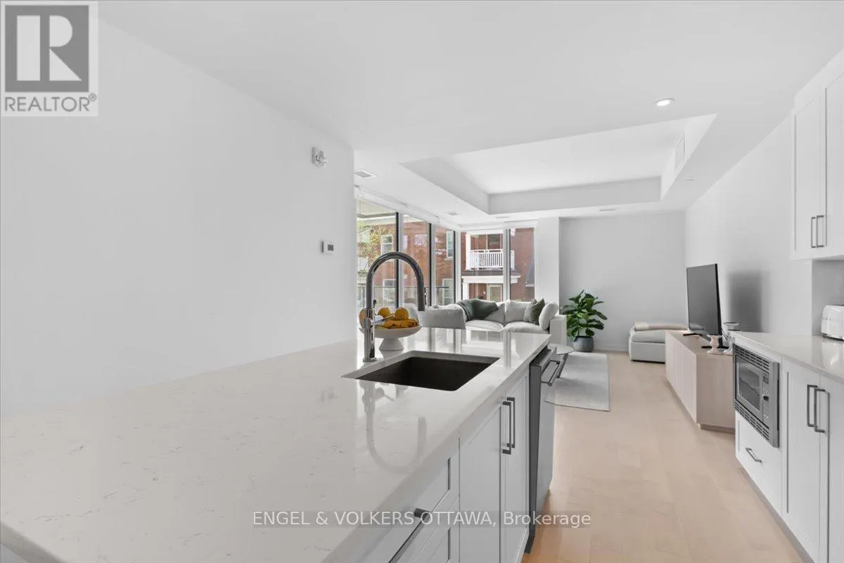Corner of Aylmer and Galt Stone Abbey Residences is a truly exclusive boutique condominium with only 19 suites, located on a quiet residential street in Old Ottawa South. This is a 2 bedroom 2 bathroom corner suite measuring at 1016 sq ft, with incredible finishes throughout. This unit showcases a sleek, contemporary kitchen outfitted with stainless steel appliances, a built-in cooktop and microwave, quartz countertops, and a spacious island that offers both extra prep space and comfortable seating. Great primary bedroom with a walk-in closet and a spacious ensuite with a separate tub and walk-in glass shower. Enjoy a private balcony with a gas hook-up, where striking stone architecture adds timeless charm. Moments away from the countless shops and restaurants of Old Ottawa South, Lansdowne and the Glebe, yet surrounded by nature with bike and walking paths nearby. Building amenities include visitor parking, Rooftop Terrace with BBQs and incredible views of the Rideau Canal. Underground parking spot and storage locker included. (id:27476)