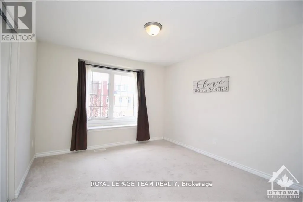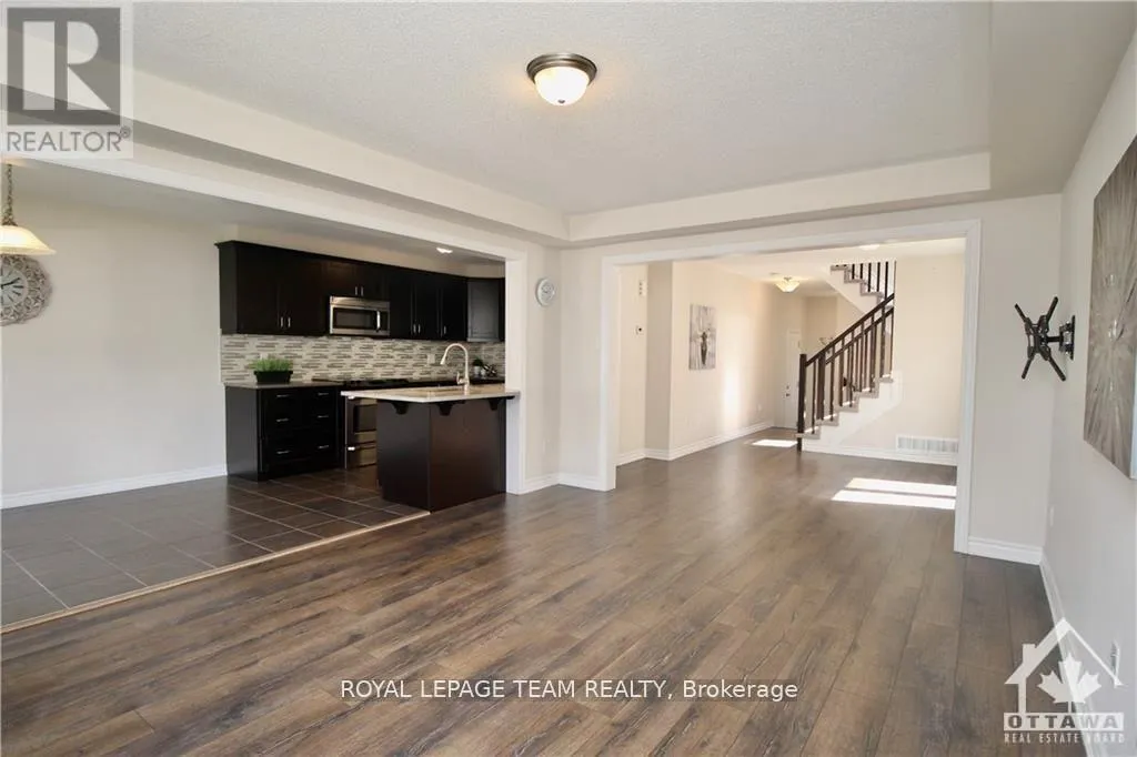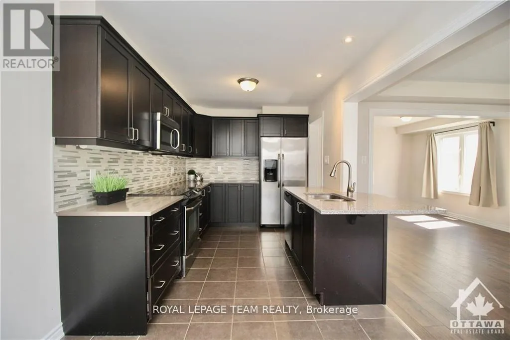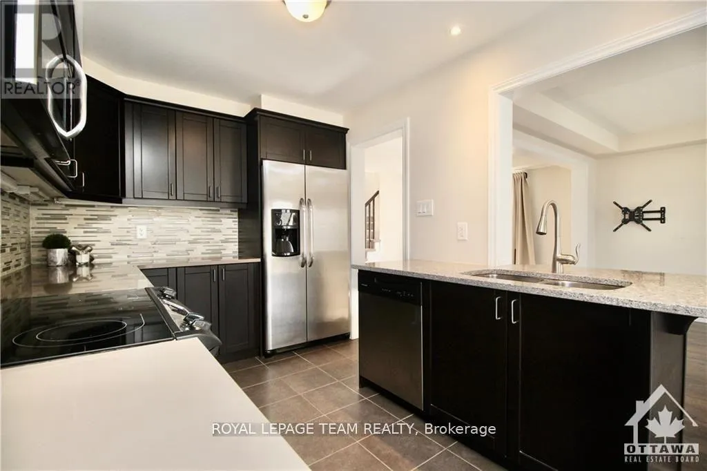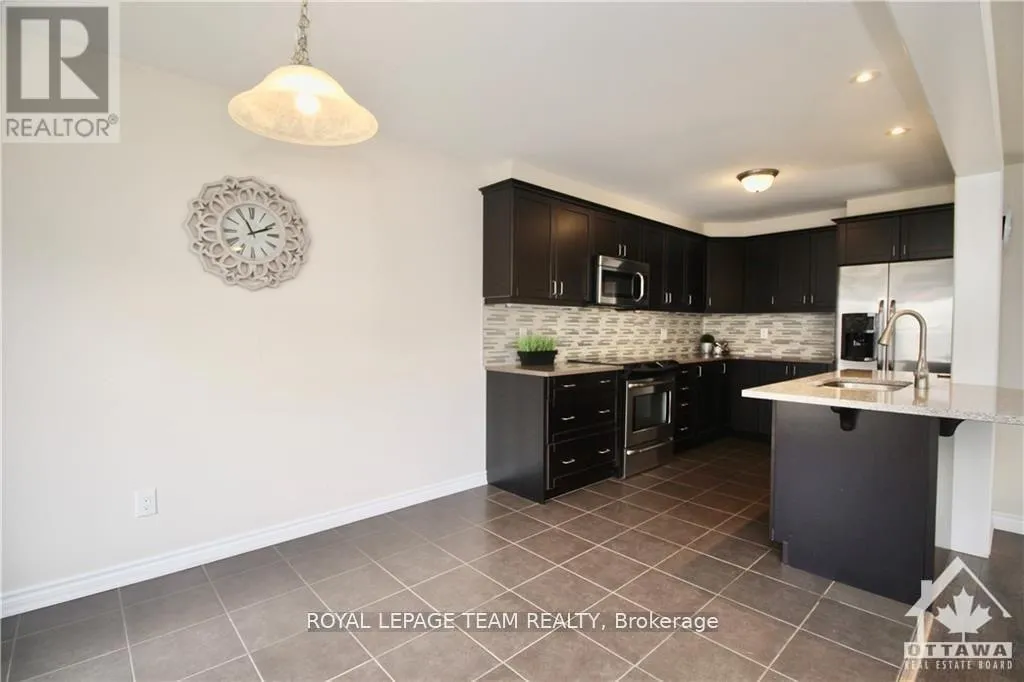 Cross Streets: Hope Side Road and Old Richmond Road. ** Directions: Hope Side Rd. to Acceptance Place, Right onto Summergaze Street to Left on Foxlight. Welcome to this bright and spacious 3-bedroom, 2.5-bath end-unit townhome, offering over 1,800 sq. ft. of living space above grade. Situated in sought-after Monahan Landing, this home is flooded with natural light and perfectly located near schools, parks, shopping, recreation, trails, and OC Transpo. Step into a luxury kitchen featuring quartz countertops, tile backsplash, ceramic flooring, solid wood cabinetry, and stainless steel appliances including a fridge with ice and water, stove, dishwasher, and overhead microwave/hood fan. An inviting eat-in area with ceramic floors and direct access to the fully fenced backyard makes this kitchen as functional as it is stylish. The open-concept main floor offers excellent flow for everyday living and entertaining, with a bright living room featuring a coffered ceiling, a separate dining area, and a convenient powder room. Upstairs you'll find two generously sized secondary bedrooms, a full 4-piece main bathroom, and a spacious primary suite complete with a 3-piece ensuite with walk-in shower, plus both a walk-in closet and an additional standard closet. The unfinished basement provides endless possibilities with an open layout and a rough-in for a future bathroom. This end-unit offers privacy and additional side windows for extra natural light This home delivers comfort, style, and exceptional convenience in one of Kanata's most family-friendly communities. (id:27476)