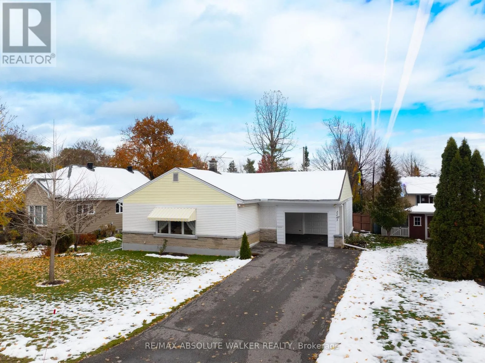 Cross Streets: Alta Vista Dr./Kilborn Ave. ** Directions: Alta Vista Dr. to Kilborn Ave. to Hillary Dr. Welcome to this charming three-bedroom, two-bathroom bungalow located in the highly sought-after neighbourhood of Alta Vista. The main level features beautiful hardwood flooring and spacious living and dining rooms, perfect for entertaining or relaxing with family. The finished lower level offers incredible versatility, including a large recreation room, powder room, den, office, and a convenient laundry/storage area. Outside, enjoy a lovely rear yard that backs directly onto Reeves Park, providing a peaceful and private setting. Additional highlights include a single-car garage, carport, and close proximity to hospitals, shopping, parks, and public transit. This home combines comfort, convenience, and character - a perfect place to call home. (id:27476)