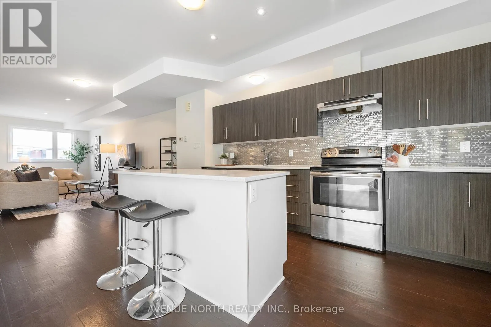 Cross Streets: Carling Ave & Woodroffe Ave. ** Directions: HWY 417 to Woodroffe. Modern 2015-built 3-bed, 4-bath semi in a prime location with quick highway access to downtown and many amenities. Freshly painted throughout, the main level features a tiled foyer, bedroom or home office, full bath, and access to the very oversized garage. Open-concept second level offers 9-ft ceilings, hardwood floors, pot lights, and large windows bringing in tons of natural light. Stylish kitchen with quartz counters, island, backsplash, stainless steel appliances, and access to a private balcony. Very spacious living and dining areas and a powder room complete the 2nd level. Upper level includes two bedrooms, each with an ensuite, plus convenient laundry. Basement offers plenty of storage. Walking distance to shops, schools, and transit. (id:27476)