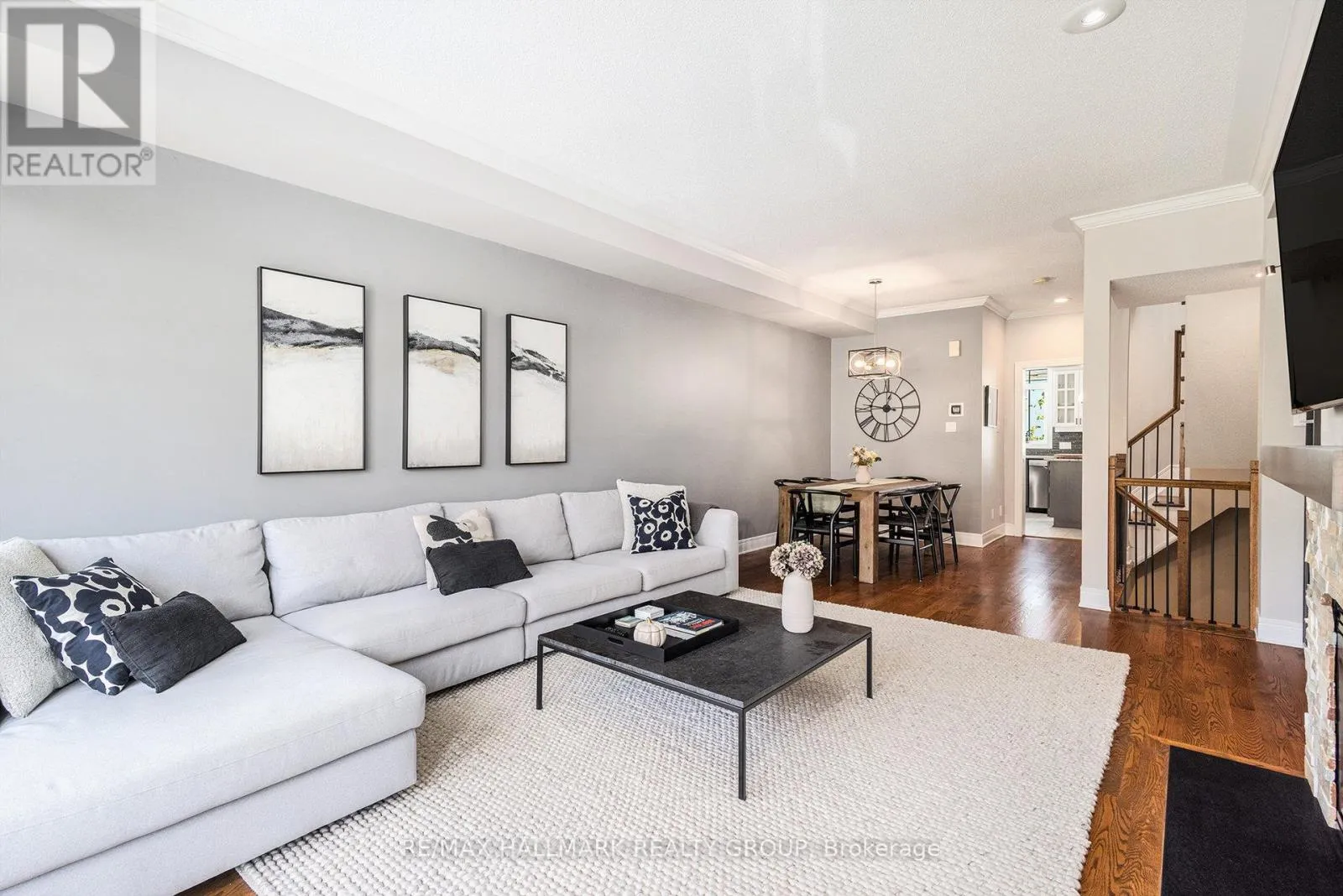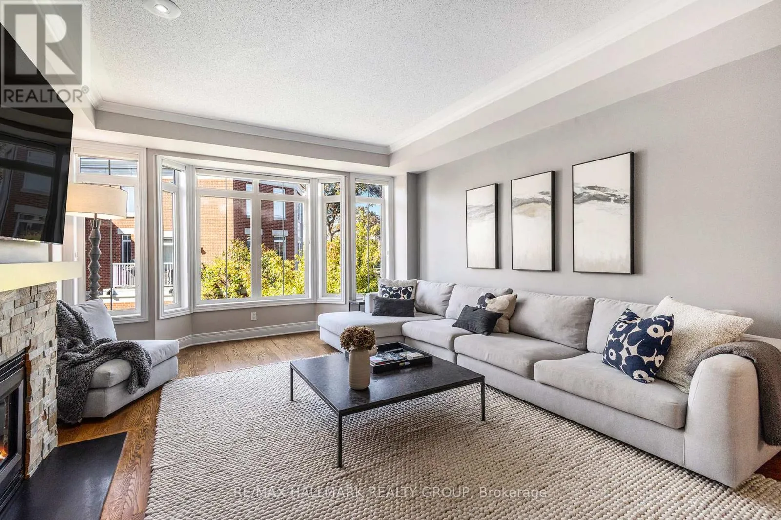 Cross Streets: Concord/King's Landing. ** Directions: Main Street, east on Greenfield, left on Concord to King's Landing. Experience refined living along the Rideau Canal in this executive townhouse. Step into the inviting foyer, where a bright office/den opens through sliding doors to a landscaped yard with a composite patio, perfect for work or relaxation. The open-concept living and dining area features a cozy gas fireplace and a large west-facing picture window, offering natural light and views of the Canal. Oak hardwood floors, an elegant oak staircase, and soaring 9-ft ceilings throughout create an airy, sophisticated ambiance. The updated kitchen boasts high-end stainless steel appliances, granite countertops, a center island with seating, and a spacious pantry for added storage. Upstairs, hardwood floors continue alongside a skylight and a conveniently located laundry area. Generously sized bedrooms provide peaceful retreats, including the primary suite with a walk-in closet and updated ensuite. Unique to this home are the architecturally designed walled deck and the second-level glass-walled balcony off the kitchen. An attached single-car garage offers added convenience. Just steps from the multi-use path, the University of Ottawa, shops, and restaurants, this beautifully maintained gem combines elegance, comfort, and an unbeatable location - all enhanced by the stunning views of the Rideau Canal. (id:27476)
