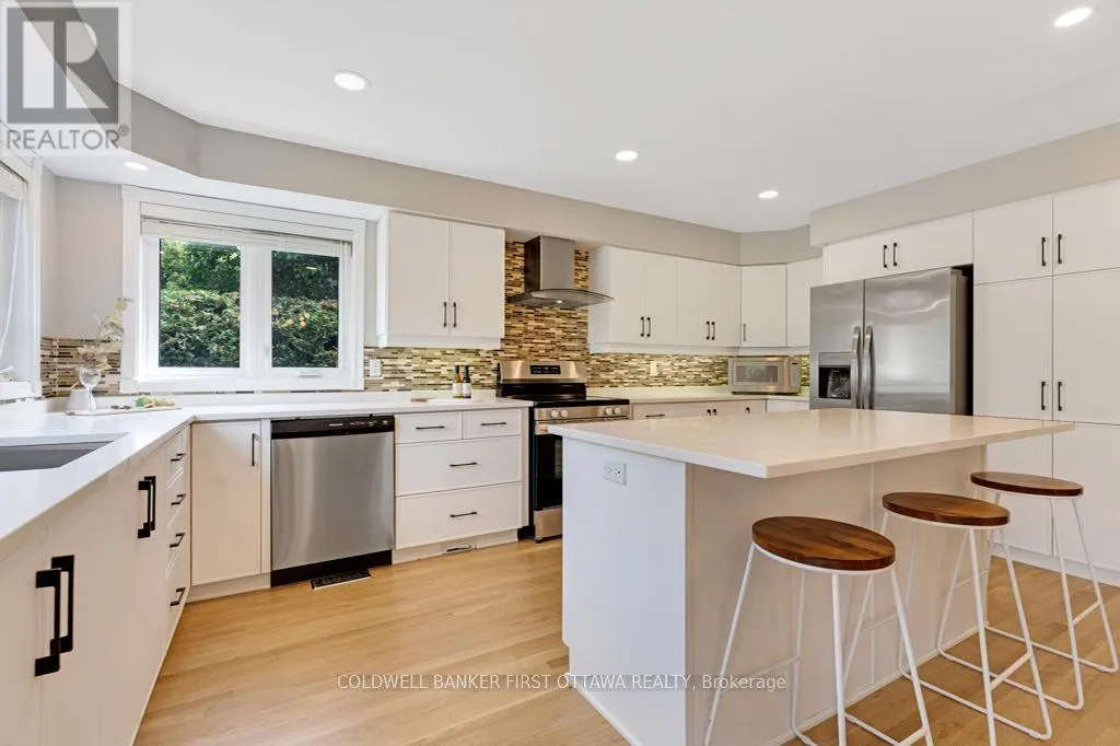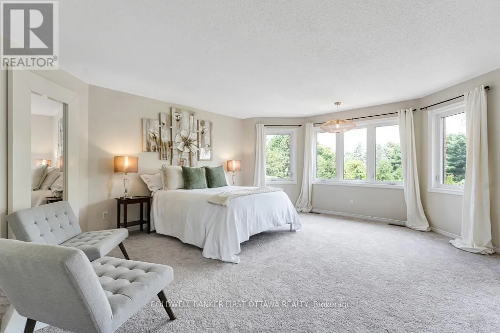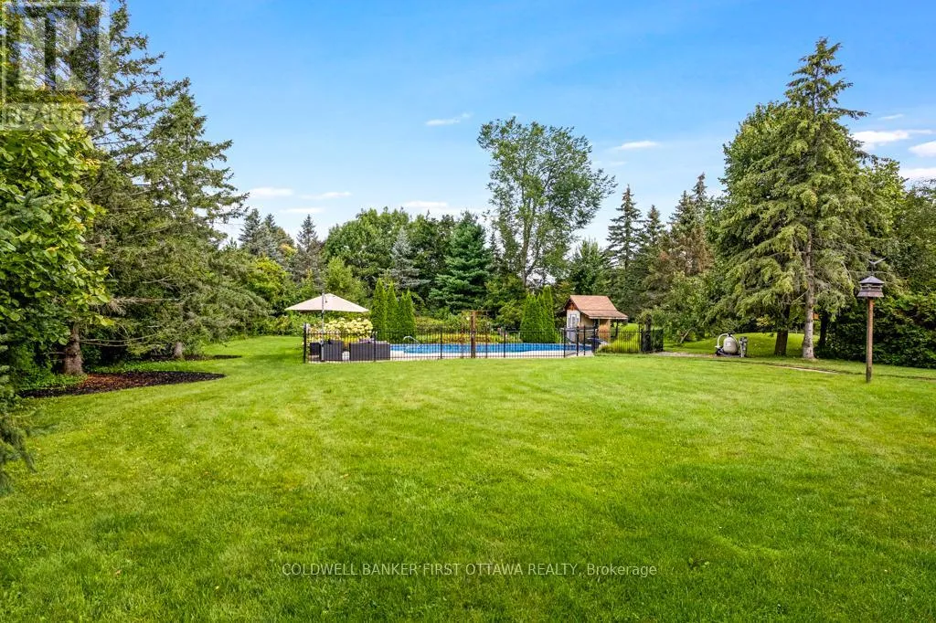 Cross Streets: Bankfield Rd. Left on Potter Drive. ** Directions: Ottawa Hwy 417. Exit Hwy 416. Drive south on Hwy 416. Exit Brophy Drive/Bankfield Road. Left on Bankfield Road. Right on Potter Drive. Left on Pettapiece Crescent to Pin #5525. Gracious home for the family wanting to live on quiet treed crescent where you can walk to a park for play, basketball and hiking. Along with its idyllic setting, this home is designed for the family desiring big rooms, sunny spaces and generous bedrooms - including five bedrooms on the second floor. Lovely landscaped interlock walkway leads you to front entrance with sparkling white foyer offering closet and new ceramic floor. Home has 4,349sf, plus 2,328sf in finished lower level. Off front foyer is home office or, den for quiet times. Elegant vaulted living room with natural light flowing thru grand arched window. Formal dining room for family celebrations and entertaining. Ultimate gourmet kitchen all renovated & upgraded in 2024 with new quartz counters, new appliances and deluxe island-breakfast bar. Kitchen also has dinette in windowed alcove with garden door to deck. Spacious comfortable familyroom features natural gas fireplace. Main floor powder room plus combined mudroom-laundry room with closet, storage cupboards, sink and window. Sweeping central staircase up to wide circular landing on second floor. You'll love the palatial primary suite with its custom walk-in closet-dressing room with big windows; your luxurious 5-pc spa ensuite has double-sink vanity with cascading quartz counter, deep soaker tub and glass shower with body spray. Four more bedrooms, one with 3-pc ensuite. Second floor 5-pc bathroom has porcelain tiles, double-sink vanity, soaker tub plus glass rainhead shower. In the finished lower level, you have another family room, rec room, den, kitchenette/bar, gym and 3-pc bathroom. The attached 3-car garage is insulated and finished. Auto generator included. Backyard oasis a family's staycation dream with private park-like 0.7 acre bordered by mature trees. Expansive deck includes hot tub. Added bonus is heated, salt-water, in-ground pool. All this, located in prestigious family-friendly Manotick Estates, just 30 min drive to downtown Ottawa. (id:27476)