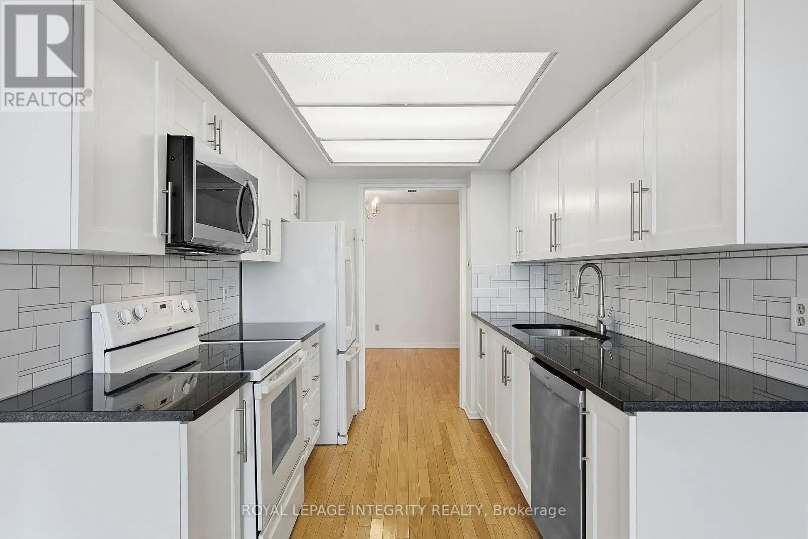 Cross Streets: Riverside & Industrial. ** Directions: Riverside Dr. south of Industrial, turn into the Riviera Gated Condo Community. Excellent value in Ottawa's premier condo community! The highly desirable Riviera Towers are well known for their friendly residents, diligent management, and top-level amenities. A great opportunity for buyers and investors alike. Similar units rent for ~$3,000. Feel at peace in this Gated Community with 24hr Security. Turn-key 2 bedroom home with 2 full bathrooms. The "Cannes" floor offers a functional layout and large windows to keep things bright and sunny all year long. Highlights include an updated kitchen with stone countertops, brand new wide-plank hardwood flooring both bedrooms, and marble floors in the foyer and ensuite bathroom. In-unit laundry (plus a separate storage space) make everyday living in this condo a breeze. Renowned amenities include indoor AND outdoor pool, hot tub, fitness centre, library, tennis courts and social/party room. Community BBQs are also available, and the grounds are beautifully landscaped. Condo fees also include water & unlimited high-speed internet + cable. This property is in a prime location next to Hurdman Station, major roads, VIA rail, with Trainyards Shopping Centre 2 minutes down the road. This home comes with an underground parking space and locker. Live in luxury at The Riviera Towers. (id:27476)