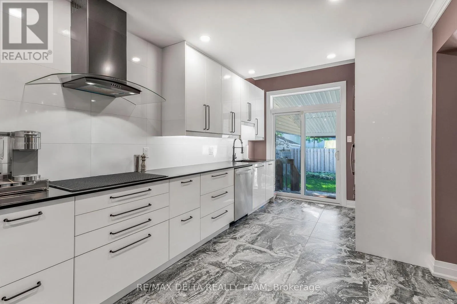 Cross Streets: Sleaford Gate and Longshire Circle. ** Directions: Woodroffe to Claridge, onto Sleaford and then onto Longshire Circle. Major renovations done in the last 5 years, over $150,000 spent in kitchen, appliances, ensuite bath, roof, triple paned windows, doors, landscaping and more.... Welcome to this beautifully updated 2-storey home in the heart of Barrhaven! Perfectly situated within walking distance to shops, restaurants, schools, parks, and convenient transit, this home combines comfort with everyday convenience. Inside, you'll find a stylish, modern kitchen with sleek cabinetry, ample pantry space, multiple organizer drawers designed for functionality and high end built in appliances. The open-concept living and dining area is bright and inviting ideal for both family gatherings and entertaining. Patio doors off the kitchen lead to a large fenced backyard complete with a covered overhang, perfect for outdoor living year-round. Upstairs offers three spacious bedrooms, including a primary retreat with a walk-in closet and a fully renovated ensuite featuring a walk-in shower with built-in bench and elegant vanity. The fully finished basement adds even more living space with a versatile den, additional room, a kitchenette, laundry space, and plenty of storage. With new triple paned windows and doors (2023), this home is move-in ready and designed for modern living. Roof (front) 2012 and Roof (back) 2021, Furnace and A/C 2012. 24 Hours Irrevocable on all offers as per Form 244 (id:27476)