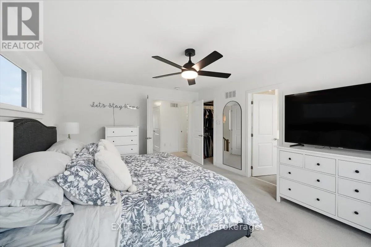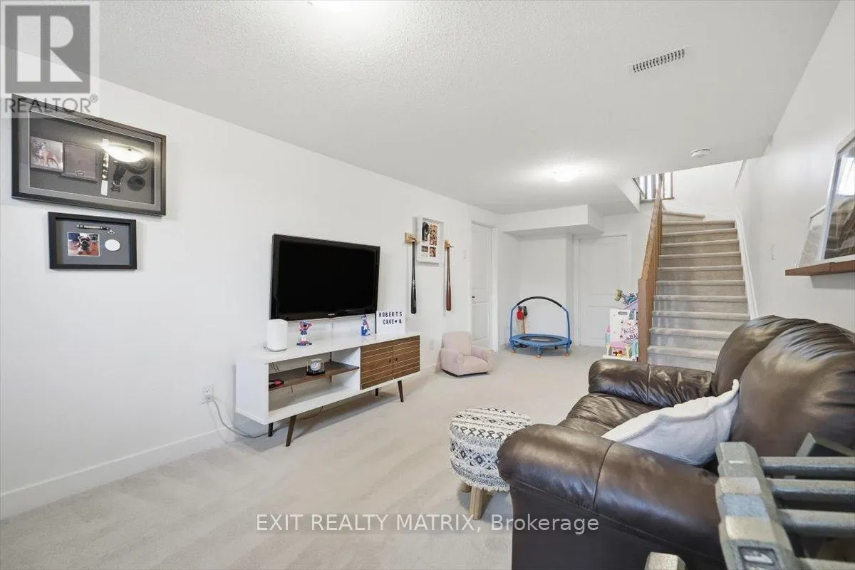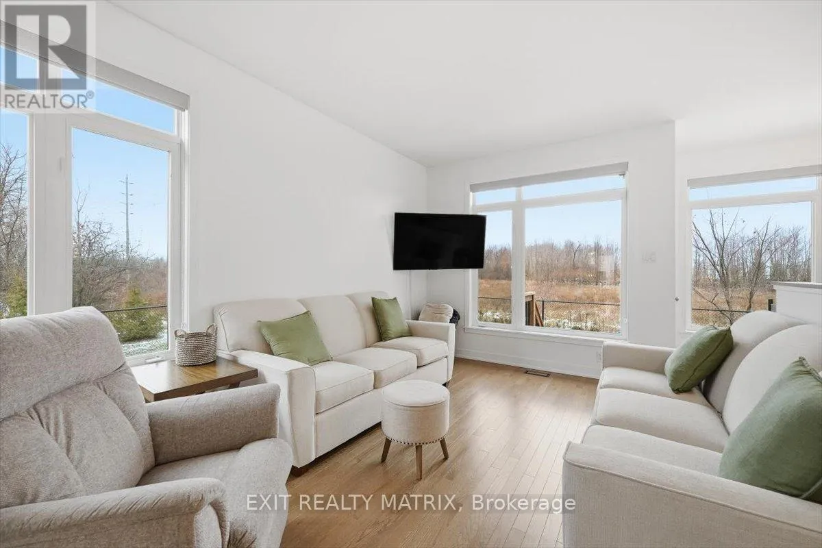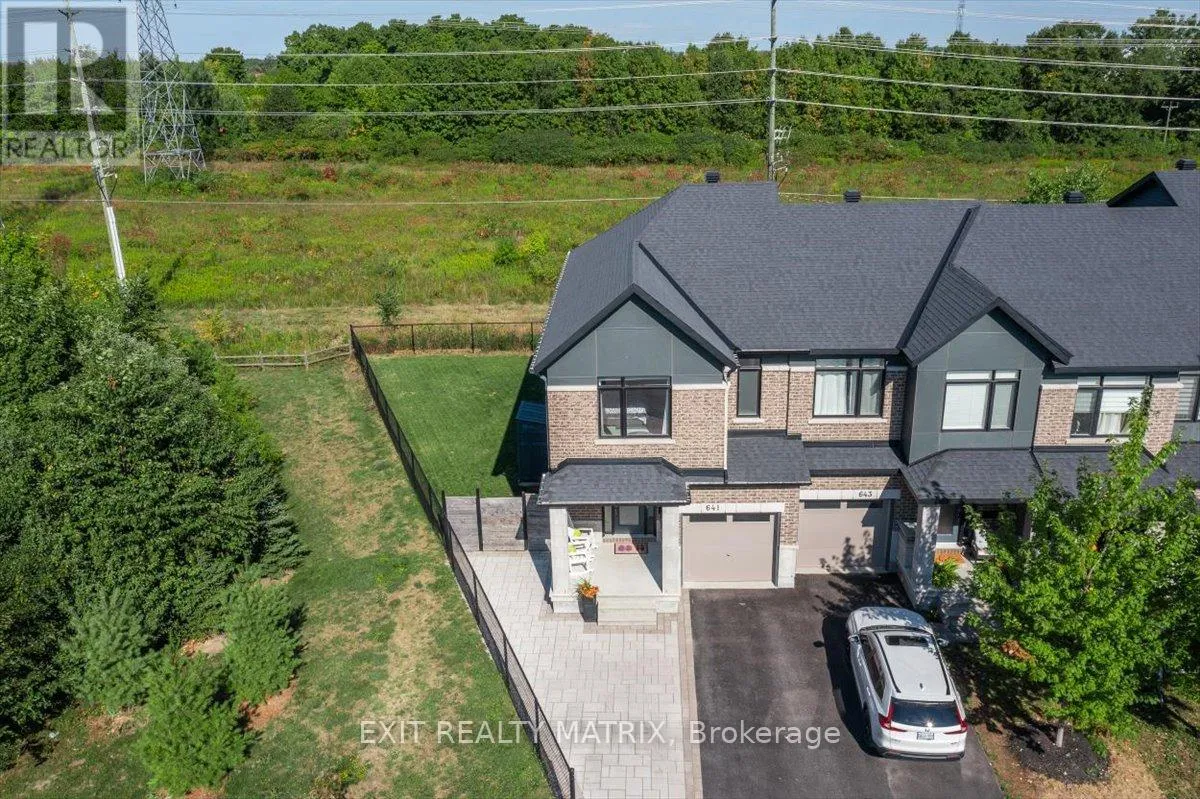 Cross Streets: Bobolink Ridge and Robert Grant Ave. ** Directions: Heading southeast on Robert Grant Ave, take the 1st exit onto Bobolink Ridge at the roundabout after Abbott St. Turn right onto Putney Cres and the destination will be on the left. Welcome to 641 Putney Crescent - a beautifully upgraded 3-bedroom end-unit townhome in Stittsville's sought-after Westwood community. This 2020 Cypress model provides approx. 1985sqft of living space and is situated on a premium lot with no rear neighbours and added side privacy, being steps from Putney Woodland Park. This home offers bright, modern living space designed for comfort and style. Step inside to a spacious foyer that opens into a warm, open-concept main floor. Hardwood flooring, large windows, and a thoughtful layout create an inviting atmosphere for both everyday living and entertaining. The kitchen features extended cabinetry, upgraded quartz countertops, a generous island, and excellent workspace. The living and dining areas flow seamlessly together, with views of the private backyard. A formal dining room with wainscoting and a powder room complete the main level. Upstairs, you'll find three well-sized bedrooms, including a peaceful primary suite with a walk-in closet and a stylish 4-piece ensuite incl. quartz counters. The secondary bedrooms offer flexibility for family, guests, or a home office. Second-floor laundry for added convenience. The finished lower level expands your living space with a cozy recreation room highlighted by a gas fireplace - ideal for movie nights or a playroom. A rough-in for a future bathroom provides added potential. Outside, enjoy a quiet setting with mature surroundings, backing onto the Trans Canada Trail, great walkability to parks, schools, and easy access to shopping, commuter routes (Highway 416, Highway 417) and CARDELREC Recreation Complex (ice rink, swimming pool & more!). This is a move-in-ready home offering comfort, modern finishes, and a standout location in a growing neighbourhood. (id:27476)