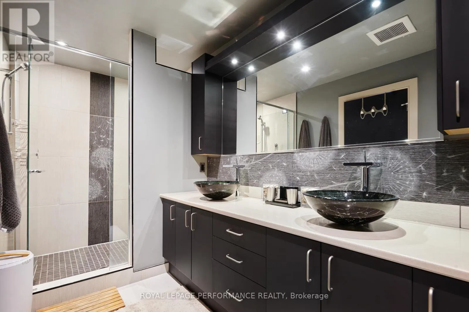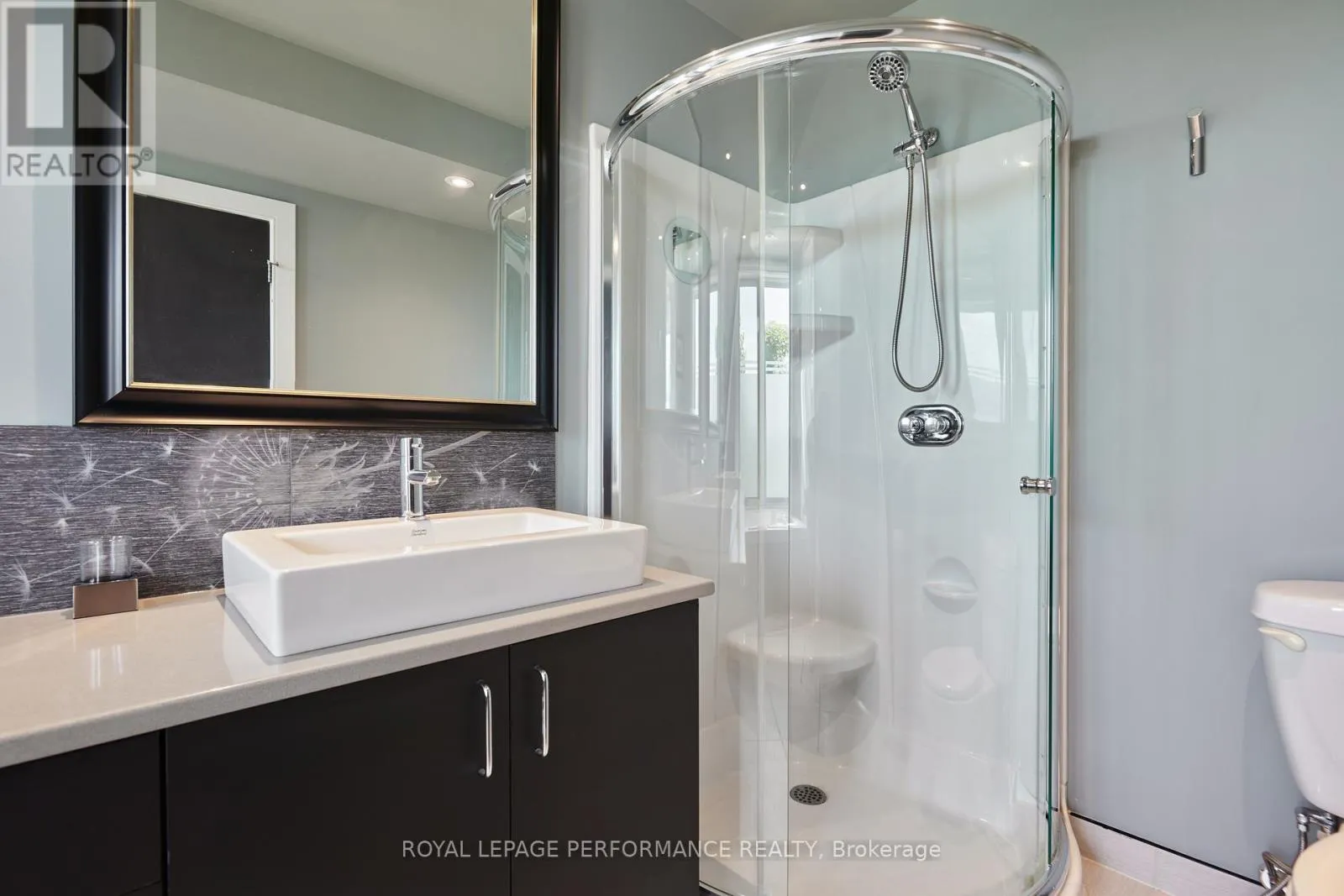 Cross Streets: Kingsmere and Lenester. ** Directions: Lenester to Kingsmere. This Luxury/Contemporary Single Family Alternative boasts over 3,500 sq. ft. of refined living space, Elevator and a spectacular rooftop terrace. Each bedroom is convenience by a personal ensuite and balcony. Inside this wide and spacious Freehold home, a chefs kitchen is a statement in style and function. Quartz countertops, premium appliances, and rich walnut espresso cabinetry create a striking focal point. Step through to the patio deck and enjoy your maintenance-free yard, with gas bbq hookup. Natural light bathes the living room and loft from expansive, VISTA-film treated windows(UV and IR protection) and automatic blinds. The second-level loft/great room continues with hardwood floors. A laundry room is perfectly positioned here for daily ease. The Primary Suite is a serene retreat, featuring a generous walk-in closet, and the first of 3 ensuites, this spa-inspired ensuite with waterfall soaker tub, dual vanities, glass shower, and direct access to a patio-sized private balcony. Secondary bedrooms each offer their own personal ensuites(double vanity, walk in shower in 2nd bdrm)( steam shower in 3rdbedroom) and each bedroom boast a private balcony (total of 3 ensuites and 3 balconies- one for each bedroom)The fully finished lower level provides direct garage access, a powder room with commercial wash sink, a spacious rec room, ample storage, elevator entry. Perfect for entertaining, the roof top terrace offers a hot tub, gas hookups, hot/cold water connections, and breathtaking skyline views and sunsets. while a heated driveway/pathway and 1.5-car garage ensure year-round convenience. Additional highlights include hardwood flooring throughout (except rec room), Central air conditioning, a new high-efficiency heat pump (2024), and a professionally landscaped backyard. Every detail of this residence blends timeless character with contemporary sophistication designed to elevate both everyday living and memorable entertaining. (id:27476)