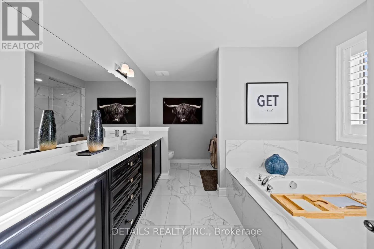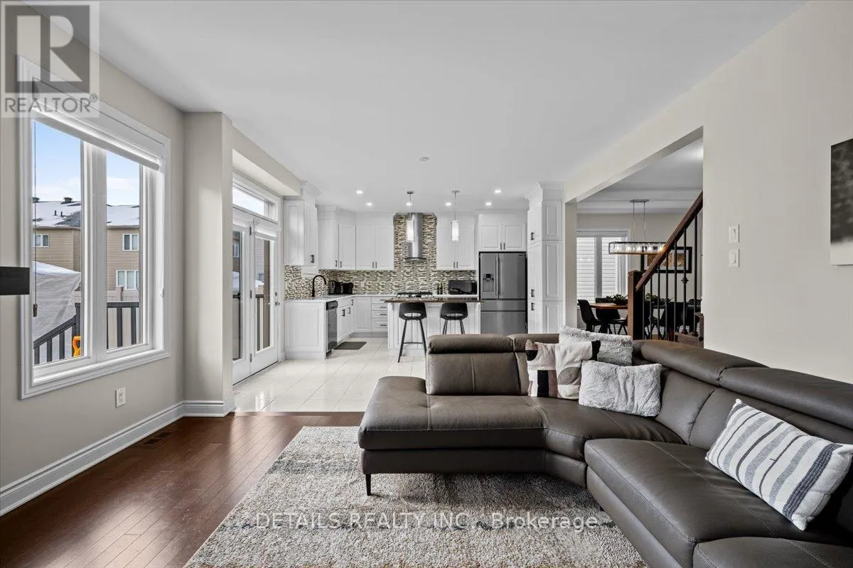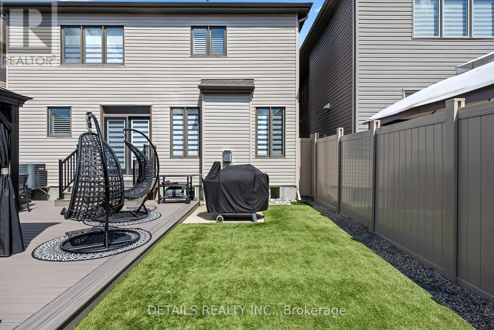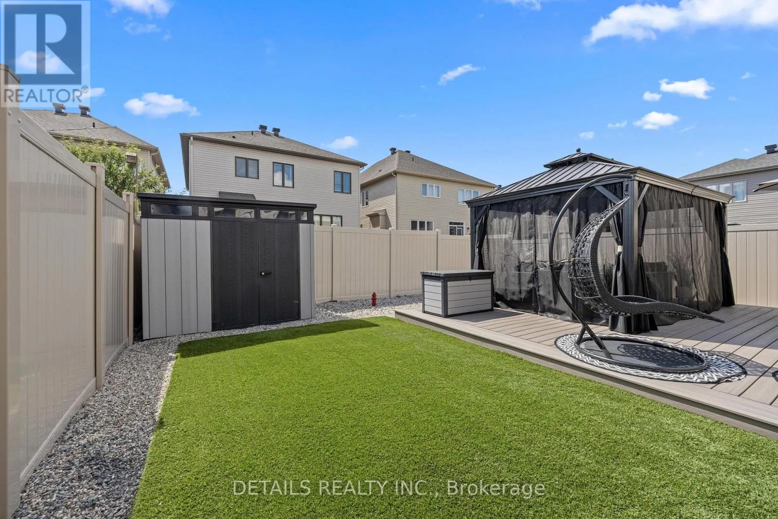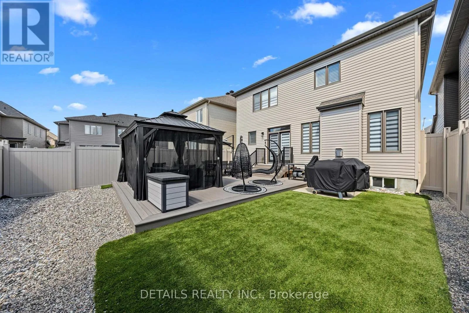 Cross Streets: PARADE DRIVE. ** Directions: Stittsville Main to Parade Drive, right on Manege. Welcome to 1008 Manege Street, a beautifully maintained home nestled in a quiet and sought-after corner of Stittsville, just minutes away from excellent schools, parks, and shopping. Upon entering this home you will discover superb style and designer decor throughout. The kitchen features quartz countertops, a spacious open -concept layout, top of the line stainless steel appliances; refrigerator and gas stove. The rich dark hardwood floors and ceramic tile span the main level, creating an elegant, cohesive flow. The bright and inviting family room offers plenty of space to relax, enhanced by a sleek modern gas fireplace. Convenient main-floor laundry and direct access to the double car garage are added bonuses, From the dining area, garden patio doors lead to your maintenance free backyard oasis. Enjoy a 24' x 20' composite deck, and a 14' x 12' gazebo with mesh and curtains, and high end artificial grass that stays green year round, no more weekend mowing. there is also a dedicated BBQ area (gas) installed.and to store all your items there is a 9' x 7' shed for that. Upstairs, the spacious primary bedroom includes a large ensuite with a separate shower and a soaker tub. Three additional generously sized bedrooms provide comfort and privacy for the whole family. The fully finished lower level adds even more living space, featuring a cozy seating area, an additional bedroom and a full bathroom with heated floor and a heated towel rack. In addition ample storage. This home is truly a must see, offering style, comfort, and low maintenance living in a fantastic location. (id:27476)