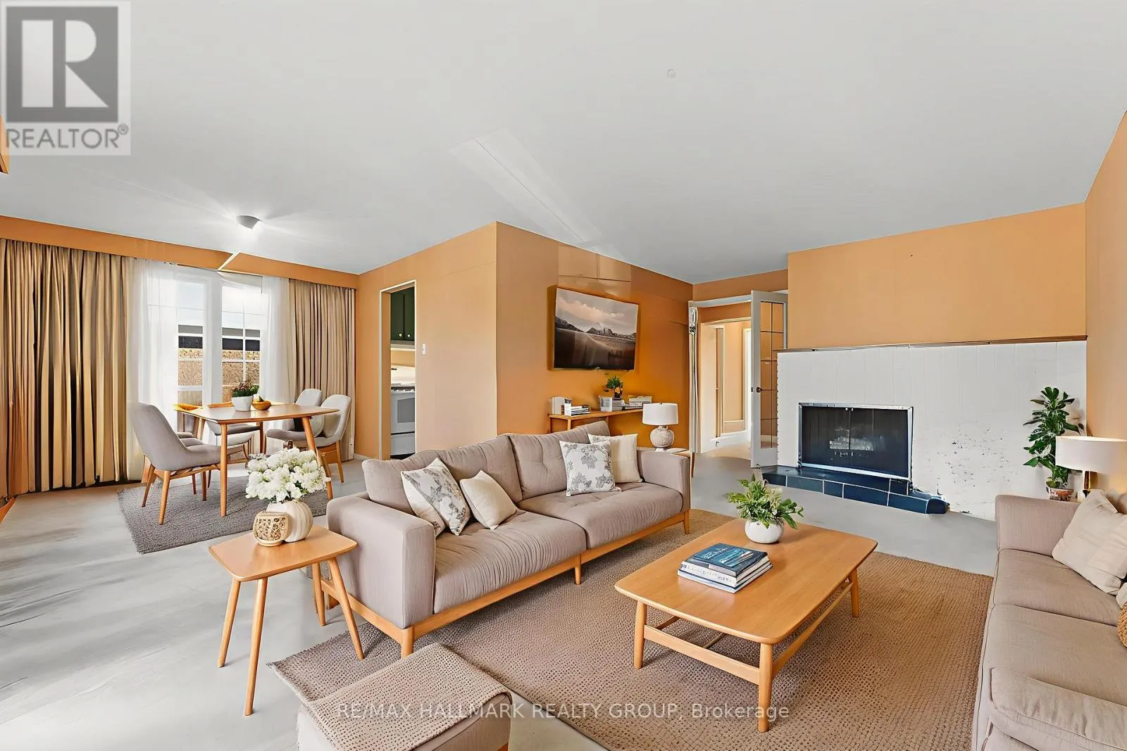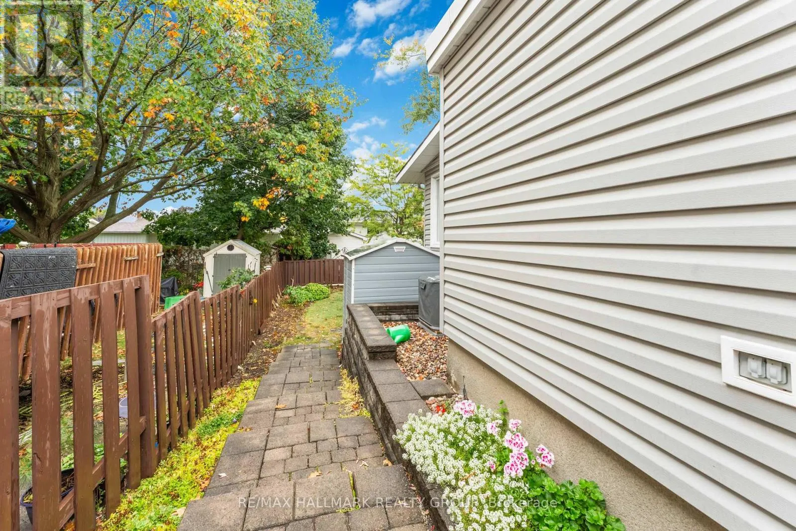 Cross Streets: Elmridge and Elmsmere. ** Directions: Turn onto Elmsmere Road from Montreal Road and Turn left onto Elmridge Drive. Bright and Welcoming 4-Bedroom Semi-Detached Bungalow in Beacon Hill South. First impressions are important. Excellent curb appeal with updated siding and a well-maintained exterior, set on a professionally landscaped lot with stone steps leading to a lovely treed garden. Inside, the sunfilled main level offers an entertainment-size living room with a cozy wood-burning fireplace, a separate dining room, and a generous eat-in kitchen. Two comfortable bedrooms and a full bathroom with shower complete this level. The open central hallway leads to the lower level, where you'll find two bright additional bedrooms overlooking the beautiful backyard gardens. This level also includes a 4-piece bathroom, great closet space, and a large unfinished area with potential for future family room, workshop, gym, or storage. The private, fenced yard is surrounded by mature greenery - perfect for quiet evenings, summer dinners outside, or kids at play. Updates include triple-pane windows, insulated siding, and renovated bathrooms (plus more). Fantastic location: steps to parks, schools, shopping, transit, and just minutes to downtown. Schedule B and 24-hour irrevocable on all offers as per Form 244. (id:27476)