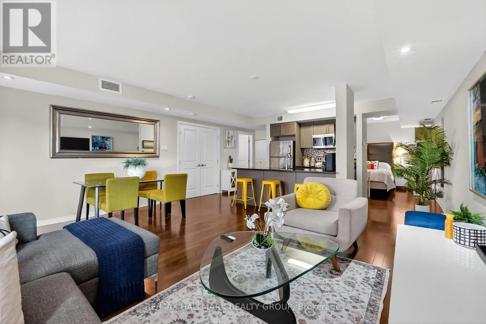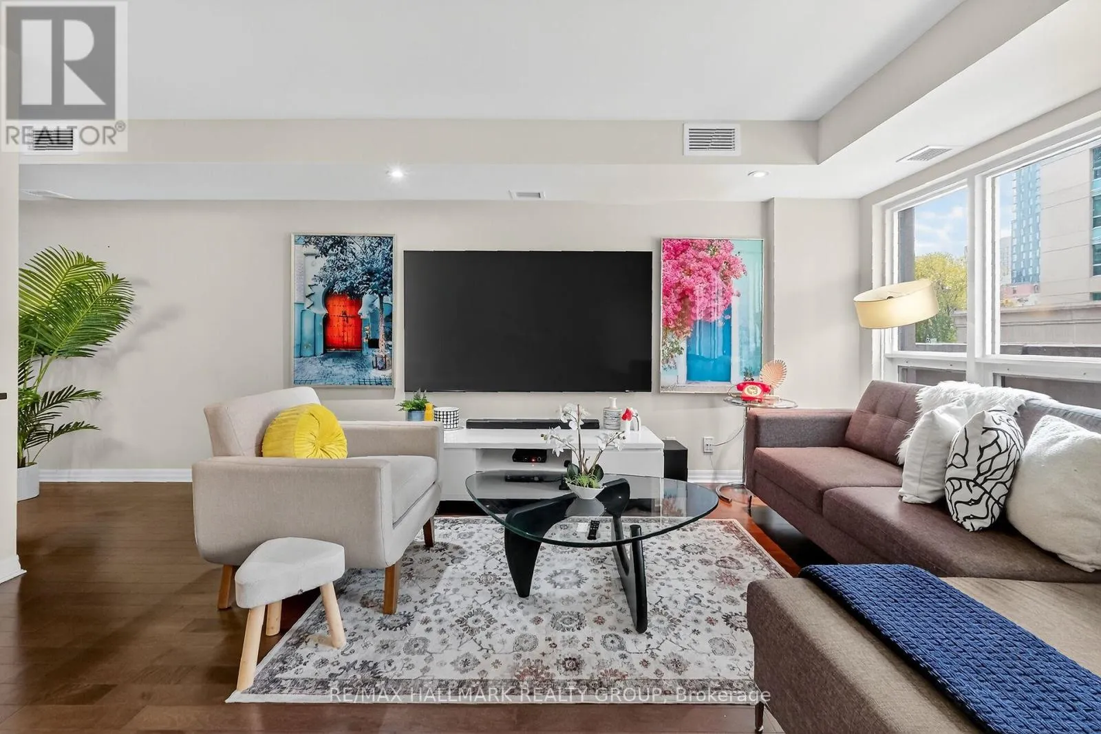 Cross Streets: Rideau Street and Cumberland Street. ** Directions: Take the 417 till the Nicholas Street exit, continue to Besserer St. and then left on Cumberland Street. Welcome to 242 Rideau Street, a spacious fully furnished 855 sq. ft. unit complete with a storage locker, ideally situated on the second floor of a well-maintained Claridge-built building in the heart of downtown Ottawa. Perfectly positioned within walking distance of everything you need-shopping, restaurants, transit, the University of Ottawa, the Rideau Centre, and the ByWard Market-you're also just steps away from the city's vibrant nightlife and endless excitement.The bright, open-concept floor plan includes a contemporary kitchen with stainless steel appliances and island seating, a stylish 3-piece bathroom with modern tile finishes, and the added convenience of in-unit laundry. Step out onto your private balcony to take in lively downtown views.Residents can also enjoy exceptional building amenities, including an indoor swimming pool, security, a fully equipped gym, a conference room, and an inviting common lounge. Tenant pays hydro. (id:27476)