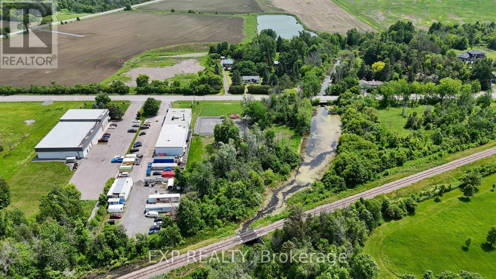 Cross Streets: Eagleson. ** Directions: North on Eagleson Rd toward Ottawa St - left on Ottawa St - property is on the right. An incredible opportunity awaits with this expansive 5.48-acre vacant lot, ideally situated on the northwest side of Ottawa Street in the heart of the Village of Richmond. With Rural General Industrial zoning & a Village designation in Ottawa's Official Plan, this site offers exceptional flexibility for a range of future uses. The lot's triangular shape & prime location among rural residential dwellings, light industrial buildings, & vacant lands provide endless possibilities for growth & diversification. A newly built 1500-home subdivision by Mattamy is underway directly across the street & a planned distillery nearby enhances the area's long-term potential. The northwest portion of the site, approximately 0.8 acres, has been fully prepared for development. A two-storey, 453.25 m (4,878 sq. ft.) prefabricated slab-on-grade building is proposed (& included in price), with a 20-foot side wall height allowing for an internal second storey. Stone base installation is complete, a 400-amp single-phase hydro service is in place, & two wells have been added for potential low-cost geothermal heating & cooling. A new, large septic system supports future development needs, while a gravel driveway offers 6 proposed parking spaces, with additional space available for expansion. All major studies - environmental, transportation, engineering, & planning - have been completed, & a delegated authority report has been received from the City of Ottawa. This significantly reduces the planning burden for a new owner, allowing for a fast-tracked site plan control agreement process with minimal additional effort. Surrounded by established businesses, future residential growth, & natural green spaces, this property presents a rare combination of rural charm, commercial viability, & investment upside - all within minutes of Eagleson Road & major arteries into Ottawa. Sellers open to offering VTB up to 50% and willing to obtain building permit; cost negotiable with offer. (id:27476)
