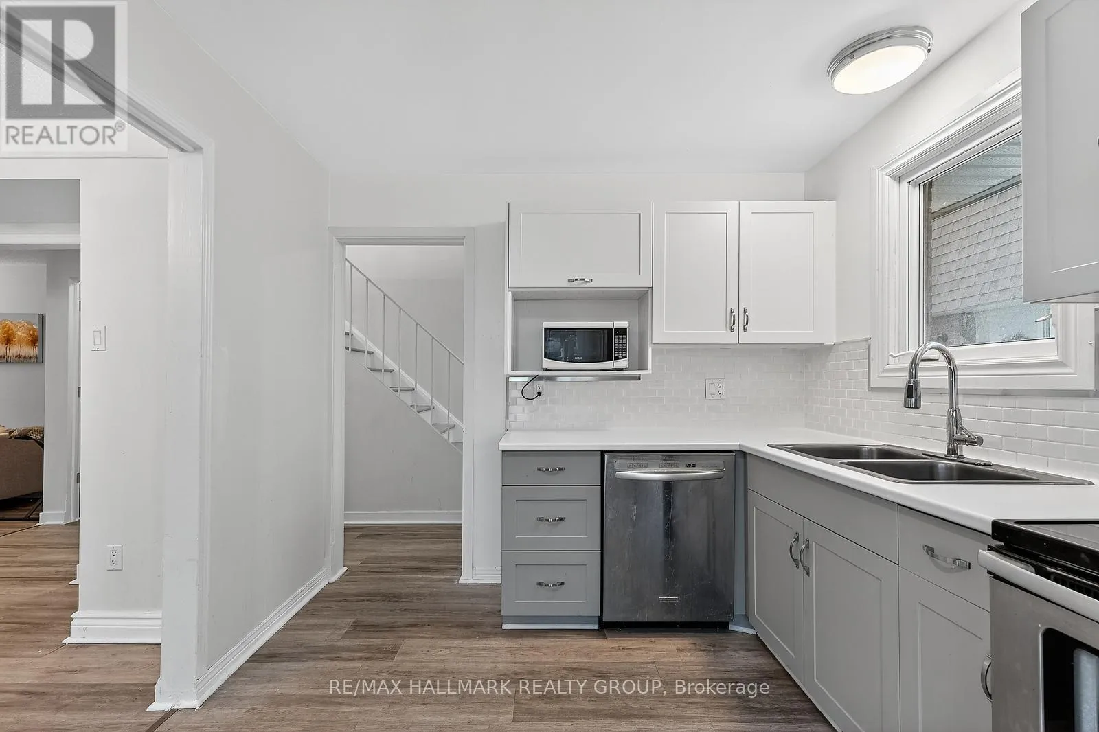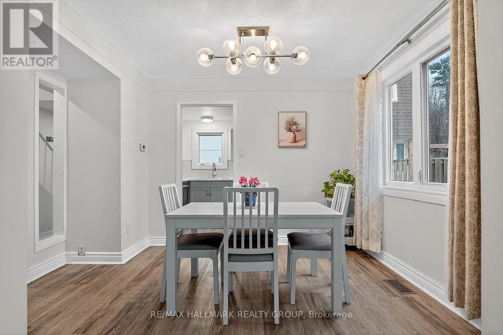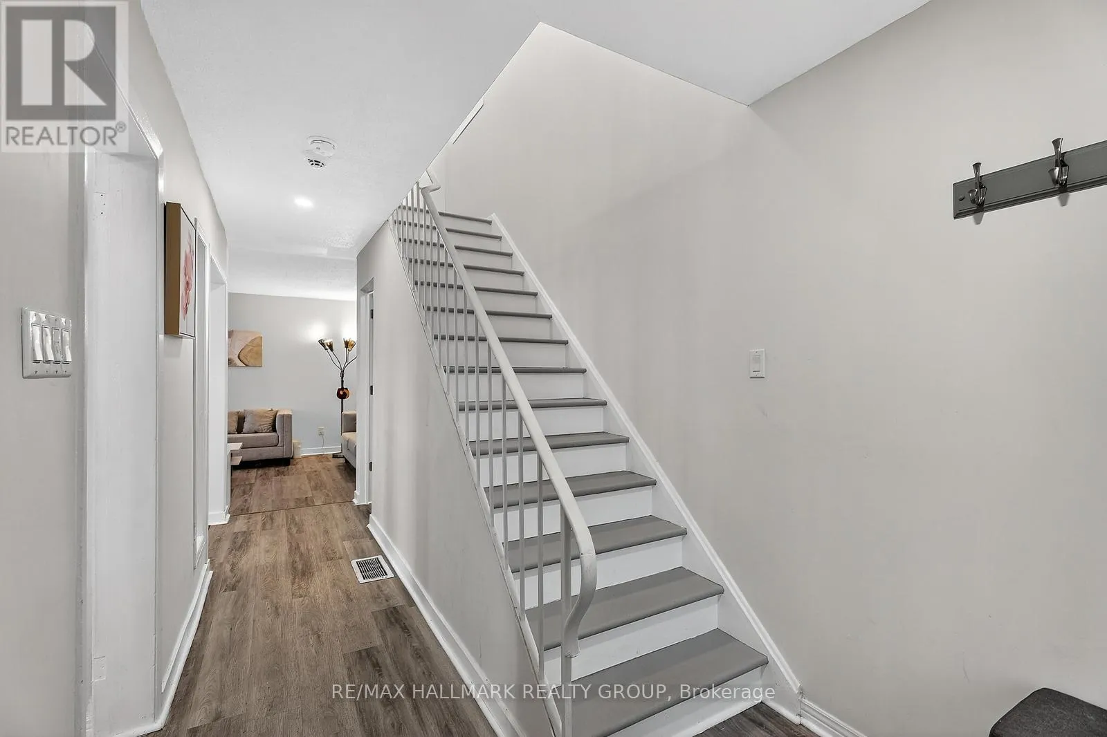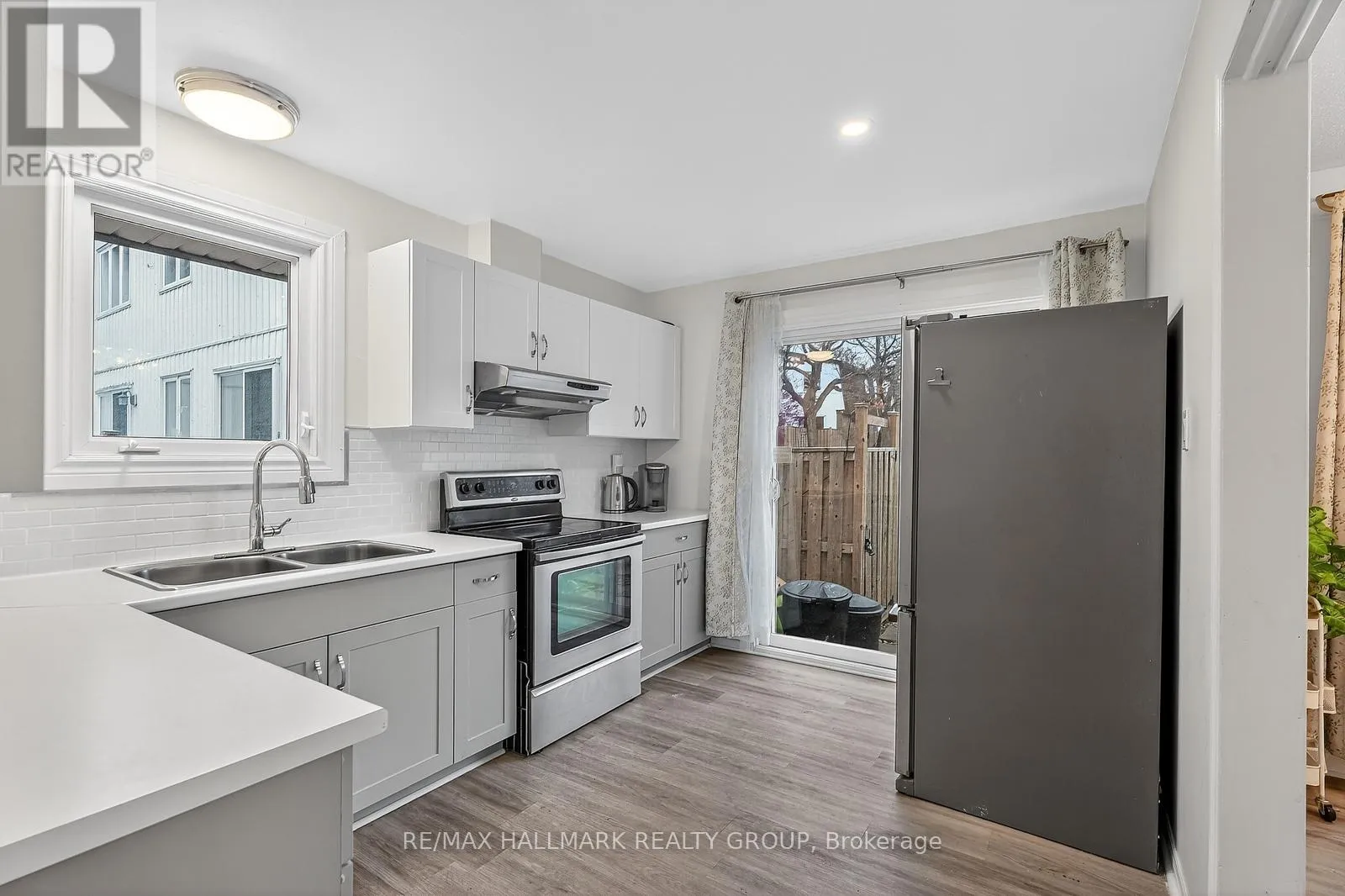Cross Streets: Montreal Rd & Ogilvie. ** Directions: From Ogilvie and Eastvale ,travel east to second driveway /parking lot , proceed south about 70 % of the parking lot , unit on the left (end unit ) - visitors parking turn right 30 or 40 meters . 837 EASTVALE DRIVE - UNIT 26 sits this 3 bedroom 2 full bathroom townhouse with plenty of space .The complex is designed with no adjoining walls ( like a detached dwelling ) and this unit has an unobstructed view west ,a very bright and sunny unit and yard , a few steps away from open green fields , toboggan hills , close to visitors parking ,choice parking spot at your unit ,fully fenced in (and private) patio'd yard c/w a garden shed , unit has many updates such as fully renovated kitchen, cabinetry, flooring ,stainless steel appliances , pot lighting & task lighting , backsplash , formal dining room which opens to a spacious living room , both living room and kitchen have double glass sliding patio doors which lead out to the west facing yard . Upstairs are 3 generous sized bedrooms , all with large operational windows, plenty of closet space ,very bright . As well a recently reno'd 5 piece bathroom ( 2 sinks ),newer vanity and tiled flooring , new(er) flooring on both main and most of second floor . Down to the lower level is the second full bathroom which houses the laundry facilities (new washer/dryer) plus a stand up shower, again plenty of room/very spacious . A smaller room which would make for great computer nook also gives access to the furnace and hot water tank , add to that a rec room ,great for a ping pong table , or flat screen ..... many possibilities -new drywall ceiling in rec room . Good strong condo corp , close to all amenities ,rec facilities (Sens Plex) ,Ottawa River pathway system, the new LRT is a very short walk away ,Costco, quality schools including the re-known Colonel By ( the IB program ) plus ,plus plus . (id:27476)