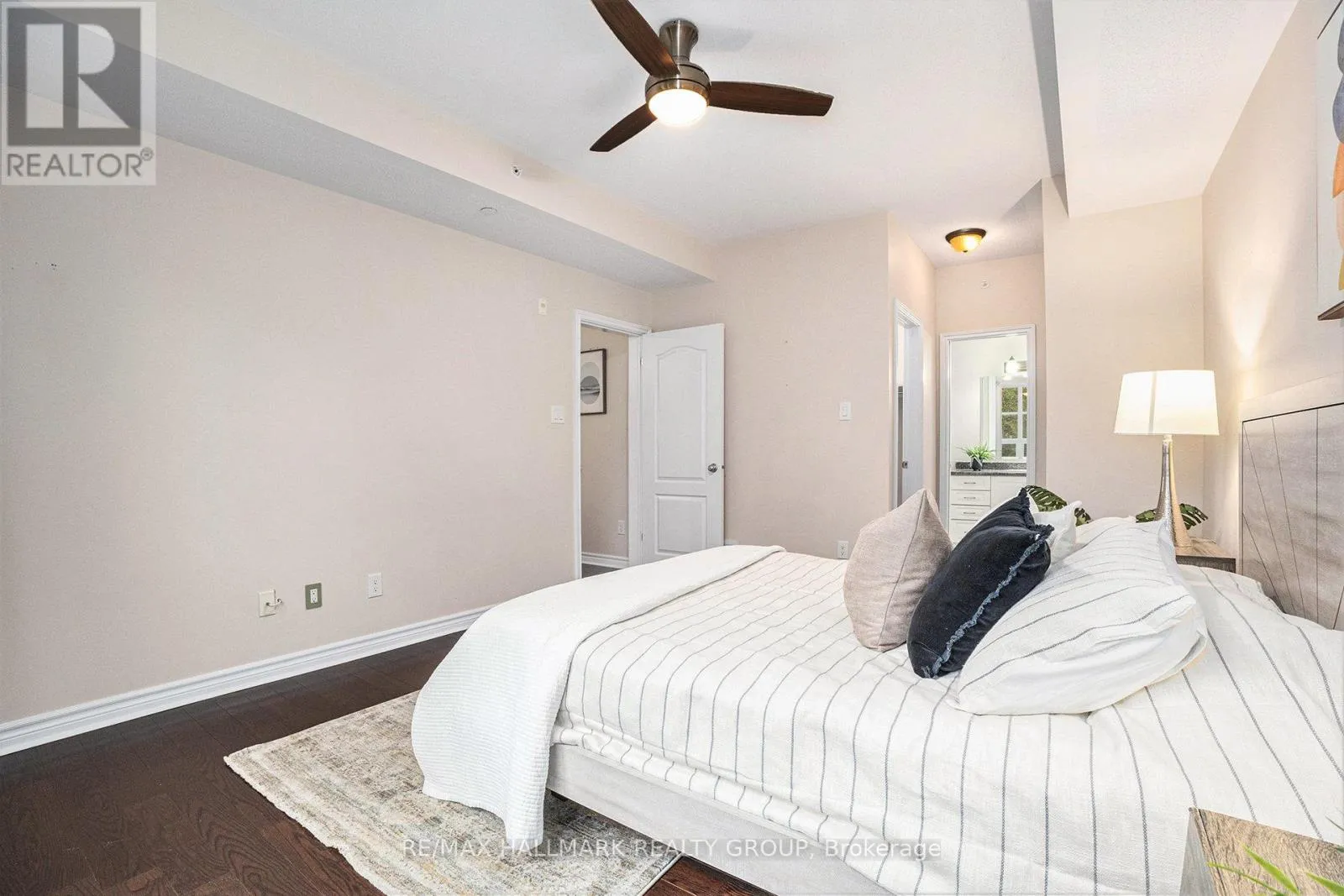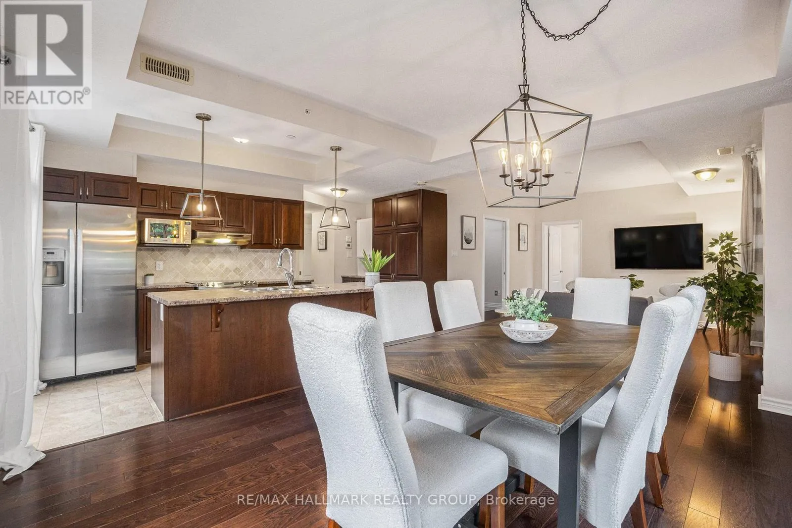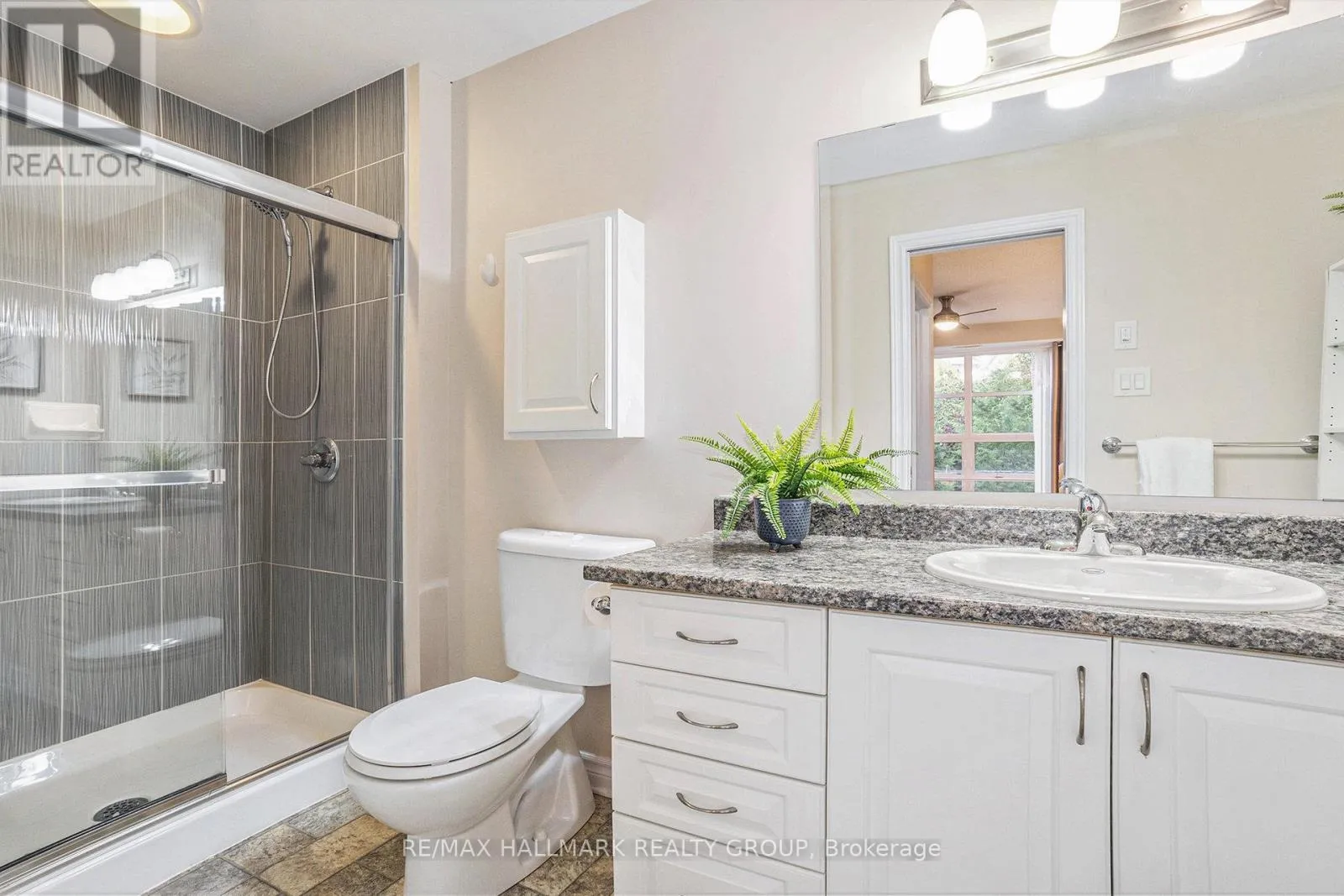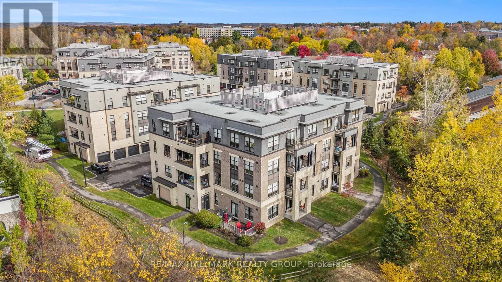Cross Streets: Bilberry/Titanium. ** Directions: HWY 174, exit Place D'Orleans to Champlain to Jeanne d'arc North, left Bilberry Drive, Right Titanium Drive, left Montblanc Private, Building #120. Gorgeous 2 bedroom plus den, ground level corner unit. Located in the exclusive adult oriented community of Quarry Ridge in Orleans, surrounded by paths and nature. If you are looking to downsize or simply get all your living onto one level without sacrificing space, this unit will impress as it offers approx.1326sqft of living space with 2 spacious patios surrounded by beautiful landscaping. The interior space is thoughtfully laid out with a great open concept kitchen, living and dining area with lots of natural light sitting in the heart of the home. While 2 spacious bedrooms are at separate ends of the unit. There is also a den that can be utilized as a 3rd bedroom/home office/guest room. The primary room can fit even the largest of bedroom sets and has vaulted ceilings, a walk-in closet, another closet, and an ensuite bathroom with spacious walk-in shower. The secondary bedroom is also a great size and has a full bathroom located just across the hall from it. Dining area is large enough to accommodate a large dining table. The chefs kitchen has a large island and loads of cabinet and counter space. The main patio is a great size which can fit a BBQ area, outdoor living space and dining area. Inside access to your own garage and storage locker, with a secondary parking space right there as well. If you're looking for convenience, space, low maintenance, and a scenic, quiet location to call home, look no further. 24 hours irrevocable on all offers, schedule B to accompany all offers. (id:27476)