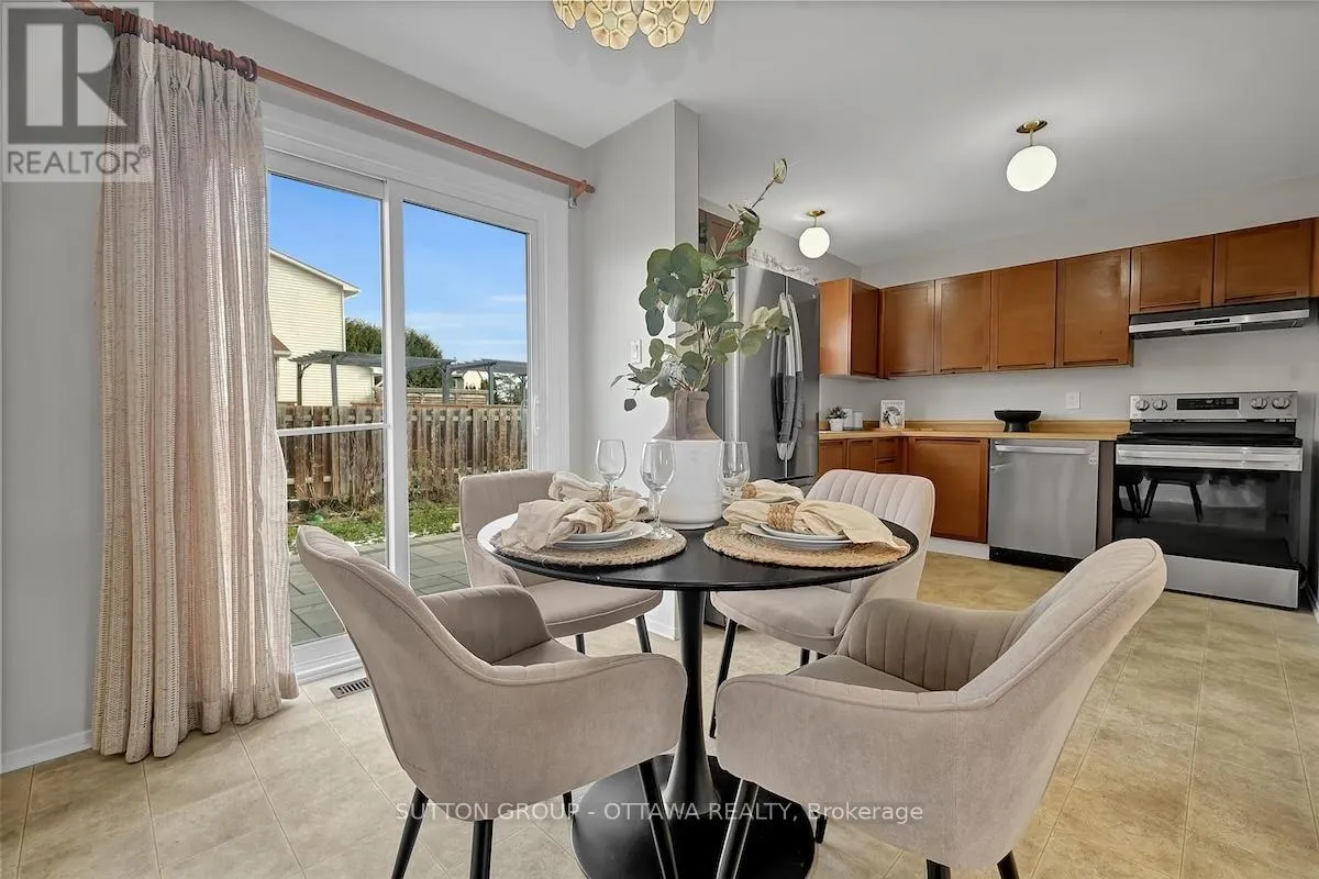 From Highway 174 East, take the exit toward Ottawa Rd 47/10th Line Rd. From Old Tenth Line Rd, turn left at the 2nd set of lights on 10th Line Rd heading South. Turn right onto Tompkins Ave then right on Bourcier Dr. First house to your left. Welcome to a warm and inviting family home in one of Orleans' most convenient and well-connected neighbourhoods. This beautifully maintained property offers a bright layout, great natural light, and a classic floor plan that works for real-day-to-day to day living. The main floor features sun-filled hardwood floors, a spacious living room with a wood-burning fireplace, a comfortable dining area, and an eat-in kitchen with plenty of cabinet space and direct access to the backyard. A convenient powder room completes this level, adding function and comfort for busy households. Upstairs, the home offers three generous bedrooms and a fully renovated main bathroom with elegant tile, a wide modern vanity, and a glass-enclosed tub and shower. The primary bedroom enjoys direct access to the bath, creating a semi-en-suite feel. The finished lower level adds even more usable space with a bright rec room and excellent storage options. It is ideal for a playroom, media area, home gym, or office setup. The backyard is fully fenced and private, perfect for children, pets, and relaxed outdoor living.l with newly laid patio stones .This location is hard to beat. You are minutes from the coming LRT extension, close to parks, shopping, and a vibrant blend of French and English culture. Families will love the access to some of Ottawa's best French schools, along with convenient transit and nearby amenities. This home delivers comfort, value, and room to grow. It is move-in ready and full of potential for your personal touch. Welcome home. Shingles 2013, Windows recent but not sure about the date. Hot water tank 2017. Furnace 2005. (id:27476)