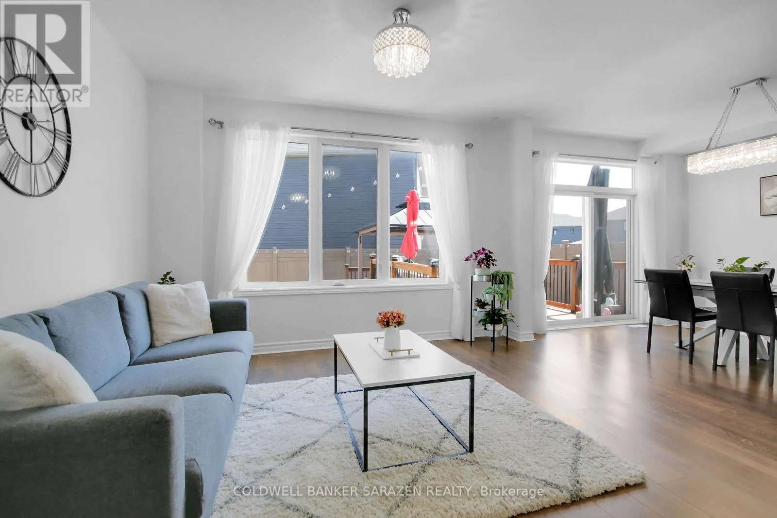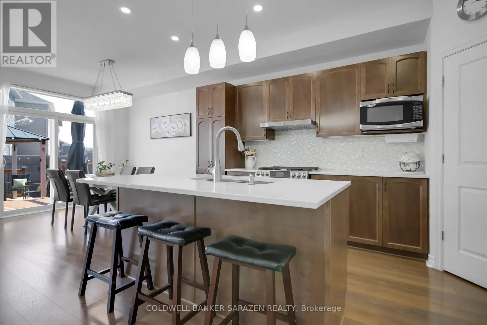 Cross Streets: Decouer Drive & Esturgeon Street. ** Directions: Mer Bleue Road Promenade Decoueur. Beautifully maintained, newer 3-bedroom family home features a thoughtful floor plan with abundant space for daily family life & formal entertaining. The main level offers a spacious open-plan design with inviting backyard views; sun-filled eat-in kitchen with stainless steel appliances, warm wood cabinetry, large island, & quartz countertops; sliding-door access to the stunning patio & deck with pergola; living room & adjacent den/office/playspace/homework centre. The foyer includes garage access, a walk-in coat closet,& convenient 2-pc bath. Upstairs, you'll find 3 large bedrooms, including the spacious principal with a lovely ensuite & walk-in closet; 2 additional bedrooms; a family bath & laundry room. The well-finished basement offers large windows & high ceilings; a spacious family room; a full bathroom; & plenty of storage. Quality, easy-to-maintain wood & tile flooring; fresh, neutral paint palette & tasteful finishes throughout. Garage with inside entry. Nestled proudly on a beautifully landscaped parcel with a fully finished south-east facing backyard. Enjoy low-maintenance summers on your covered deck and stone patio. Well-manicured Orleans community with a family-friendly vibe, minutes from schools, parks, dining,community rec centres, & shops. Why wait? (id:27476)