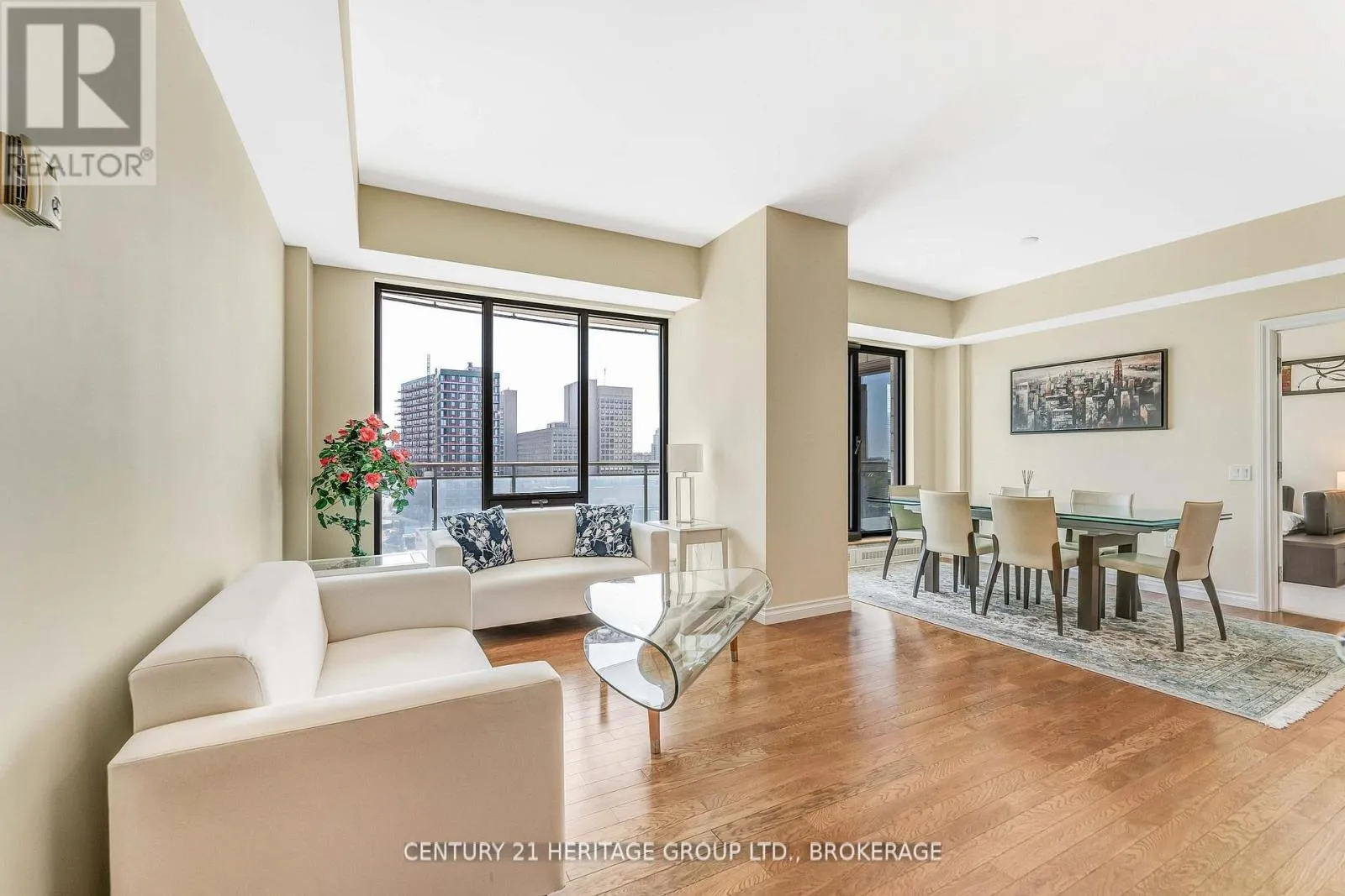 Cross Streets: George street. ** Directions: From Sussex Dr turn right onto king Edward Ave, left onto George St. Building is on the right. Welcome to 90 George Street, Unit 1103, an exceptional opportunity to own a refined condo in Ottawa's prestigious ByWard Market. This thoughtfully designed 2-bedroom unit boasts panoramic, unobstructed views of the Parliament Buildings, Gatineau Hills, and the vibrancy of the ByWard Market below. Enjoy breathtaking sunsets and city fireworks from your oversized private balcony, offering a front-row seat to Ottawa's energy and skyline. The open-concept layout blends functionality with elegance. The kitchen is appointed with granite countertops, a stylish breakfast bar, and premium wood cabinetry, providing ample storage and seamlessly connecting to the spacious living and dining areas. Floor-to-ceiling windows flood the interior with natural light, and the living room walks out directly to the private patio ideal for entertaining or quiet relaxation above the city. The primary bedroom serves as a peaceful retreat, featuring floor-to-ceiling windows, a walk-in closet, and a spa-inspired 4-piece ensuite with a soaker tub and fully tiled finishes. The second bedroom showcases spectacular city views. The main bathroom features a modern 4-piece layout with a tiled glass shower and a wall-hung vanity, rounding out the sophisticated interior. Residents enjoy 24/7 security and unparalleled amenities, including an indoor saltwater pool, hot tub, state-of-the-art fitness center, and a beautifully landscaped rooftop terrace. Just outside, scenic riverfront trails and bike paths invite you to explore nature within the heart of the city. Experience the essence of downtown living with acclaimed restaurants, boutiques, galleries, and Ottawa's cultural destinations right at your doorstep. This is luxury city living redefined. (id:27476)