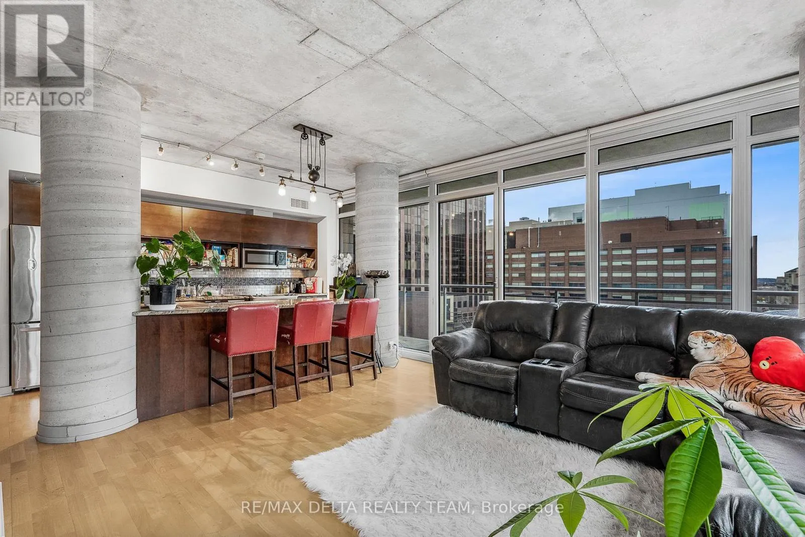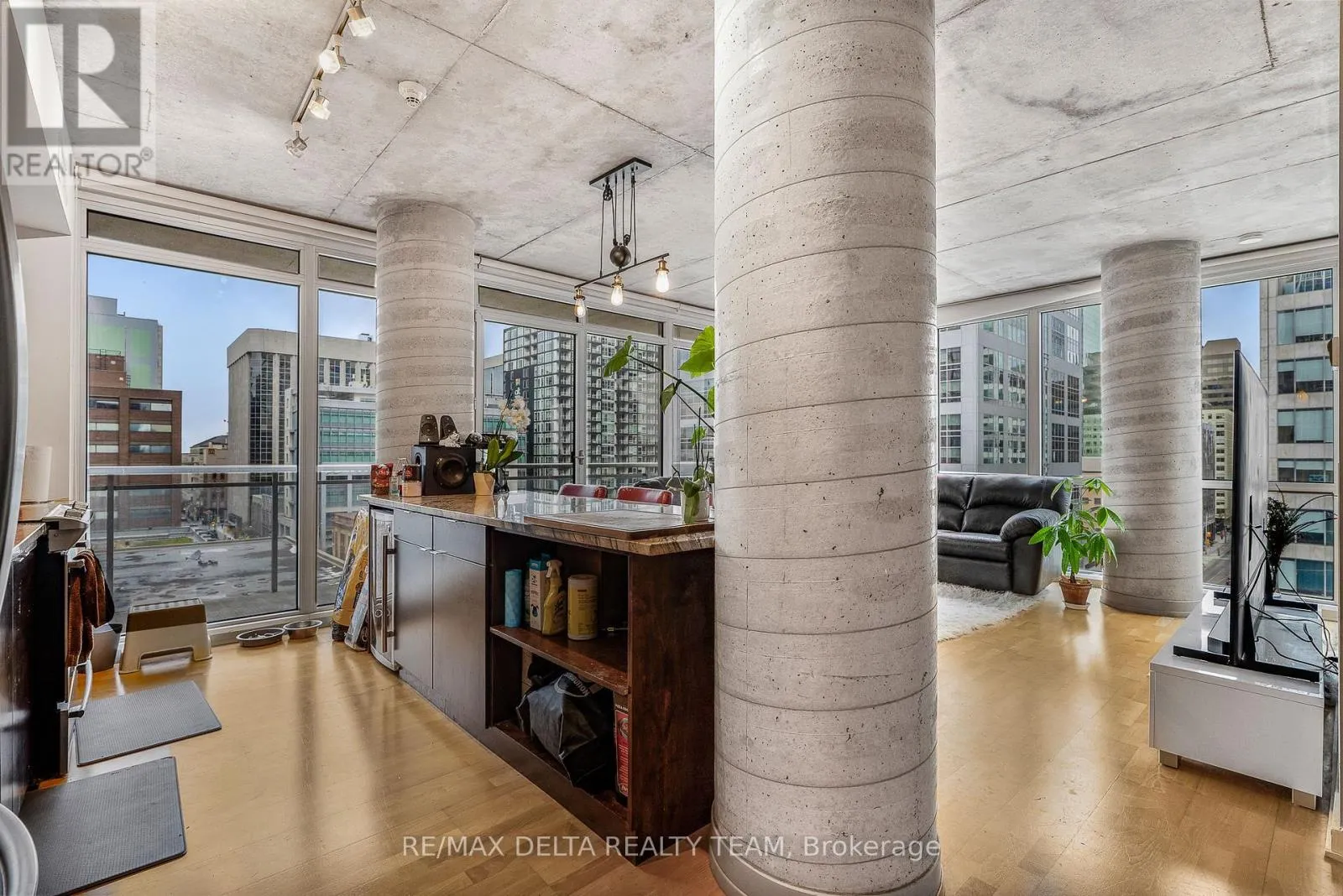 Cross Streets: Laurier Avenue and Bank Street. ** Directions: Corner of Bank Street and Laurier Avenue. Welcome to 809-324 Laurier Ave W, an impeccable two bedroom, two bathroom corner condominium situated in the heart of downtown Ottawa. Featuring hardwood flooring throughout, this bright and airy unit is enhanced by two full walls of windows, offering exceptional natural light and sweeping views of the downtown core. The open-concept layout creates a seamless flow between the kitchen and living areas. The modern kitchen is equipped with a 10 ft. island, quartz countertops, and stainless steel appliances, combining both style and functionality. A separate open den/office area and 9 ft. ceilings further elevate the spacious feel of the home. The primary bedroom also showcases stunning city views, while the in-unit laundry ensures optimal convenience. Completing this impressive offering are one underground parking space and a dedicated storage locker. The building itself features a resort-style outdoor pool, BBQ terrace, concierge, gym, and party room. An unbeatable location-just steps to the LRT, Ottawa U, Rideau Centre, major transit routes, shopping, and restaurants. Parking Level A #28. Storage locker Level A #53. (id:27476)
