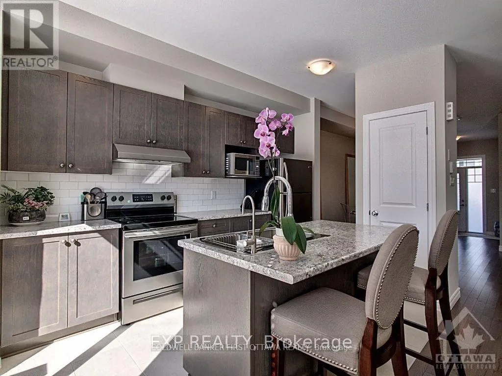 Cross Streets: Stittsville Main to Bandalier to Geranium Walk. ** Directions: 616 GERANIUM WALK STITTSVILLE ON K2S 2J3. Beautifully appointed Minto Haven townhome offering 3 bedrooms and 4 bathrooms, extensively upgraded throughout. The main level showcases 9 ft. ceilings, rich dark hardwood flooring, and an inviting, light-filled living area. The gourmet kitchen features a large island with breakfast bar, stainless steel appliances, abundant cabinetry, and a dedicated pantry, complemented by a separate formal dining room. The spacious primary suite includes a walk-in closet and a sleek 3-piece ensuite with a glass shower. Two additional well-sized bedrooms with generous closets, along with a full bathroom, complete the second level. The fully finished lower level provides an expansive family room, a convenient 2-piece bathroom, and ample storage space. Ideally located near schools, shopping, and numerous amenities.No pets, no smokers, and no roommates permitted. Minimum 24 hours' notice required for all showings as the property is tenanted. Available for occupancy January 1, 2026 or later. Completed rental application, full credit score, and proof of employment requirement. Photos are from a previous listing. (id:27476)
