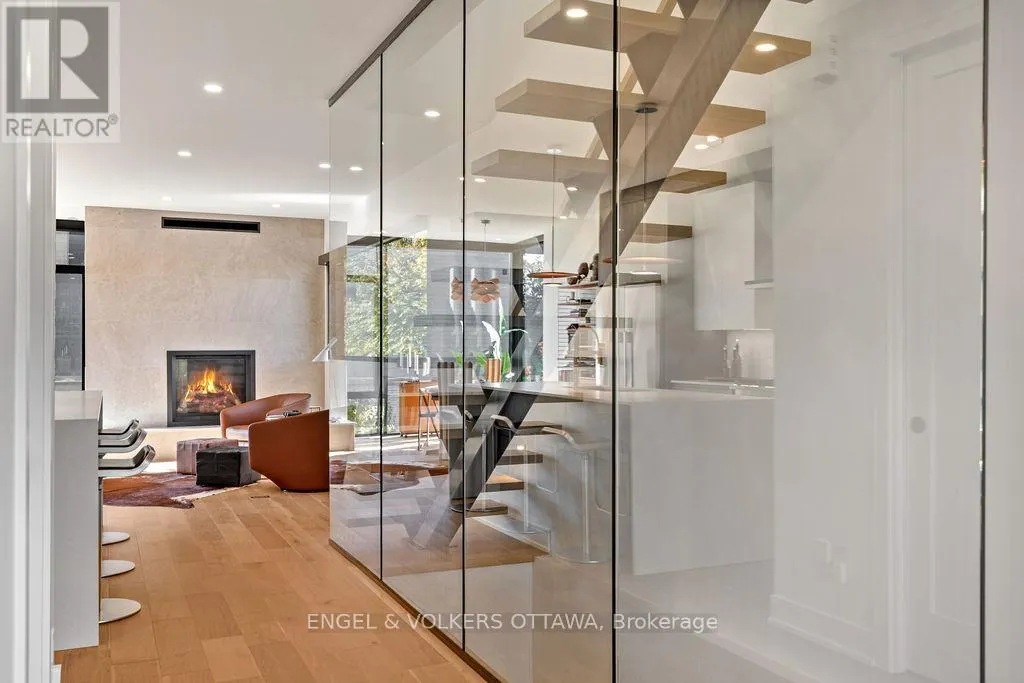 Cross Streets: Prince of Wales Dr. ** Directions: Prince of Wales Dr. to Peridot. An exceptional residence in an award-winning enclave of just seven luxury homes by Gemstone Developments. Just moments from Little Italy, Dows Lake, Civic Hospital, CarletonU, with walking and bike paths at your doorstep. As the only home in the community featuring an extended private driveway and back deck, as well as incredible additional custom windows, this home offers rare, unobstructed views of the Experimental Farm and the Rideau Canal. Winner of a GOHBA award for interior design, this 3-bedroom, 4-bathroom home showcases over 2,400 sq. ft. of thoughtfully curated living space. The main level is perfect for stylish entertaining, featuring a chef's kitchen with a waterfall quartz island, custom cabinetry, gas range, walk-in pantry with sink, and designer finishes. Two elegant living areas with upgraded gas fireplaces and a sleek powder room complete the space. Amazing views from every room and private balcony off the back living room. Upstairs, the serene primary suite impresses with expansive windows and a spa-inspired ensuite with a soaker tub, expanded two-person glass shower, double vanity, and bidet. Two additional bedrooms, a full bath, and a laundry closet with a sink and custom cabinetry provide flexibility for guests or a home office. Ground level features a spacious foyer and a versatile area currently used as a stylish home gym, easily adaptable as a family room or office, along with a convenient powder room. Upgraded stringer staircase with open glass panels adds a striking architectural element while preserving the homes airy, contemporary feel. An extended lower back deck provides direct access to a beautifully landscaped backyard - offering a peaceful retreat surrounded by nature. This exclusive community blends refined design, natural surroundings, and a prime central location. Visit the website for full list of upgrades. ***Offering an exclusive incentive: buy this home before December 20th and pay no property taxes for 2026!*** (id:27476)