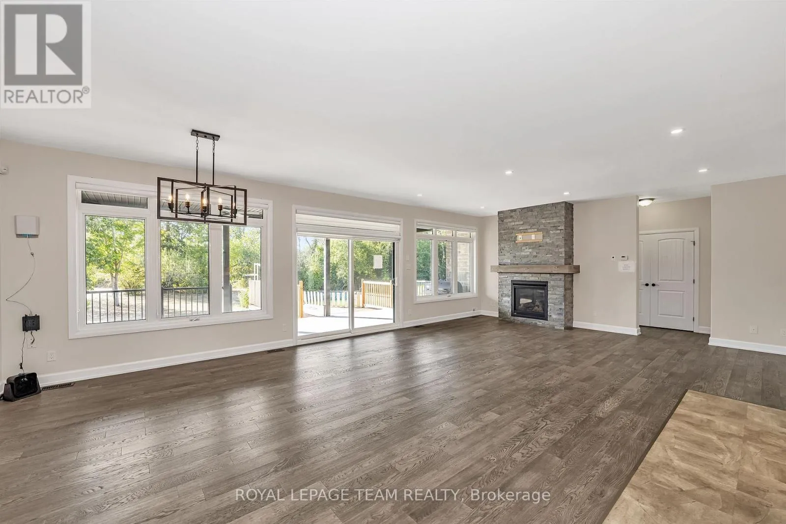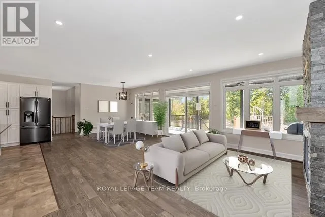 Cross Streets: Snake Island/Stagecoach. ** Directions: Snake Island Road to Kearns Way. Elegant Estate Bungalow on Quiet Cul-de-Sac - Welcome to this beautifully appointed 3+2 bedroom estate-style bungalow, nestled on a peaceful cul-de-sac perfect for families seeking comfort, space, and sophistication. Main Level Highlights. Step into an open-concept living area anchored by a dramatic floor-to-ceiling fireplace, ideal for cozy evenings or hosting memorable gatherings. Rich hardwood and tile flooring flow throughout, leading to a covered porch that overlooks the serene backyard. The chef-inspired kitchen features gleaming quartz countertops, a striking island with breakfast bar, under-cabinet lighting, and abundant cabinetry for effortless organization. The spacious primary suite offers sliding doors to the porch, a luxurious 5-piece ensuite, and a generous walk-in closet. Two additional bedrooms share a stylish Jack-and-Jill 5-piece bathroom, perfect for kids or guests. A thoughtfully designed main-floor laundry room includes a sink, counters, and cabinetry for added convenience. Lower Level Comfort - The finished basement expands your living space with two more bedrooms, a full 4-piece bath, and a sprawling recreation/family room, ideal for extended family, guests, or a home theatre setup. Garage Goals - Car enthusiasts and hobbyists will love the oversized 4-car garage, complete with a loft and ample storage space. This listing consists of two separate parcels of land, PIN 043151258 and PIN 043151268, being sold together as one offering, with a combined total of 2.593 acres. Some photos virtually staged. (id:27476)