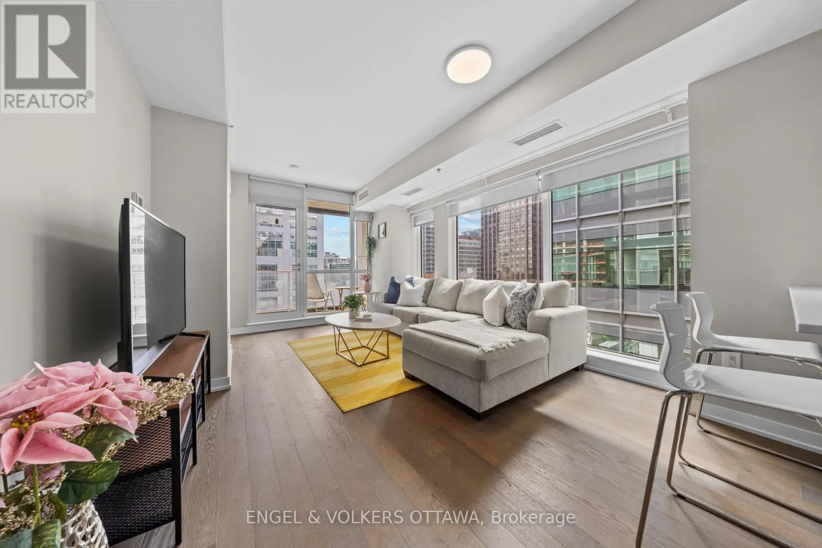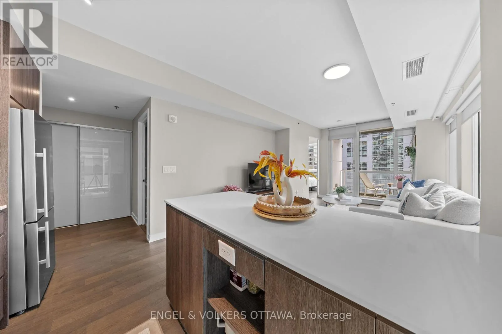 Cross Streets: Bank and Slater Street. ** Directions: Heading North down Bank Street, turn right onto Slater St and the building is on the left. Attached to the Alt Hotel. Urban living at it's finest! This executive 2 bedroom, 2 bathroom condo is located in the heart of Ottawa's Financial district in Centretown. With a 99 walk score, you will live moments to Parliament Hill, the LRT, Farm Boy, Shoppers Drug Mart, Rideau Centre, and all of the restaurants, cafes and shops along Bank and Elgin St. This is one of the ONLY buildings in central Ottawa that allows a minimum of 30-day rental agreements - GREAT INVESTMENT. Located on the 7th floor, this corner suite offers approx. 832 sq ft of living space with 9ft ceilings, wall-to-wall floor-to-ceiling windows, and hardwood flooring throughout. The European inspired kitchen designed by powerhouse II BY IV incorporates 2-toned cabinetry, integrated high-end stainless steel appliances and white quartz countertops. With a carefully thought out floor plan offering dedicated space for living and dining it is a perfect space for those who like to entertain. Enjoy summer afternoons on your south-facing covered balcony. The primary bedroom offers enough room for a king sized bed with a modern 3-piece en-suite. The second bedroom makes for a great bedroom and/or office. Building amenities include: gym, party room, theatre room, hot tub, terrace, and secure entry. 1 underground parking space and 1 storage locker included. Washer/Dryer (2025). Air Conditioner (2024). Perfect for investors, Professionals working downtown, Students or anyone who frequently travels over the winter! (id:27476)