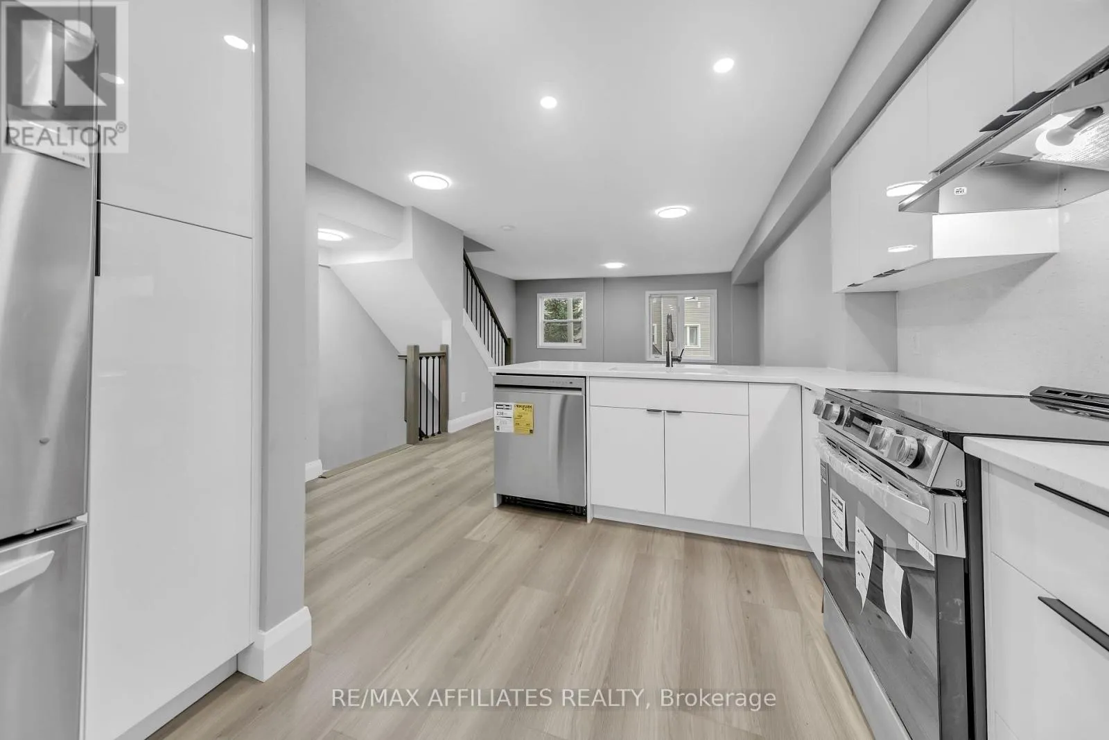 Richmond Road turn South on Moodie and East on Sanibel. This beautifully renovated home is in pristine, model-home condition. It offers quality laminate flooring throughout, including the stairs, stylish ceramic tiles, and modern finishes. The welcoming foyer leads to a versatile main-floor den or office-perfect for today's work-from-home lifestyle. The second level features an impressive open-concept living space complete with a gourmet kitchen, quartz countertops, stainless steel appliances, an eat-in area, a spacious living room, a powder room, and convenient laundry. On the third floor, you'll find a luxurious primary suite with a walk-in closet and ensuite bathroom, along with two bright, comfortable bedrooms and a full 3-piece bathroom. Outside, the interlocked driveway and attached 1-car garage enhance both curb appeal and convenience. Ideally located near schools, shopping, transit, Jamia Omar, and just minutes from Kanata's high-tech sector, Highways 416 & 417, and downtown Ottawa, this home truly stands out. Book your private viewing today before it's gone! (id:27476)