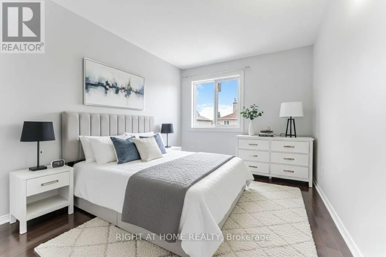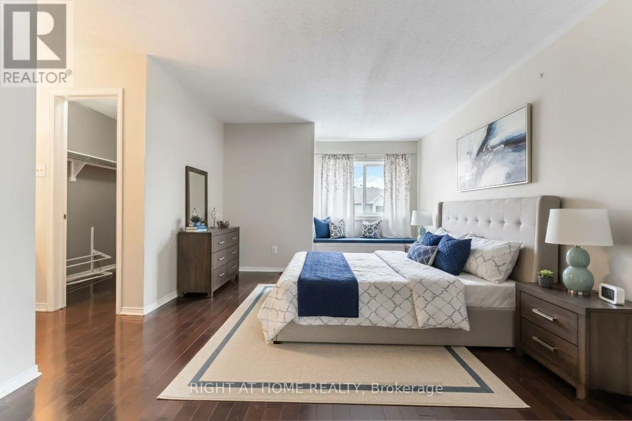 Cross Streets: Tartan. ** Directions: Strandherd to Cedarview to Tartan to Halley. Beautiful and inviting 3-bed / 3 bath freehold townhome on a quiet, family-friendly street, complete with a charming front porch and fully fenced backyard. The main floor offers warm hardwood floors, a renovated, modern eat-in kitchen with stainless steel appliances, quartz countertops, and abundant cabinetry. The bright living room features a cozy wood-burning fireplace, while the dining room provides easy access to the backyard through large patio doors-perfect for indoor-outdoor living. Upstairs, you'll find three generous bedrooms, including a spacious primary with a beautifully renovated en-suite, plus an updated full bath. The fully finished basement adds valuable living space with sleek laminate floors, pot lights, a laundry area, and ample storage. Situated just minutes from parks, shopping, public transit, great restaurants, recreation facilities, and a movie theatre, this home offers the perfect balance of comfort and convenience. Move in and enjoy a lifestyle where everything you need is right at your doorstep-this is the one you'll be excited to come home to. (Some of the photos are virtually staged) (id:27476)