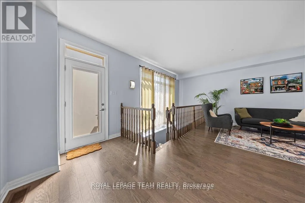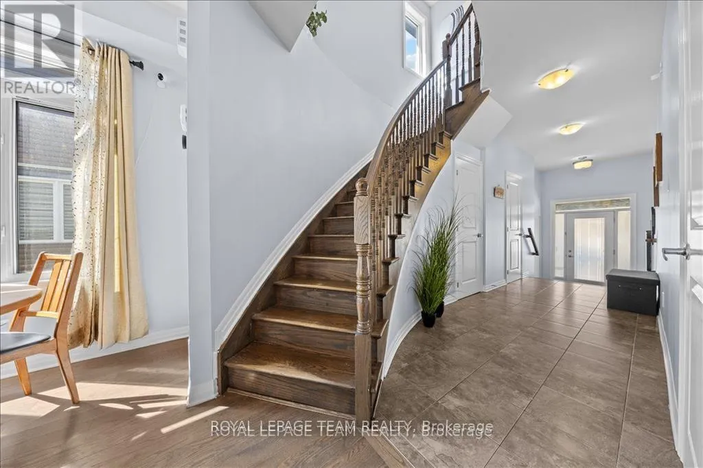 Cross Streets: Overberg Way and Tulum Cres. ** Directions: From Terry Fox Dr. turn onto Overberg Way, then turn left to stay on Overberg Way, then turn left onto Tulum Cres, property will be on the right. Located in the highly desirable Trailwest community of South Kanata, this sun-filled 4 bedroom, 3.5 bathroom end-unit townhouse offers the perfect balance of style, space, and convenience. Set on an extra-wide lot, the home boasts a carpet-free design, soaring 9-ft ceilings, elegant hardwood floors, and oversized windows that fill every level with natural light. The modern kitchen features granite countertops, a center island, stainless steel appliances, and abundant cabinetry, opening seamlessly to bright and spacious living and dining areas perfect for entertaining or everyday family living. A convenient powder room, mudroom with laundry, and a hardwood spiral staircase complete the main level. Upstairs, discover four generous bedrooms, including a primary retreat with a walk-in closet and private ensuite, along with a second full bathroom. The fully finished basement adds even more living space with a large recreation room, full bath, and generous storage, ideal for a home office, gym, or family gatherings. Freshly painted in 2025 and move-in ready, this home is ideally located just steps from schools, parks, shopping, and public transit. (id:27476)