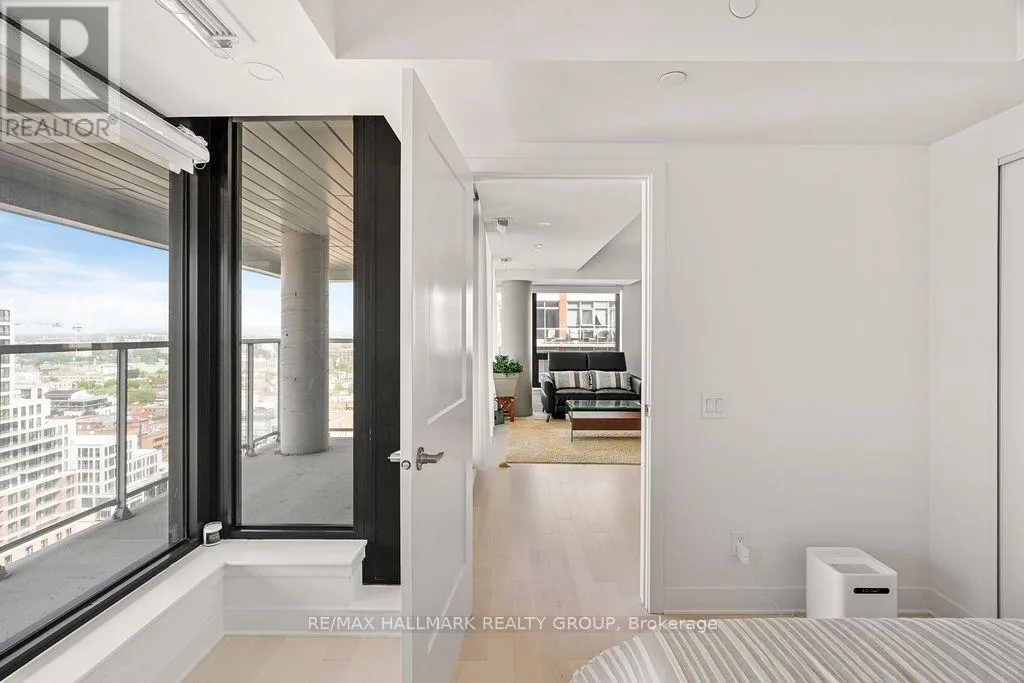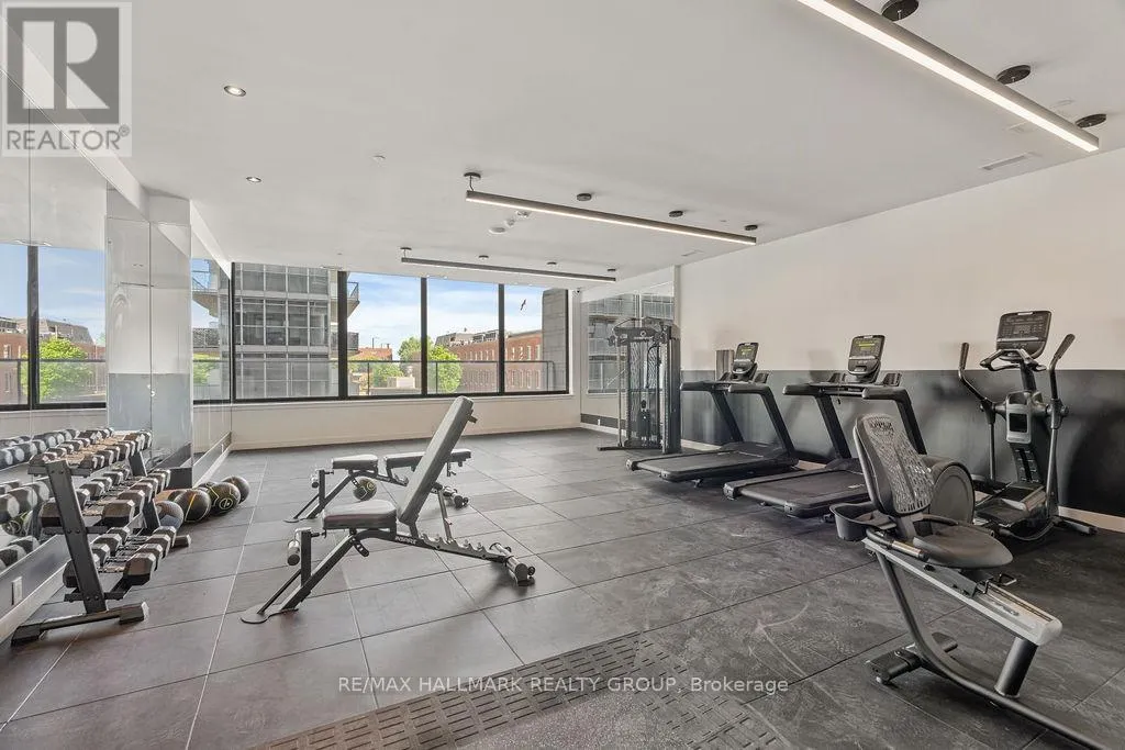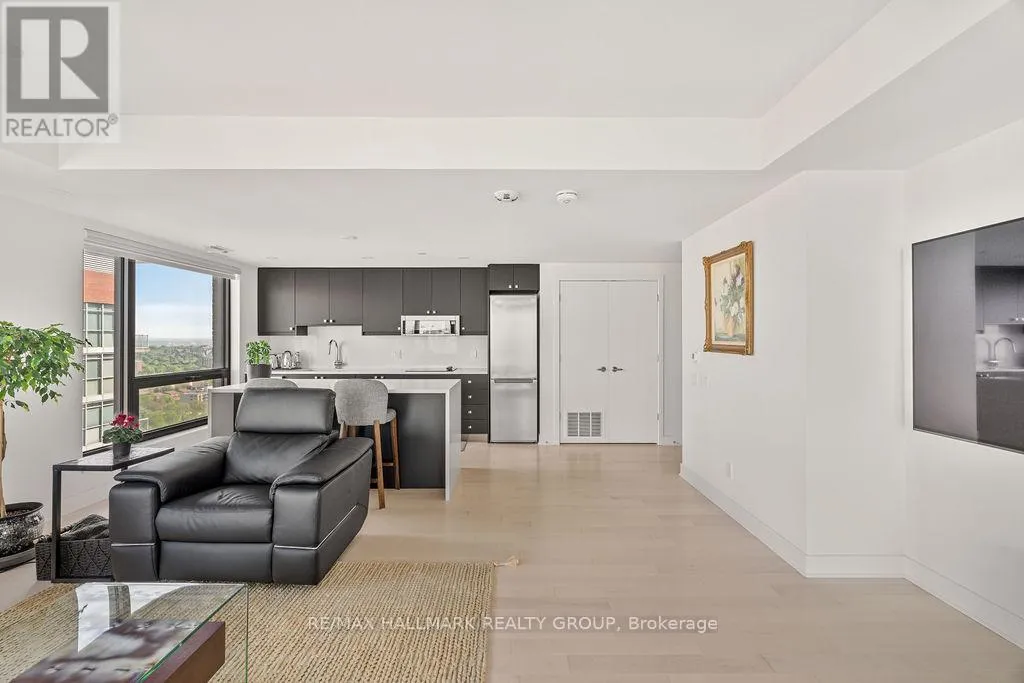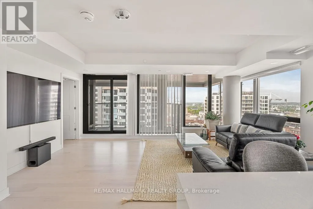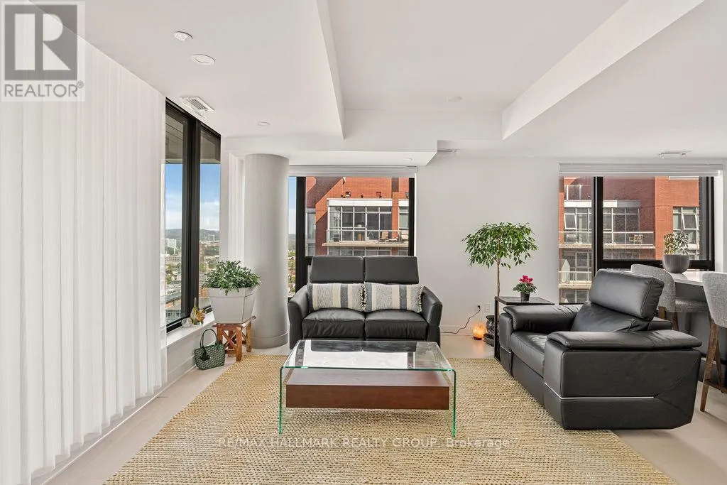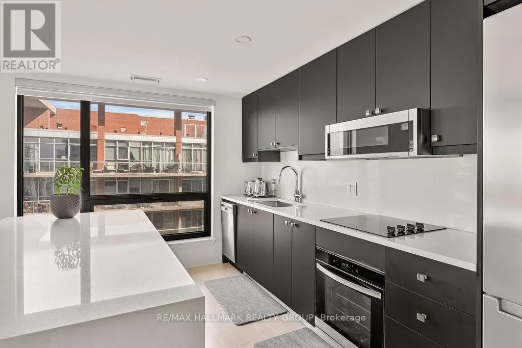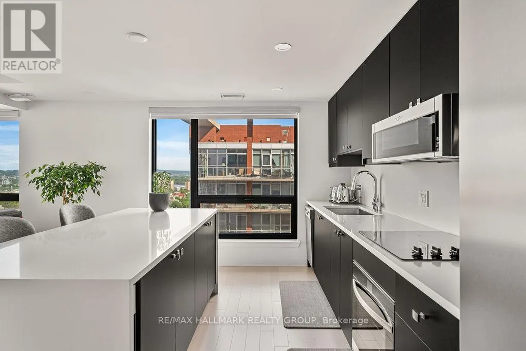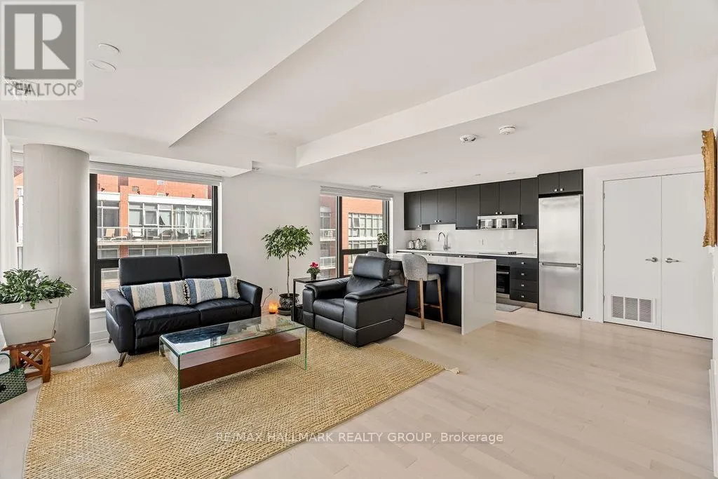Cross Streets: Cumberland and George. ** Directions: From Rideau st turn left onto Cumberland st. Then turn right onto George st. Welcome to Claridge Royale, one of Ottawa's newest and most luxurious condos. This spacious 1 bedroom, 1 bathroom corner unit stands out as one of the largest one-bedroom layouts in the building, offering an impressive 760 sq. ft. of thoughtfully designed living space. Step inside to discover high-end, modern finishes throughout, highlighted by a show-stopping quartz waterfall island in the contemporary kitchen, perfect for cooking, dining, and entertaining. The open-concept living area is flooded with natural light thanks to expansive floor-to-ceiling windows on two sides, creating a bright and airy atmosphere all day long. Additional features include in-suite laundry, premium fixtures, and a well-appointed bathroom with sleek, modern design. Enjoy all the conveniences of urban living in a brand-new building, ideally located steps from the ByWard Market, transit, restaurants, and Ottawa's best amenities. Includes one underground, and storage locker! Prime amenities include an indoor pool, fitness center, rooftop terrace with BBQs, 24-hour concierge and security, and a theatre room. It also features a party lounge, boardroom, guest suites, underground parking, and direct access to Metro. (id:27476)