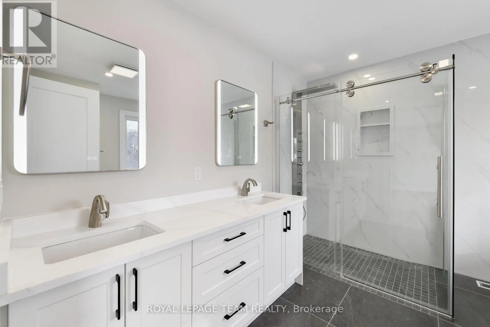 Cross Streets: Prince of Wales Drive. ** Directions: From Baseline Road, turn onto Prince of Wales Drive, and then left onto Melfa Crescent. An exceptional custom-built home that offers quality craftsmanship and an ideal location. This residence spans approximately 2400 square feet and is within walking distance of Mooney's Bay. The main floor boasts an open-concept living space with elegant white oak hardwood flooring throughout. It includes a spacious formal dining room, perfect for entertaining family and friends, and a generous living room warmed by a gas-burning fireplace. The kitchen is a chef's delight, equipped with granite countertops and stainless steel appliances, making it ideal for family meals and gatherings. The second level offers a luxurious primary suite complete with a five-piece ensuite bathroom and a walk-in closet. Additionally, the other three bedrooms each feature their own private ensuites, providing comfort and privacy for family members or guests. The basement remains unfinished, offering a fantastic opportunity for you to customize it to your exact specifications. This home is situated in a quiet location just off Prince of Wales Drive, with convenient access to walking trails, shopping centers, schools, churches, and other amenities. (id:27476)