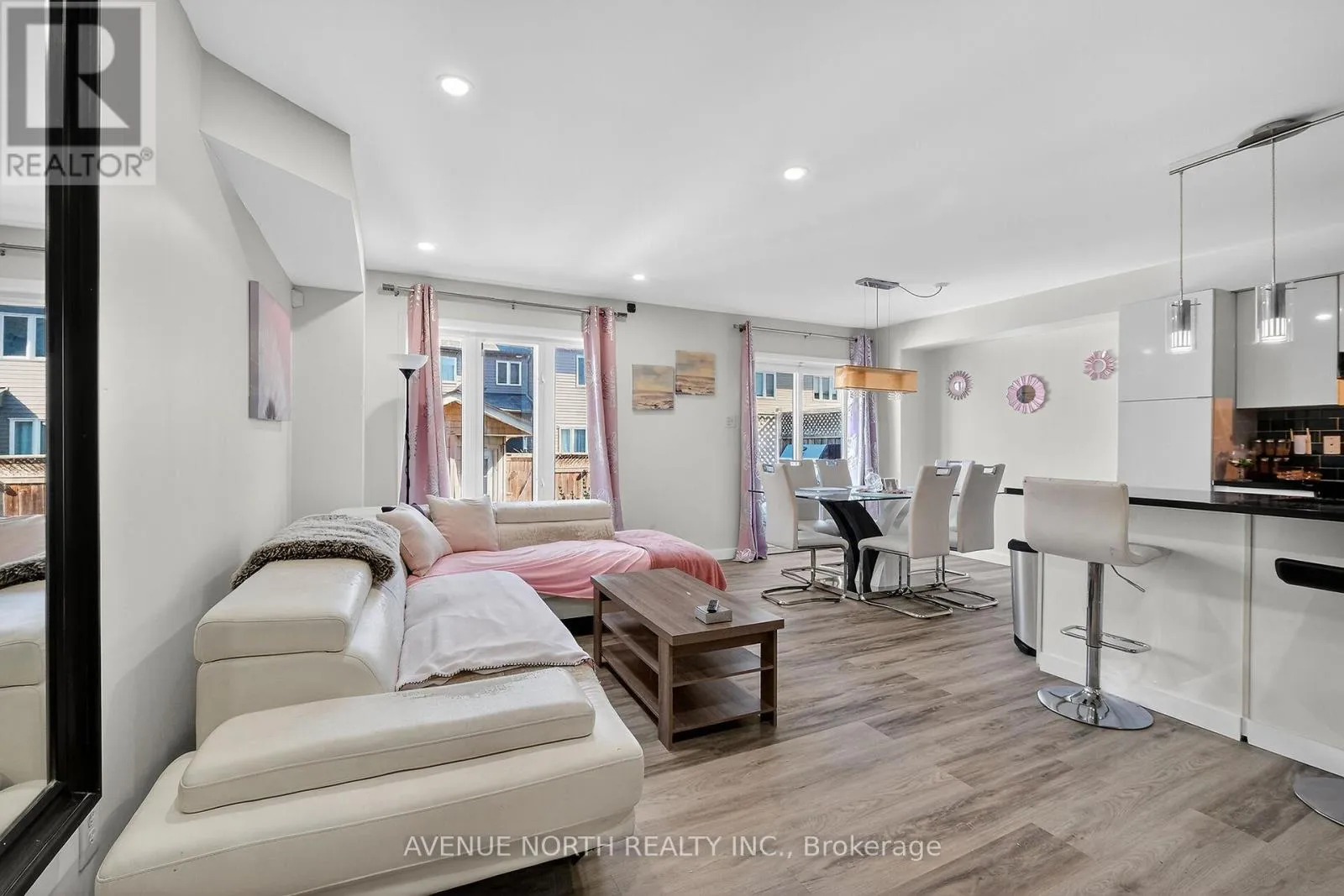 Cross Streets: Bank/Rotary. ** Directions: Bank to Rotery to Kingswell. This beautifully upgraded 3-bedroom townhome is a must-see! Step into an open-concept main floor featuring elegant luxury vinyl flooring, a hardwood staircase, and smooth finished ceilings throughout. The living and dining area offers seamless flow and direct access to the fully fenced backyard perfect for entertaining or relaxing outdoors. The kitchen is a chefs dream, boasting granite countertops, an upgraded backsplash, premium cabinetry, stylish light fixtures, and a builder-added pantry for extra storage. Upstairs, you'll find three spacious bedrooms, including a large primary suite complete with a walk-in closet and a private ensuite featuring upgraded shower tile. The fully finished lower level offers versatile additional living space ideal for a family room, home office, or gym. Outside, enjoy the landscaped yard with a deck and shed, creating a perfect outdoor retreat. Key Features: Hardwood, carpet, and mixed flooring throughout Smooth finished ceilings Fully fenced backyard with deck and shed Finished basement Numerous designer upgrades throughout. Excellent opportunity for 1st time home buyers and investors ! (id:27476)