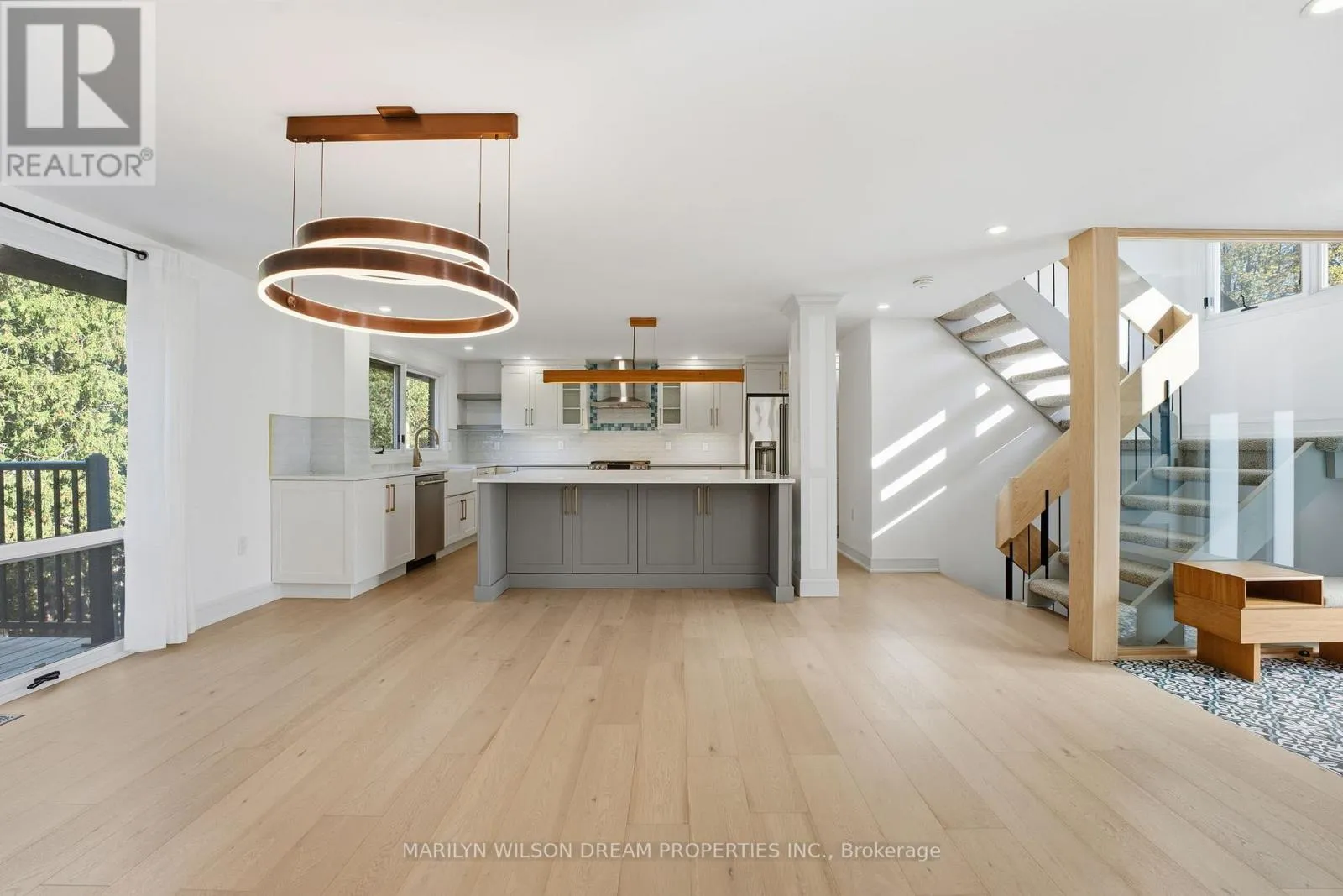 Cross Streets: Clyde Ave/Capilano Dr. ** Directions: Starting at Clyde Ave/Baseline Rd, head southeast on Clyde, turn left on Capilano, left on Beaver Ridge, right on Commanche, then left to stay on Commanche-the destination is on the left. Backed by a private ravine lot and framed by a dual-level walkout terrace, 33 Commanche Drive offers the rare feeling of retreat within the city. Beautifully redesigned from 2021-2025 with care, craftsmanship, and modern comfort. The open-concept main floor was rebuilt for effortless living, featuring engineered hardwood, a new front door with glass-partition entry, pot lights, and a stunning 2024 kitchen with quartz counters, a large island, GE Café appliances (with fridge hot-water dispenser and Keurig system), and designer finishes. A permitted structural beam creates the bright, flowing layout, while the gas fireplace anchors the living area with warmth and calm. Main-floor laundry and a renovated powder room add convenience. Upstairs, whitewashed and resurfaced hardwood leads to four bedrooms, including a serene primary suite with custom walk-in closet and a spa-like ensuite featuring Statuario porcelain tile, Carrara-porcelain shower floor and threshold, and heated flooring. A fully updated secondary bathroom completes the level. The walkout lower level includes a wellness shower and sauna, full bathroom, wet bar, updated lighting, and a bright entertainment area opening to the private yard. Every major element has been upgraded, including a 200-amp electrical panel, plumbing, designer hardware, air-source heat pump (2023), hot water tank (2025), and updated lighting throughout. Exterior upgrades include Hardie board, Roof with fascia and soffit (2023), new window glass (2021), glass railings, landscaping, irrigation system, landscape lighting, exterior fixtures, and front and garage doors. (id:27476)