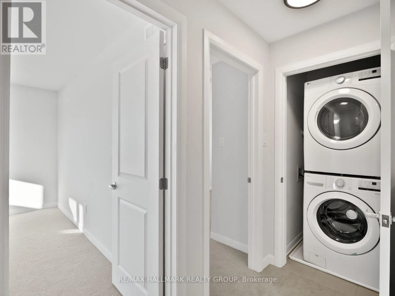 Cross Streets: Strandherd/Longfields. ** Directions: Longfields Dr to Glenroy Gilbert. Experience bright, modern living in one of Barrhaven's best walkable locations. This corner-unit upper townhouse shines with sunlight from every angle, featuring a wide open-concept main floor, a sleek kitchen with a large island, stainless steel appliances, and a showpiece balcony big enough for real outdoor living. It feels fresh, spacious, and genuinely enjoyable to spend time in. Upstairs offers two generous bedrooms, a full bath, and convenient in-unit laundry. The primary bedroom is surprisingly large and filled with natural light, making it a perfect retreat at the end of the day. What truly sets this home apart is the lifestyle at your doorstep. Leave the car behind and walk to Chapman Mills Marketplace for groceries, cafés, fitness studios, restaurants, shopping, and everyday essentials. Transit, parks, and recreation are all close by too, giving you a level of convenience rarely found in suburban living. (id:27476)