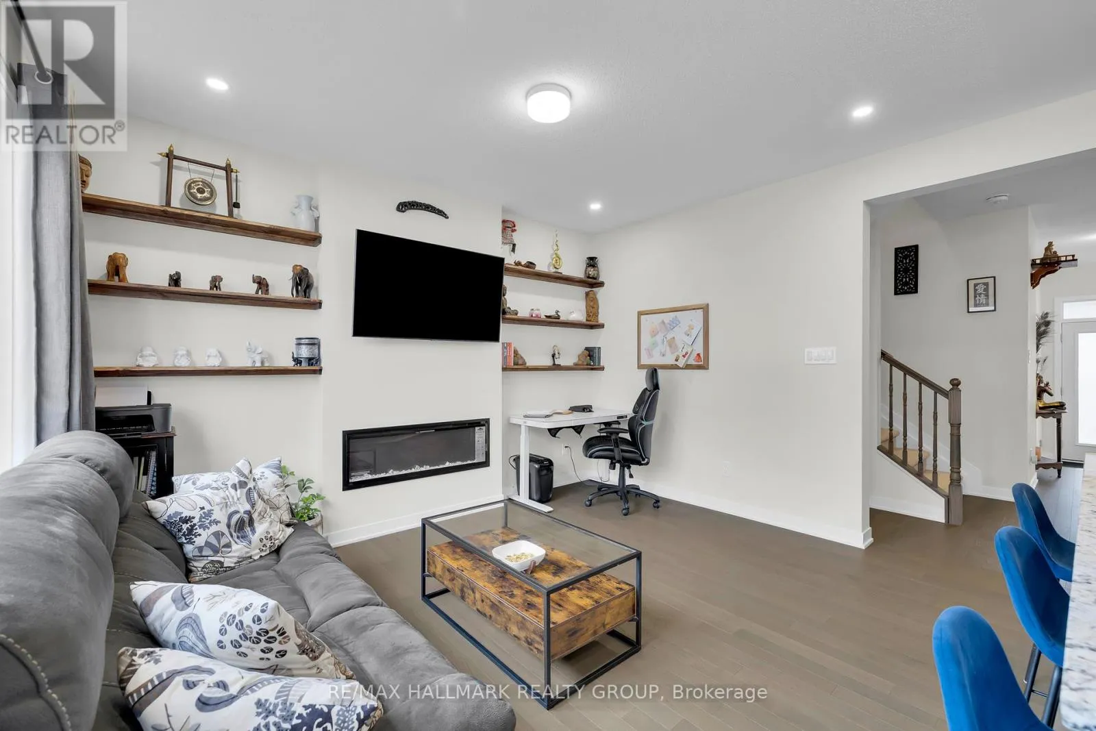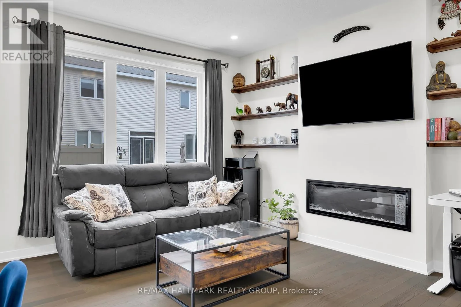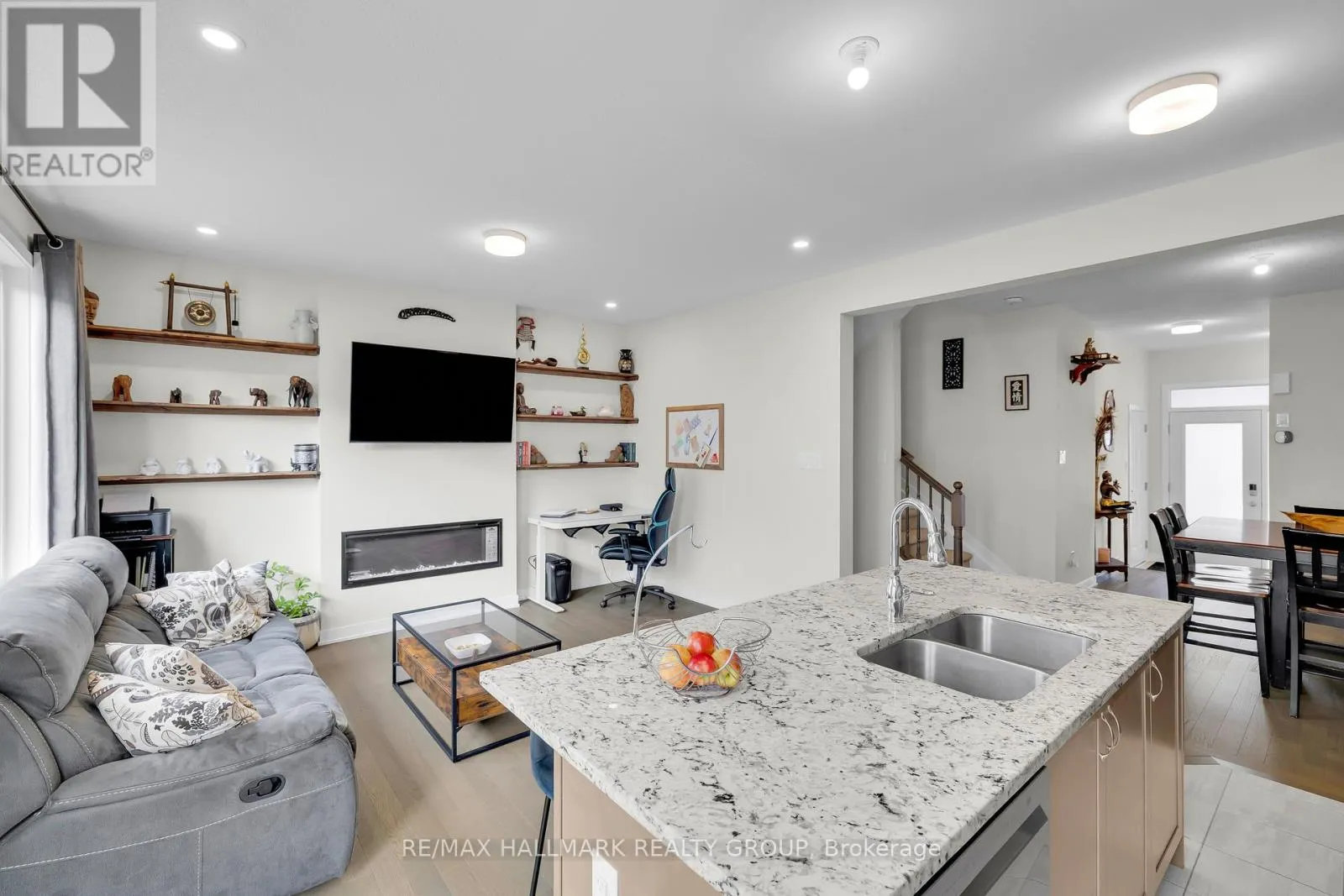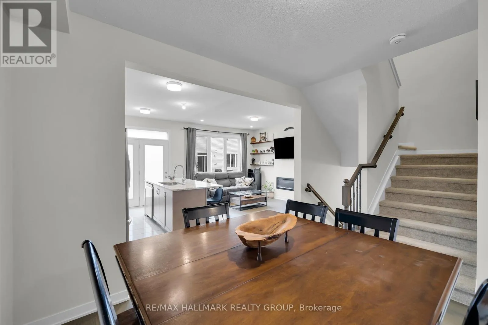 Cross Streets: Derreen Ave & Curraglass Walk. ** Directions: Palladium Drive exit off the 417W, left on Palladium, right on Derreen, left on Curraglass Drive. Welcome to this beautiful 3-bed, 4-bath townhouse, ideally situated just minutes from Kanata's tech hub, central Stittsville, and the Trans-Canada Highway/Queensway. The open-concept main floor features 9 ft ceilings, abundant natural light, and a smart layout with a foyer closet and conveniently located powder room near the inside entry. The kitchen is thoughtfully upgraded with quartz countertops, stainless steel appliances, a stainless steel undermount hood fan, tall upper cabinets, and an upgraded faucet. The living and dining area offers hardwood flooring, pot lights throughout, a beautiful fireplace, and direct access to the backyard. Upstairs, you'll find a spacious primary bedroom with a walk-in closet and a spa-inspired ensuite featuring a walk-in shower. Two additional bedrooms and a full bathroom complete the second level. The fully finished lower level adds even more living space, including a full bathroom, large windows, and ample storage. The neighbourhood surrounding 1076 Curraglass Walk offers a wide selection of schools, parks, and restaurants. The Canadian Tire Centre and Tanger Outlets Ottawa are just minutes away-and even within walking distance. This home is a fantastic choice for outdoor enthusiasts, shoppers, professionals, and pet lovers alike. (id:27476)