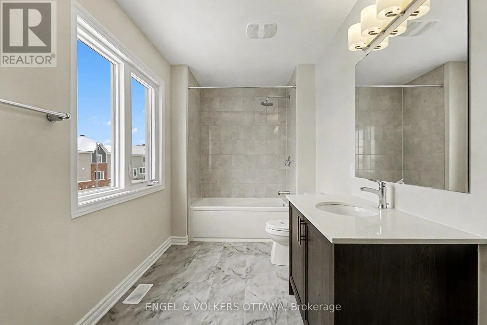 Cross Streets: Broadcast Ave & Ryan Reynolds Way. ** Directions: From Mer-Bleue Rd, turn onto Broadcast Ave, then Ryan Reynolds Way. This brand-new, modern, and meticulously designed end-unit townhome is in one of Orleans' fastest-growing and most sought-after communities, known for its vibrant and family-friendly feel, abundant green spaces, and convenient access to everyday amenities. The main level features a bright, open layout, beginning with the spacious living and dining areas - where wide-plank flooring, recessed lighting, and large windows create an inviting atmosphere with direct sightlines to the backyard. The kitchen features warm wood cabinetry, stainless-steel appliances, stone countertops, a generous peninsula with seating, and a tall window that illuminates the workspace. Upstairs, the primary bedroom is a cozy space to end your days, with soft carpeting, neutral tones, and an ensuite featuring a tub/shower, stone vanity, and a large window. Two additional bedrooms, each with large windows, plush carpeting, and flexible layouts, can accommodate children, guests, or your home office needs. The additional bedrooms share a 3-piece bathroom with a glass-enclosed shower and tile flooring. The finished lower level has a bright, versatile bedroom/recreation area with wide-plank flooring, multiple above-grade windows, and a full 4-piece bathroom with a tub/shower. This growing community has quick access to everyday essentials along Tenth Line and Innes Road, where residents can find grocery stores, cafés, restaurants, retail shops, fitness centres, and public transit connections. This never-lived-in-before awaits you! (id:27476)