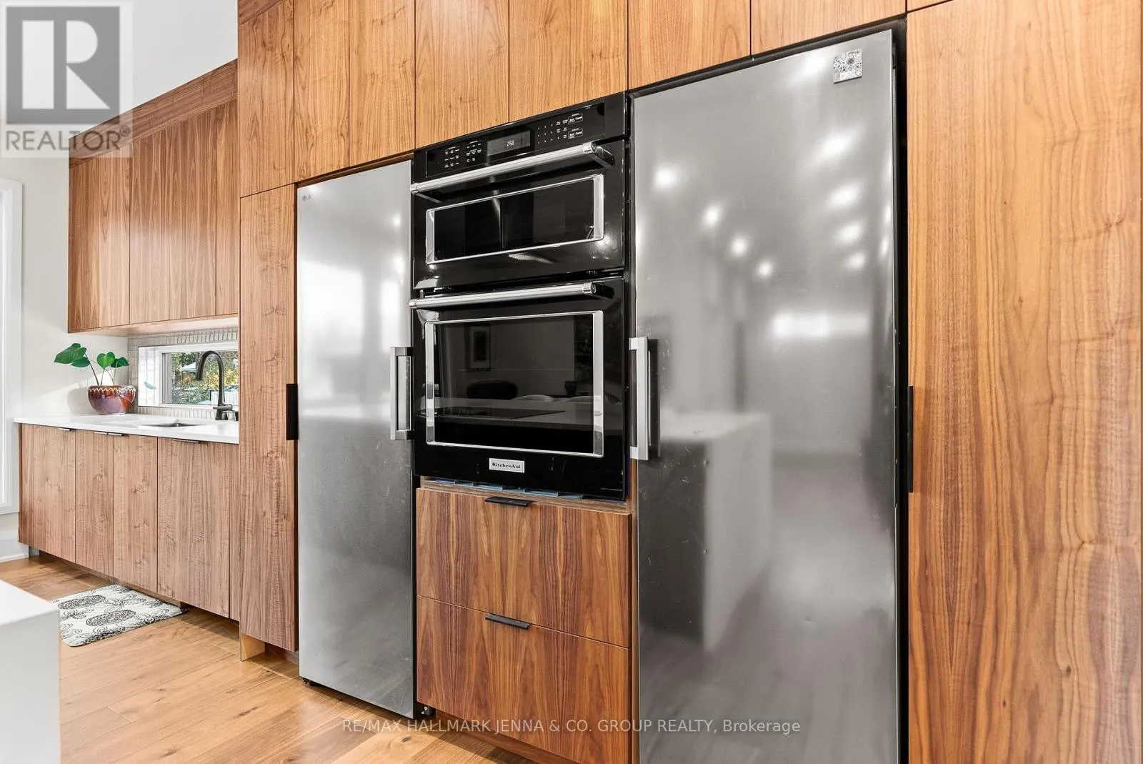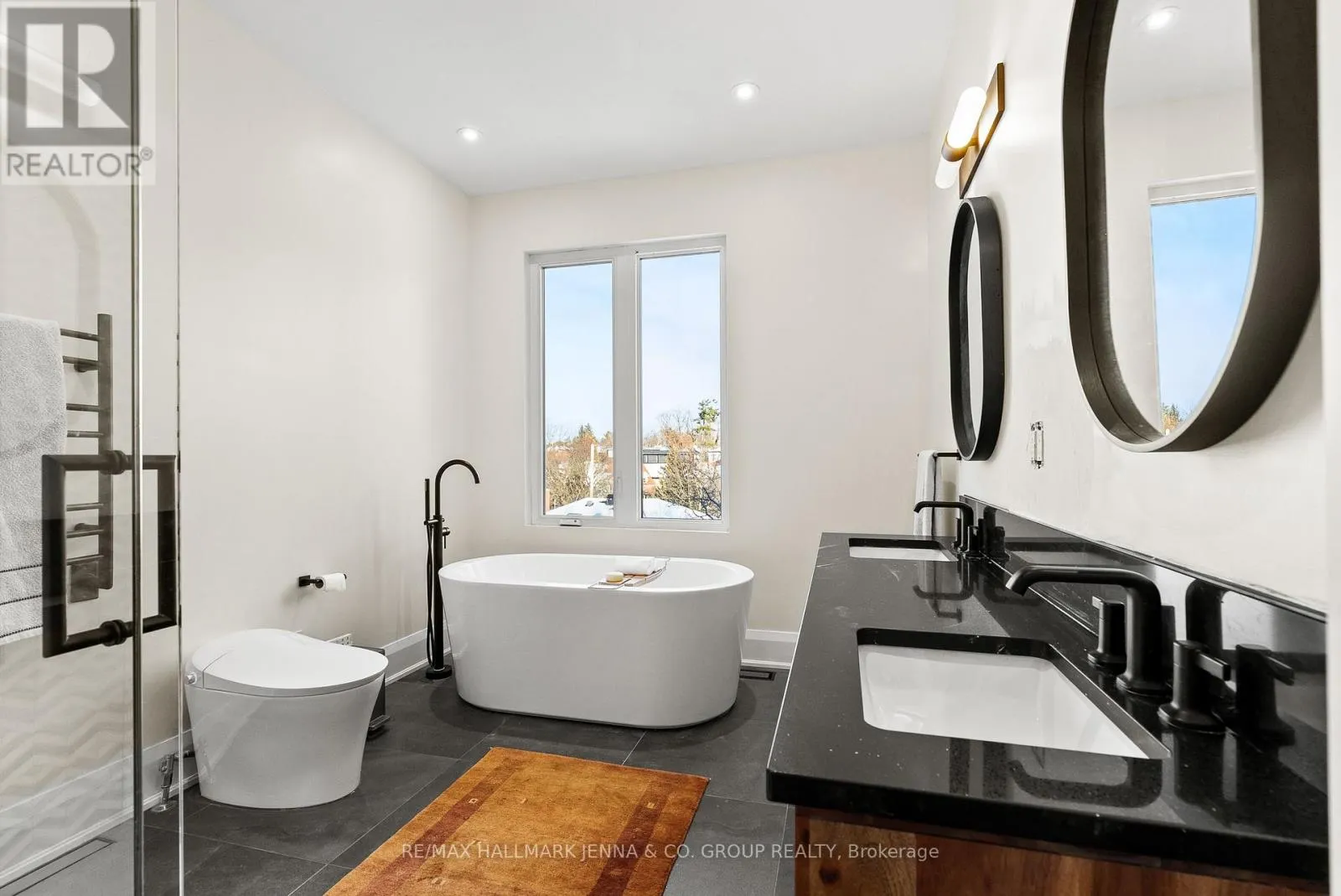Cross Streets: Carling and Fairmont. ** Directions: Turn onto Fairmont from Carling Ave, property is on the right. Welcome to 309 Fairmont, an exceptional and fully rebuilt home (2024/2025) offering 4+1 bedrooms including two stunning primary suites. Step inside to a spacious foyer with floor-to-ceiling custom cabinetry leading into a large living room centered around a sleek, double sided, bio-ethanol fireplace. The open-concept dining area flows seamlessly into the brand-new chef's kitchen, complete with high-end appliances, quartz countertops throughout, an oversized 10 foot island, abundant storage, and a bright eating area with walkout to a generous deck and backyard. The second level offers the first of two primary bedrooms, and two other well-sized bedrooms plus an inviting open sitting area. The third level provides a second primary bedroom oasis with skylight and luxurious spa-like ensuite with heated floors and double sinks. Comfort is built into every detail with 5 beautifully designed bathrooms, all with heated floors, two with smart toilets and towel-warming racks. The fully finished basement expands your living space with a rec room, additional bedroom (currently used as an office), and full bathroom-perfect for guests, teenagers, or multigenerational living. Additional upgrades include a fully re-waterproofed foundation, hardwood flooring throughout, premium finishes and thoughtful design. Outside enjoy a front patio, lots of parking, and a backyard with spacious deck and grassy area ideal for hosting, relaxing, or family play. A rare find in this location with modern luxury, a completely rebuilt home including HVAC double system (heat pump and back up furnace for those super cold days), all plumbing, all electrical, and incredible space in one of Ottawa's most desirable locations. Move-in ready and truly one of a kind. (id:27476)