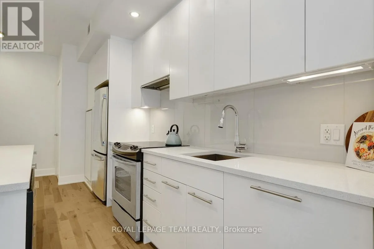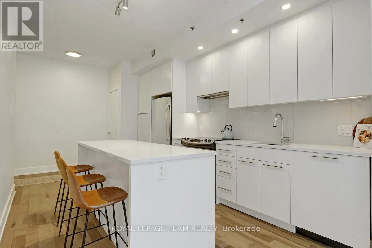 Cross Streets: Island Park Dr., Patricia Ave. ** Directions: Heading southeast on Island Park Dr toward Richmond Rd. Turn right onto Richmond Rd. Exceptional Westboro condo nestled within one of the area's most desirable buildings, where the city's trendiest conveniences await just outside your door. Highly regarded neighbourhood known for its welcoming and energetic atmosphere, with endless cafés, restaurants, and boutiques, as well as a strong connection to nature-just minutes from the Trans-Canada Trail and the newly revitalized Westboro Beach. Unit boasts bright contemporary style and is well upgraded from top to bottom. Light engineered hardwood floors, fresh white paint, modern lighting, and minimalist window coverings create a perfectly timeless design. An open-concept layout stretches along a long, airy floorplan anchored by huge windows that flood the home with natural light. The beautiful white kitchen features a centre island with casual seating, quartz countertops, under-cabinet lighting, extended flat-panel cabinetry to the ceiling, sleek stainless-steel appliances, and a polished backsplash. Flowing into a cozy dining area and then to a sunlit living room with access to a covered balcony. Rounding out the main area are a convenient powder room and discreetly tucked-away in-unit laundry. Private primary suite where floor-to-ceiling windows create an inviting retreat complete with a large double-sided walk-in closet featuring a custom organization system, and a full ensuite bathroom with an oversized glass-panelled shower. Unit includes a heated underground parking space B3 and adjacent storage locker B156. The building itself offers an impressive array of amenities: a fitness centre, theatre room, meeting and games room, pet wash station, bike lockers, and a stunning rooftop terrace with dining areas, lounge seating, BBQs, and a hot tub. A strong, friendly in-house community hosts regular social events, adding to the warm, connected lifestyle this building is known for. Commuting is effortless with nearby transit, the future LRT stop, and proximity to Tunney's Pasture. (id:27476)