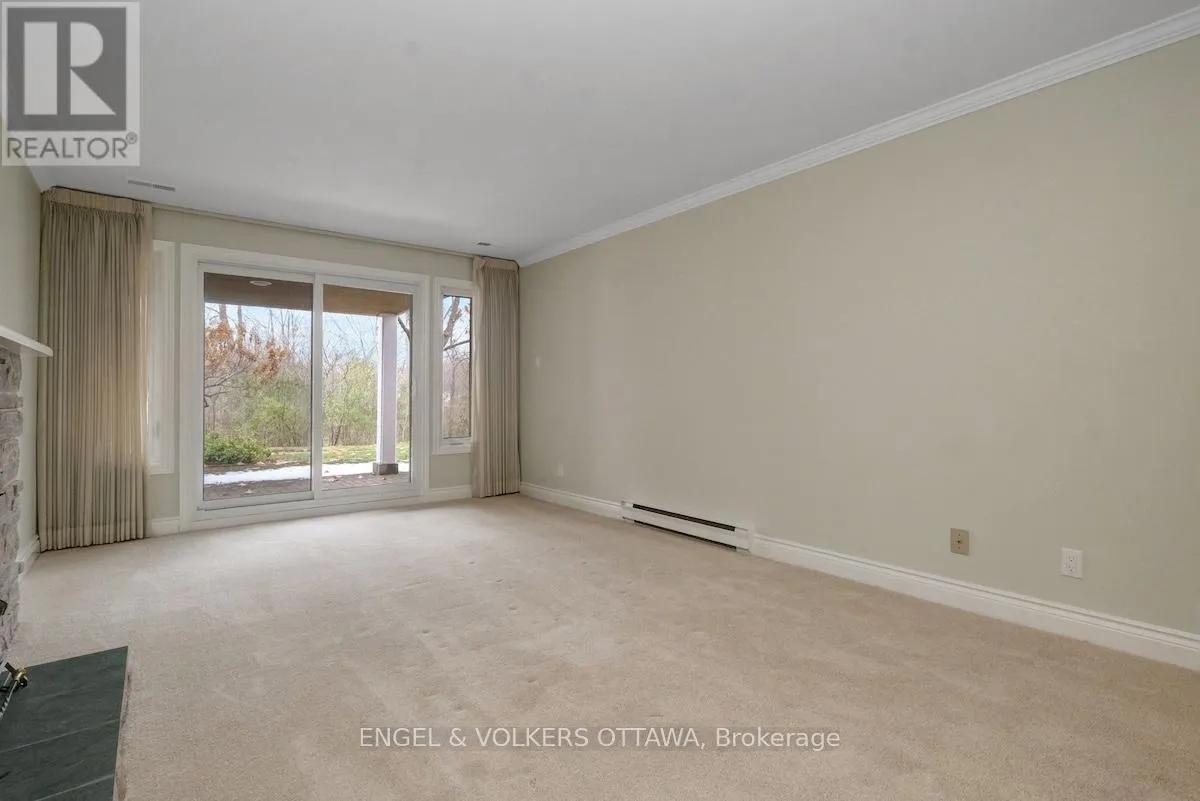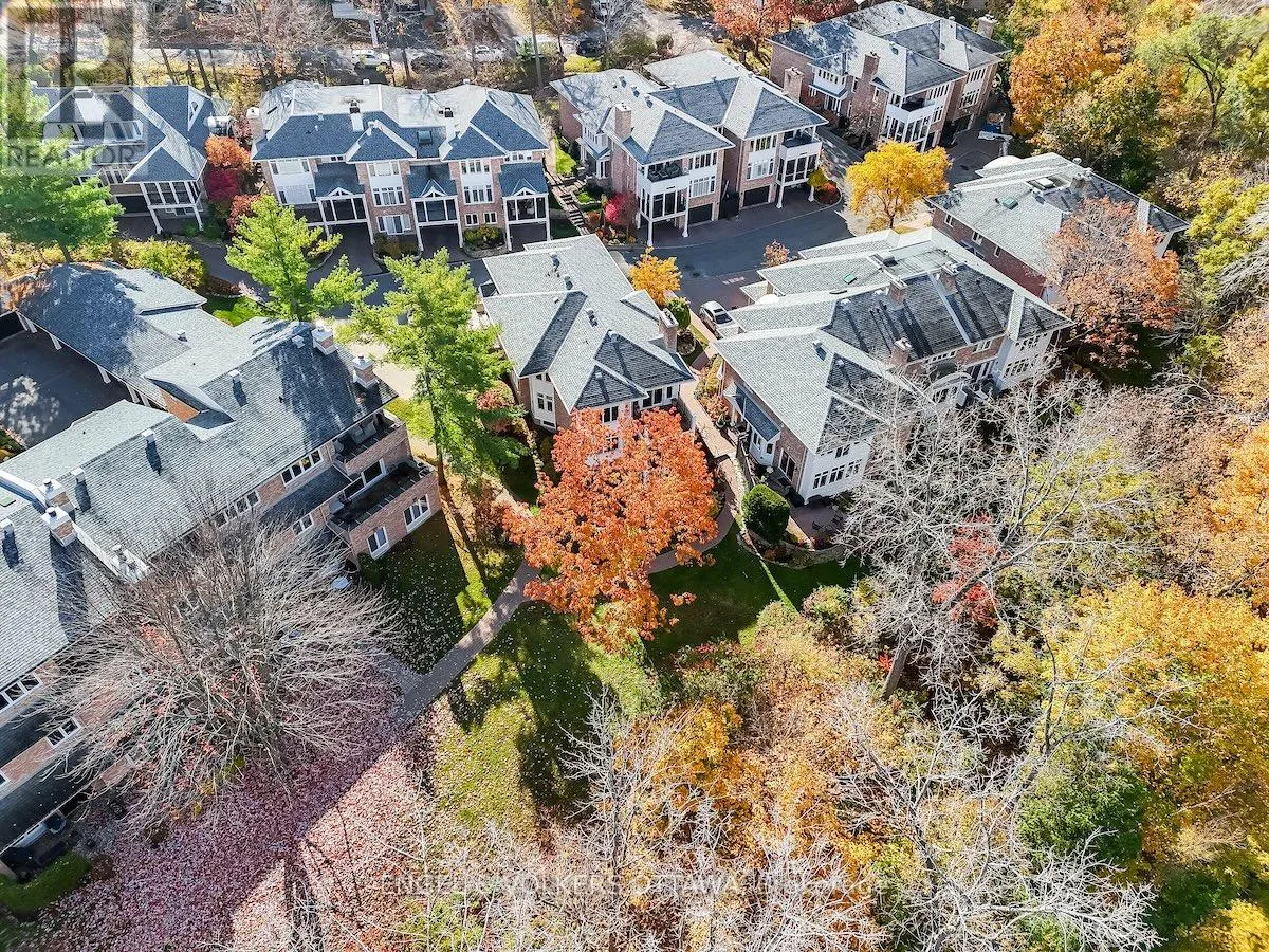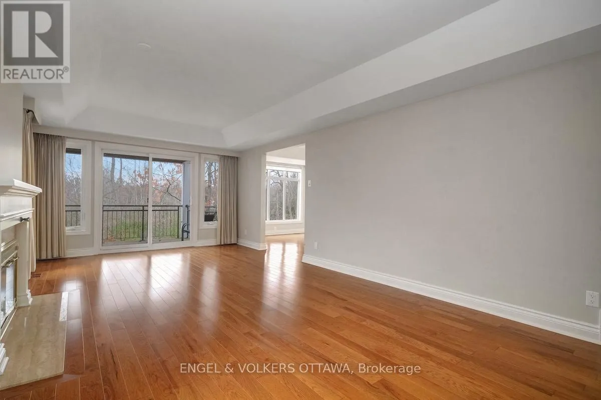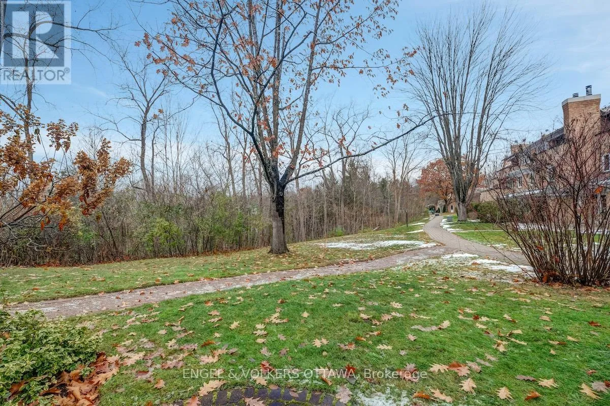 Cross Streets: Hemlock Road & Whitemarl Drive. ** Directions: Hemlock to Whitemarl, left on Bittern Court. Set in an idyllic enclave overlooking the Pond, this spacious McKay Lake Estates property offers approximately 2500 square feet of beautifully designed living space across two levels. Built in 1988, this condo features a gracious living room with a fireplace, an elegant dining room, and a bright kitchen with a breakfast nook. Step out onto the private balcony, unwind, and enjoy the peaceful park-like surroundings. The main floor also includes a cozy den and a generous primary suite complete with a renovated ensuite, adding convenient laundry, and walk-in closet, plus a second bedroom and full bath. Hardwood floors through the principal rooms create a timeless feel. The lower level provides exceptional additional living space: a large family room with fireplace and walk-out access to the patio, a third bedroom, 3-piece bath, and a roomy laundry/storage area with access to the shared garage. Tandem parking for two cars and a handy garage dumbwaiter adds to the comfort of everyday living. A wonderful opportunity to enjoy peaceful, low maintenance living in the heart of Rockcliffe on the Lake. 24 hour irrevocable please. (id:27476)