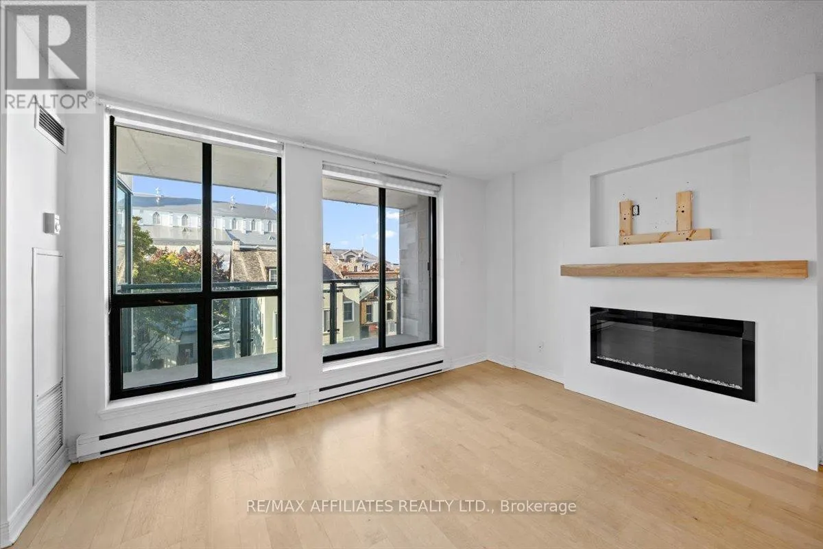 Cross Streets: North on Sussex Dr, right on Murray St, building located on the left side of the street. ** Directions: Lower Town. Community feels in Downtown Ottawa! This Four-Storey charming condo building is built to last in one of Ottawas most historic regions. Upon entering the unit, you are welcomed by a bright and simple layout. Leading into the highly functional U-shaped kitchen, you have a raised bar with dark granite durable counters, light subway backsplash, stainless steel appliances and crispy white cabinets surrounding the double-basin sink and cooking space. This stands center nearing the ideal in-unit laundry nearing the front oversized closet space. Flow into the open and sun-lit living and dining area with an electric fireplace angled off of the glass door, balcony access. The 4-piece bathroom has a focal piece vanity with a gooseneck faucet on a gold vessel sink and a luxury feel with heated flooring. King-sized possibilities in the main bedroom with deep double closets .This location has it all. Top-rated schools nearby, raving eateries, coffee shops & pubs, Rideau Centre Mall, Embassies and Museums, Major Hill Park, NAC and Byward Market. An inviting private lifestyle for all. Underground Parking + Storage + Central Air + In-Unit Laundry. (id:27476)