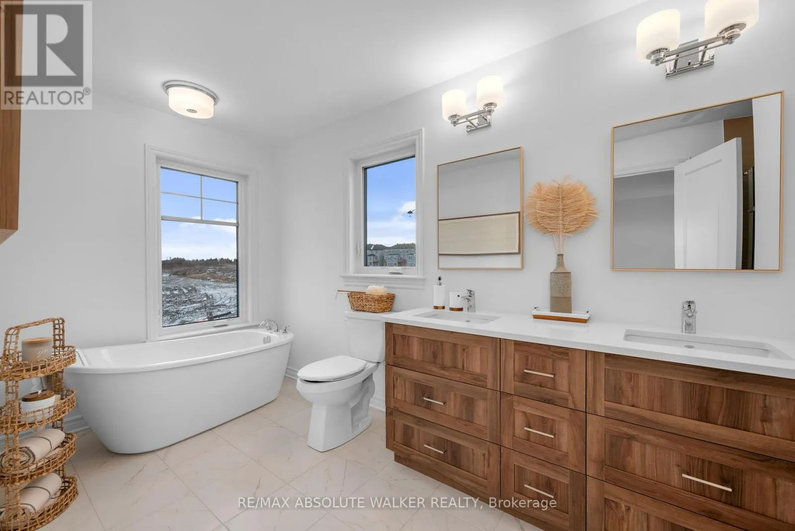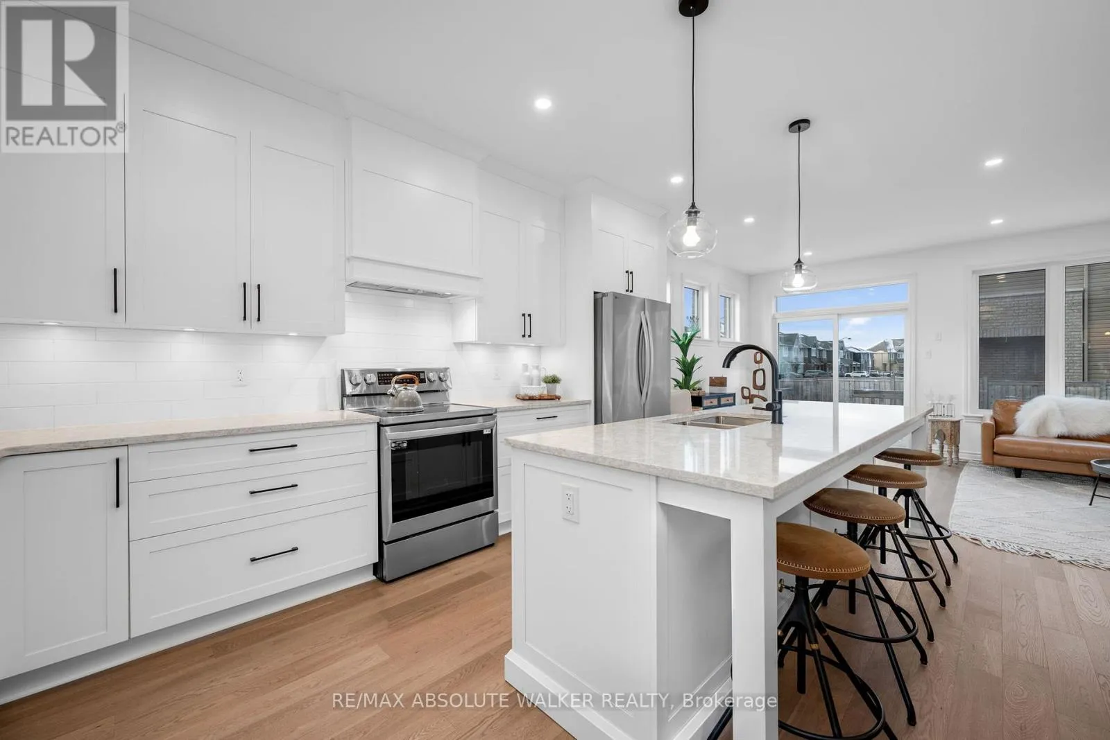 Cross Streets: Leitrim Rd. and Kelly Farm Dr. ** Directions: Albion Rd. S or Bank St. to Leitrim Rd. to Kelly Farm Dr. to Segun Raji St. to Kerala Pl. Your Next Chapter Starts in Findlay Creek! Welcome to Harmony Model (2,270 sq.ft.) by Tamarack Homes situated on a corner lot where modern design meets everyday comfort in one of the city's most sought-after neighbourhoods. This newly built, move-in ready 4 bedroom townhome showcases over $20,000 in elevated upgrades that today's buyers love. The bright, contemporary main floor, featuring 9ft flat ceilings, brushed hardwood floors, and an inviting open-concept layout truly feels like the heart of the home. The stylish kitchen stands out with shaker cabinetry, matte-black hardware, and Hanstone quartz countertops, a perfect blend of function and flair. Upstairs, unwind in the spacious primary bedroom, complete with a 4-piece ensuite and walk-in closet. Three additional bedrooms, a full bathroom, and second-floor laundry deliver comfort and convenience for growing families and guests. A finished lower-level family room offers a flex space that adapts to your lifestyle. This Energy Star certified home comes equipped with central air and is perfectly placed in vibrant Findlay Creek. Just minutes from parks, schools, shopping, transit, the future LRT, the airport, and an easy commute to downtown. Photos shown are of the model home; actual finishes may vary. (id:27476)