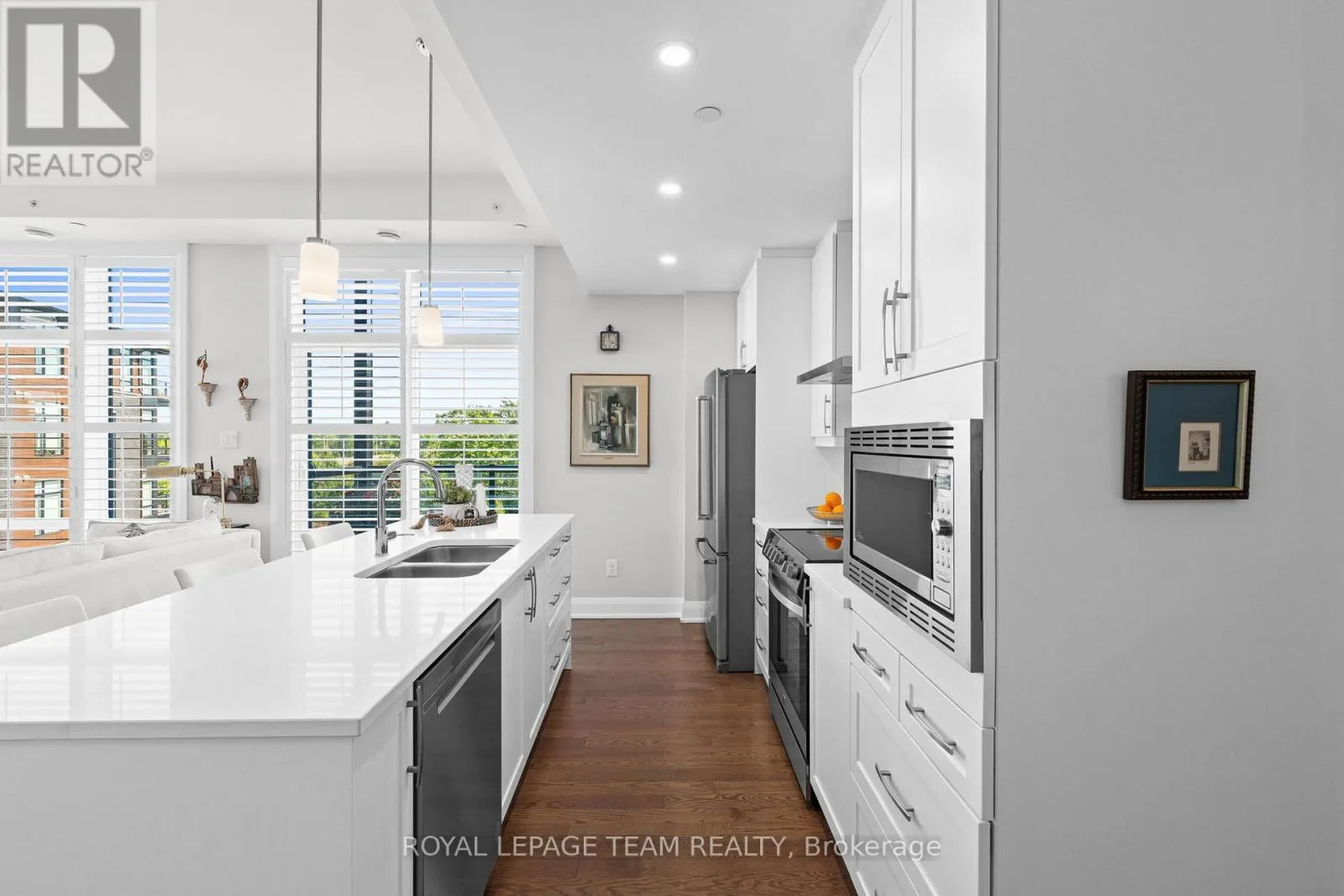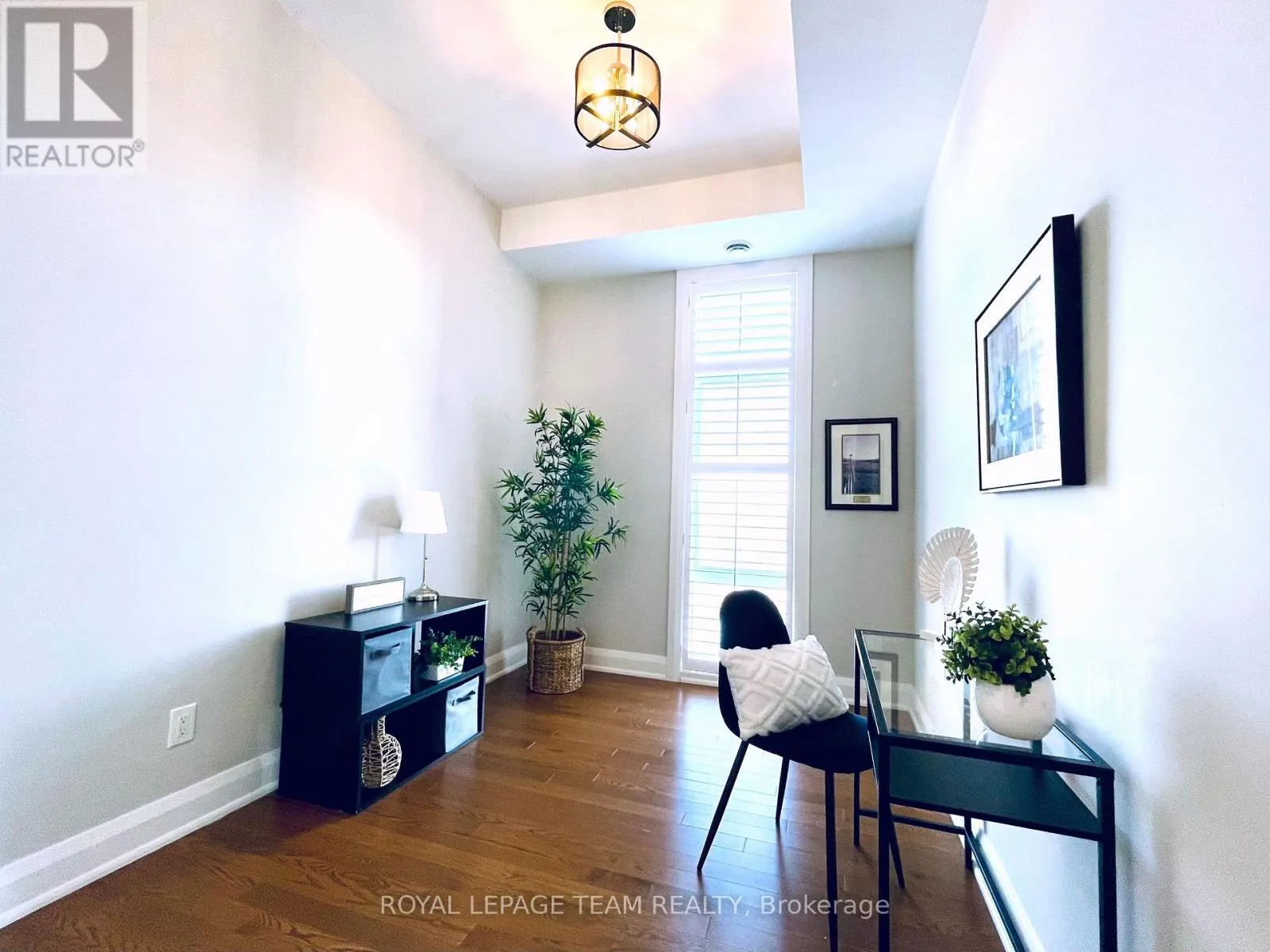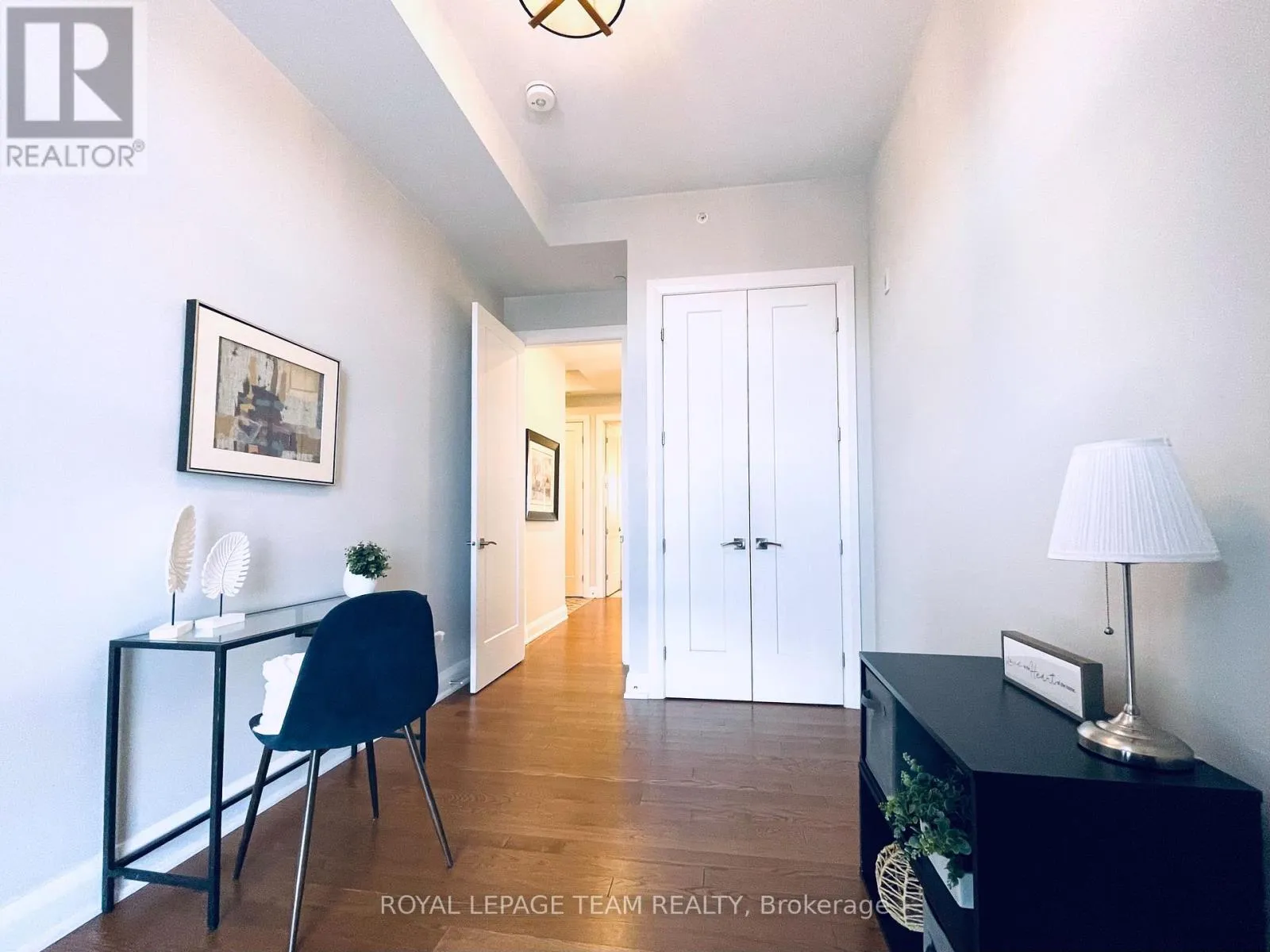Cross Streets: Cortile Pvt / Limebank Rd. ** Directions: Hunt Club Road and south on Limebank. Turn right on Cortile Pvt. Building #110 on right side. Visitors parking on left side in front of building. Executive & Effortless: Unit #301, 110 Cortile Private. Discover The Alora Due: a boutique collection of only 16 residences, offering the ideal fusion of spacious luxury and convenient, lock-and-leave living. Perfect for the discerning professional or discerning downsizer. From the striking common areas with coffered ceilings and floor-to-ceiling windows, the building establishes a standard of uncompromised quality and privacy. Step into this bright, open-concept 2-bedroom, 2-bath suite. You are immediately greeted by 10-foot ceilings, and custom California-shuttered floor to ceiling windows that fill the space with light and frame tranquil views of the surrounding greenspace. Timeless hardwood and upgraded tile flooring throughout offers both sophistication and low-maintenance practicality. The chef's kitchen is a spectacular centerpiece, featuring quartz counters, a large island with a breakfast bar, newly upgraded stainless-steel appliances, and quality custom cabinetry. The primary suite is a private retreat, complete with a generous walk-in closet and a spa-inspired ensuite with additional custom cabinetry. A flexible second bedroom/den and full bath are perfect for guests or a home gym. A separate, private space is ideal for a home office, or to utilize as an oversized in-suite storage room, plus two additional storage lockers (one on the same level). The amenities you need are designed for ease: enjoy heated underground parking, bike storage, a dog wash station, and your private balcony. Your location is unparalleled: scenic walking paths are at your doorstep, and you are a short stroll from the new LRT station, dining, and shops. Commute quickly to the airport, further shopping, or downtown, all just minutes away. This meticulously maintained residence offers a seamless, sophisticated lifestyle in a sought-after, natural enclave. Style, space, and connection await. Book a viewing today! 301-110 Cortile Private may be your new address! (id:27476)