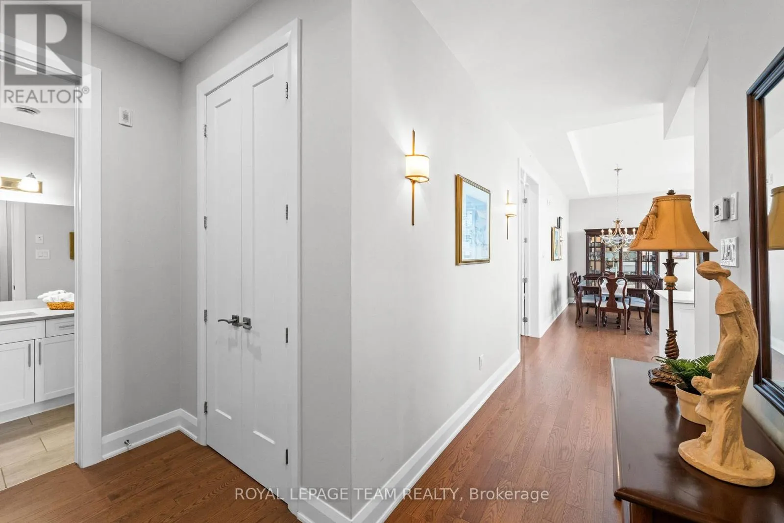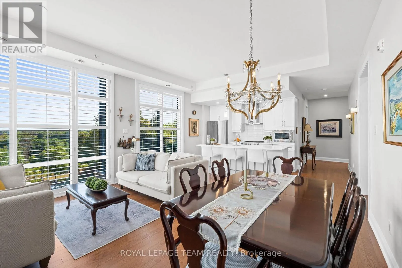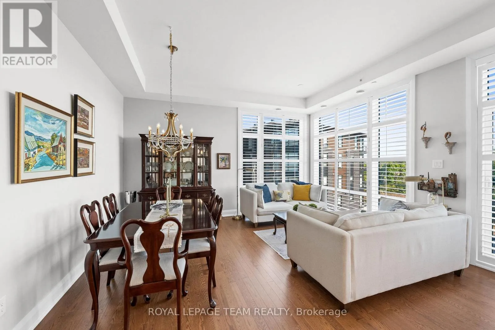 Cross Streets: Cortile Pvt / Limebank Rd. ** Directions: Hunt Club Road and south on Limebank. Turn right on Cortile Pvt. Building #110 on right side. Visitors parking on left side in front of building. Executive & Effortless: Unit #301, 110 Cortile Private. Discover The Alora Due: a boutique collection of only 16 residences, offering the ideal fusion of spacious luxury and convenient, lock-and-leave living. Perfect for the discerning professional or discerning downsizer. From the striking common areas with coffered ceilings and floor-to-ceiling windows, the building establishes a standard of uncompromised quality and privacy. Step into this bright, open-concept 2-bedroom, 2-bath suite. You are immediately greeted by 10-foot ceilings, and custom California-shuttered floor to ceiling windows that fill the space with light and frame tranquil views of the surrounding greenspace. Timeless hardwood and upgraded tile flooring throughout offers both sophistication and low-maintenance practicality. The chef's kitchen is a spectacular centerpiece, featuring quartz counters, a large island with a breakfast bar, newly upgraded stainless-steel appliances, and quality custom cabinetry. The primary suite is a private retreat, complete with a generous walk-in closet and a spa-inspired ensuite with additional custom cabinetry. A flexible second bedroom/den and full bath are perfect for guests or a home gym. A separate, private space is ideal for a home office, or to utilize as an oversized in-suite storage room, plus two additional storage lockers (one on the same level). The amenities you need are designed for ease: enjoy heated underground parking, bike storage, a dog wash station, and your private balcony. Your location is unparalleled: scenic walking paths are at your doorstep, and you are a short stroll from the new LRT station, dining, and shops. Commute quickly to the airport, further shopping, or downtown, all just minutes away. This meticulously maintained residence offers a seamless, sophisticated lifestyle in a sought-after, natural enclave. Style, space, and connection await. Book a viewing today! 301-110 Cortile Private may be your new address! (id:27476)