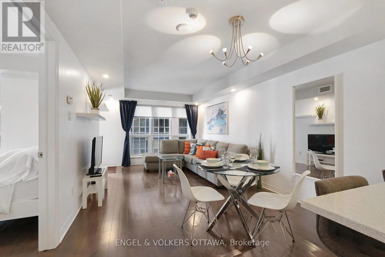 Cross Streets: Besserer and Cumberland. ** Directions: Corner of Besserer and Cumberland. FULLY FURNISHED. Live Your Luxury! In the heart of downtown Ottawa, discover this beautiful one-bedroom pied-Ã -terre condo, an elegant retreat designed for those who appreciate the ultimate city lifestyle. This thoughtfully designed home features a spacious open-concept living and dining area filled with natural light from floor-to-ceiling windows and extending to a private balcony overlooking the serene courtyard. The stylish kitchen boasts modern finishes, quartz countertops, and sleek stainless-steel appliances, while the generously sized bedroom includes a walk-in closet. Additional conveniences include in-suite laundry and a dedicated storage locker. Located in the prestigious Claridge Plaza Phase 4, residents enjoy exclusive access to a fitness centre with saltwater pool and sauna, rooftop terrace, party room, 24/7 concierge service, and secure entry - all just steps away from the ByWard Market, Parliament Hill, Rideau Centre, uOttawa, transit, and everyday essentials. Experience downtown living at its finest in this peaceful retreat above the bustle of the city. (id:27476)