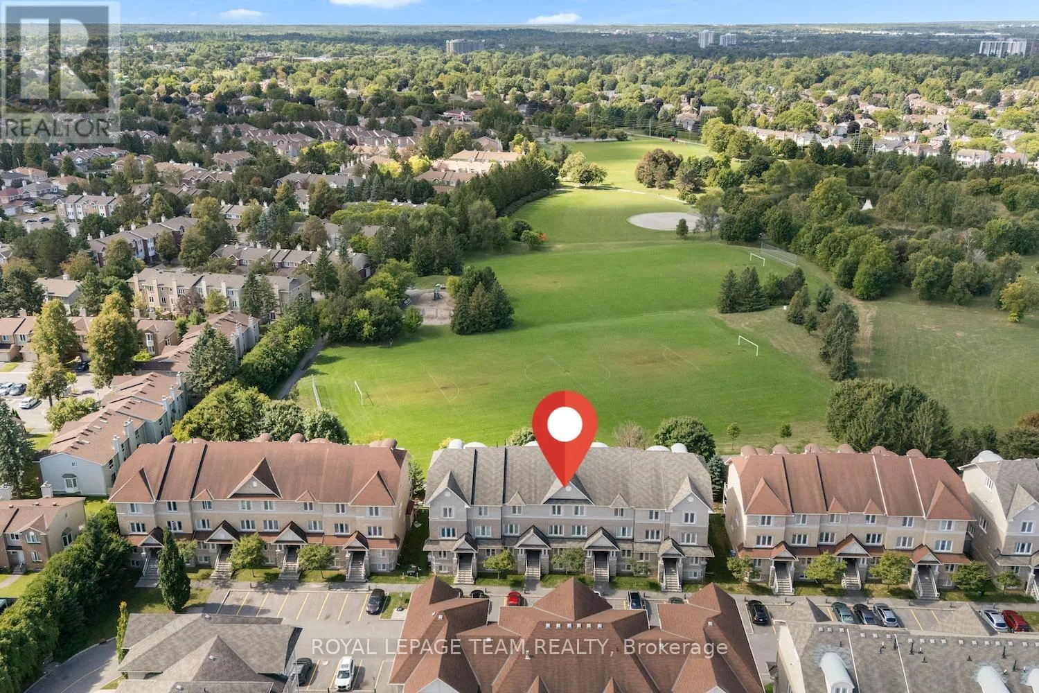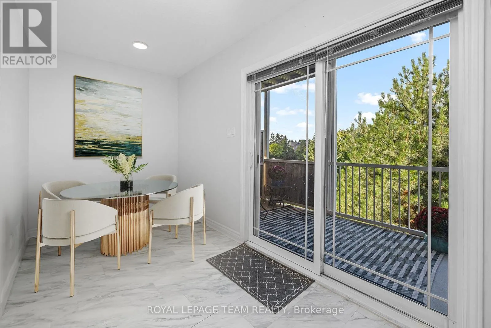 Cross Streets: Centrepointe Drive. ** Directions: From Centrepointe Drive turn onto Paseo Private, unit is at the back of the complex backing onto Centrepointe Park. Parking #16 in front of unit plus lots of visitors' parking in centre of complex. Welcome to 239 Paseo Private, a spacious three-level condominium townhome conveniently located in Centrepointe, Nepean. Offering nearly 1,400 sq. ft. of living space, this home combines functionality with comfort in a premium location. The open-concept main level features a generous living and dining area, a versatile eat-in kitchen with patio doors to the balcony, plus a powder room. Upstairs, the primary bedroom boasts vaulted ceilings, a wall of closets, its own private balcony, and a full ensuite bath. The second bedroom enjoys cheater-ensuite access to a second full bathroom. This level also includes a storage room plus laundry/utility space. The top-level loft provides many possibilities...perfect as a home office, media room, or even a third bedroom. All three levels feature hardwood flooring. Main balcony (15'1" x 7'2") off kitchen, plus balcony off the primary bedroom (7'2" x 5'9") with gorgeous views overlooking Centrepointe Park with 36 acres of parkland. Enjoy nightly sunsets over the park and plenty of sunlight all day long. Parking spot #16 right in front of unit with lots of visitors' parking nearby. Furnace 2008; A/C 2024; washer and dryer 2024. All this, just steps from parks, shops at College Square, Ben Franklin Place with a skating rink in winter, the Ottawa Public Library, Meridian Theatre, and public transit. Current Status Certificate available upon request. Don't miss this exceptional opportunity in Centrepointe! Some photos virtually staged. (id:27476)