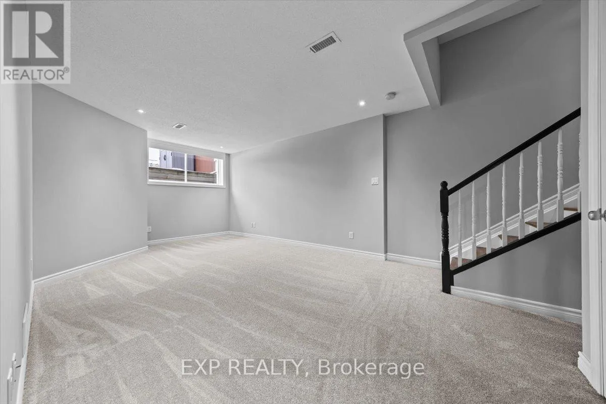 Cross Streets: Vienna Terrace and Montmorency. ** Directions: Tenth Line to Southfield to Branthaven, right on Montmorency to Vienna Terrace. Welcome to this beautifully maintained 3-bedroom, 2.5-bath brick townhouse featuring a single garage and a bright, finished basement with a large storage area. The home showcases beautifully refinished hardwood floors and staircase completed in 2025. The spacious kitchen offers ample counter space and cabinetry-perfect for family meals and entertaining-while the open-concept living and dining area includes a cozy gas fireplace and patio doors leading to a fully fenced, sunny west-facing backyard, ideal for relaxing or hosting summer barbecues. Upstairs, the primary bedroom features a walk-in closet and a private ensuite with a soaker tub and separate shower. The lower level provides a welcoming recreation room with a large window that fills the space with natural light, making it ideal for a home office, gym, or play area. Recent updates in 2025 include a new roof, fresh paint, new carpeting, washer, dryer, stove, and range hood, making the home move-in ready. Conveniently located close to schools, parks, shopping, and transit, this townhouse combines comfort, style, and functionality for today's modern living. Bonus: snow removal has been prepaid for the 2025-2026 season. (id:27476)