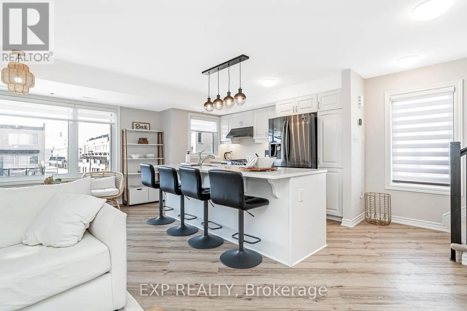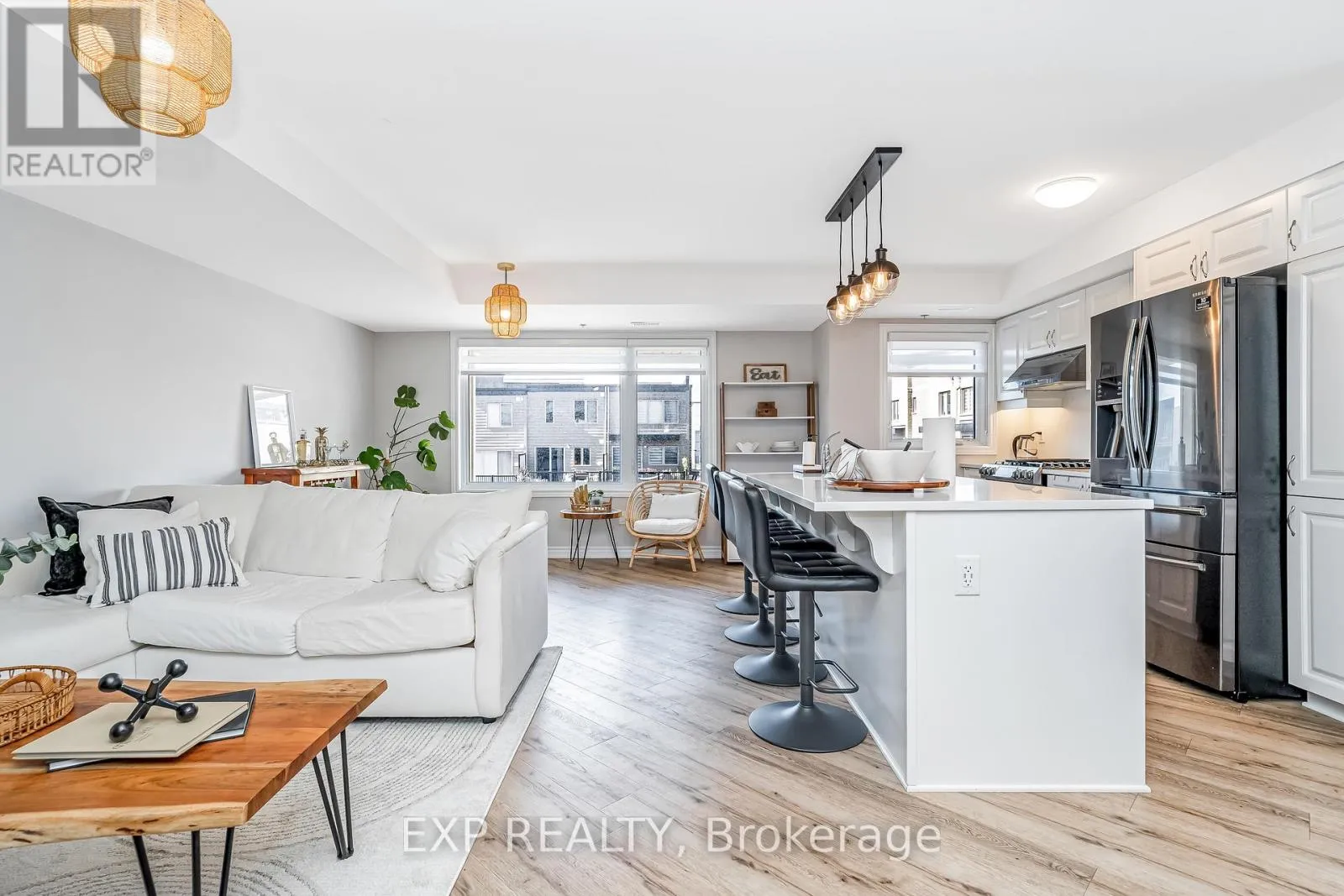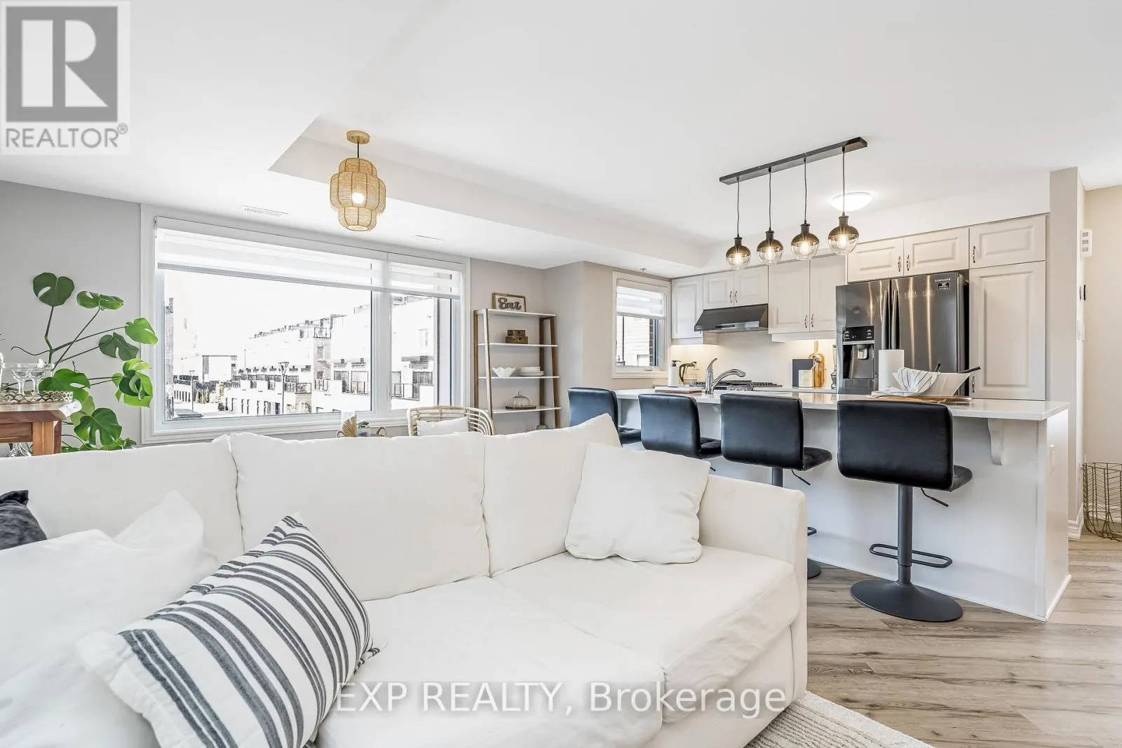 Cross Streets: Montreal Road/Codd's Road. ** Directions: Montreal Road, South on Codd's, Right on Mikinak, Right on Squadron, Left on Takamoase, Right on Makwa. Welcome to your new happy place, a bright, modern 2019 2 bed, 2 bath upper-level corner unit in one of Ottawa's most vibrant communities. Steps from Parks, Nature Trails & Paths on Ottawa River, Montfort, CSE, CSIS, CMHC, LRT, Costco, plus just minutes to prestigious private schools: Ashbury College and Elmwood School. With over $60K in upgrades, this home features smooth ceilings, custom lighting, upgraded luxury vinyl plank flooring, and a sun-filled open layout. The kitchen shines with quartz counters, pristine white cabinetry, upgraded charcoal matching appliances, and a spacious eat-at island. Upstairs, enjoy a private balcony off the primary bedroom, a versatile second bedroom with TONS of light (perfect as gym, studio, office or warm bedroom), and a sleek full bath with his and hers sinks set in a quartz counter and complimentary gleaming tile work. Top it all off with your own private rooftop terrace that once you step into, the views of the skyline will make you fall in love. The terrace is ideal for BBQ socials (equipped with gas bbq hookup) , sun-soaked peaceful afternoons, or starry evenings. If you haven't been to Water Ridge Village, this will be your perfect intro. Common Element fees include: Building Insurance, Garbage Removal, General Maintenance and Repair, Landscape, Management Fee, Reserve Fund Allocation, Snow Removal (id:27476)