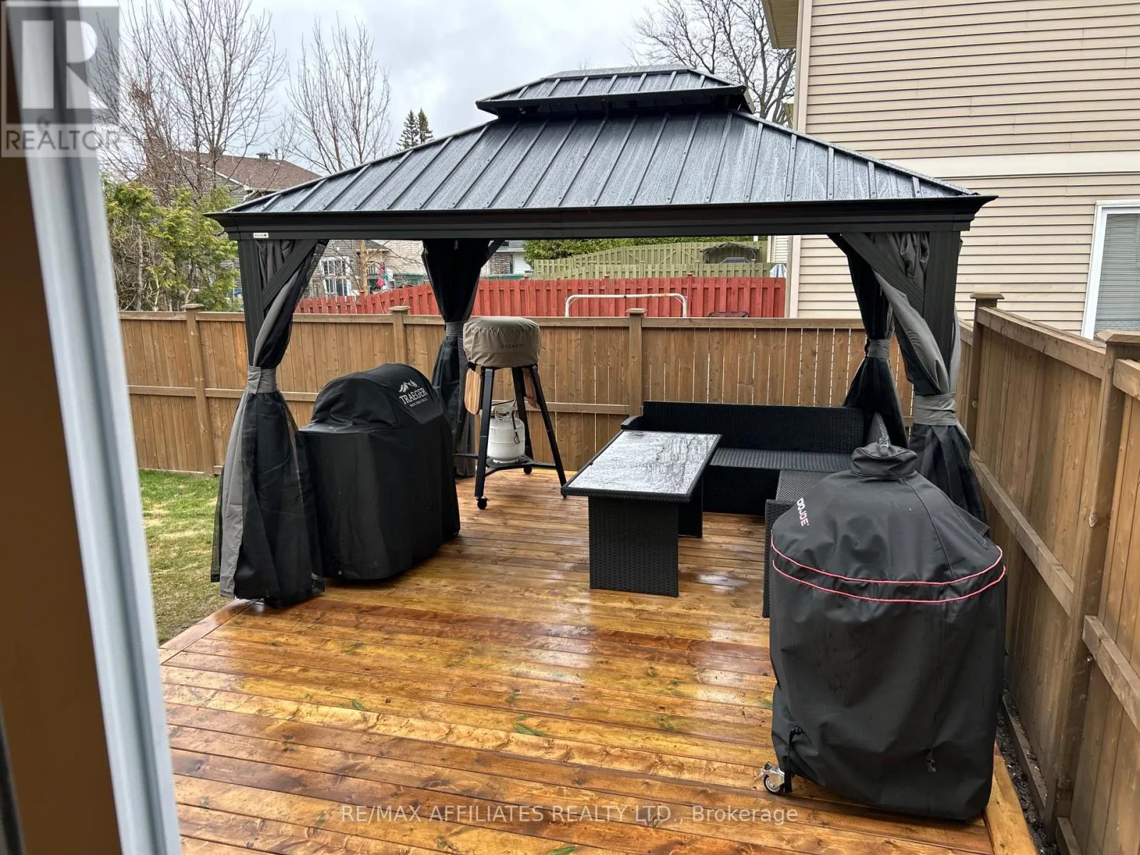 Cross Streets: JEANNE D'ARC BOULEVARD. ** Directions: 417 East to Highway 174- exit Place d'Orleans Drive, left on Place d'Orleans Dr to Champlain; left on Champlain, right on Jeanne D'Arc Blvd north, right on Borland; destination will be on your left. Welcome to 910 Borland Drive, a beautifully updated 3-bedroom semi-detached freehold home in the heart of Orleans. Set on a premium, private backyard and featuring an extra-long driveway, this home stands out for both functionality and curb appeal. Step inside to a bright, well-designed layout with hardwood flooring (2021), an updated kitchen (2021) with modern appliances, and spacious living and dining areas perfect for family life and entertaining. The home has been thoughtfully upgraded, giving you peace of mind for years to come. Upstairs, you'll find three generous bedrooms with updated flooring (2021) and a stylish main bathroom remodelled in 2021. The fully finished basement adds valuable extra living space - ideal for a family room, home gym, or office setup. Outside, the premium backyard provides a rare sense of privacy and space, complete with a new deck and gazebo (2025), new fencing (2021), and natural gas BBQ hookups for easy outdoor cooking. This is a yard you'll love spending time in. With a long list of major upgrades - roof (2016), furnace (2015), A/C (2019), hot water tank (2015, owned), Verdun windows & doors (2021), attic insulation upgrade (2025) - the home has been meticulously maintained. Additional perks include front interlock steps (2023), alarm system, camera system & video doorbell, and all new appliances (2021). Move-in ready, modernized throughout, and located in a family-friendly neighbourhood close to parks, schools, shopping, and transit - this is the one you've been waiting for. (id:27476)