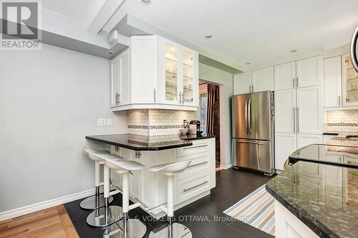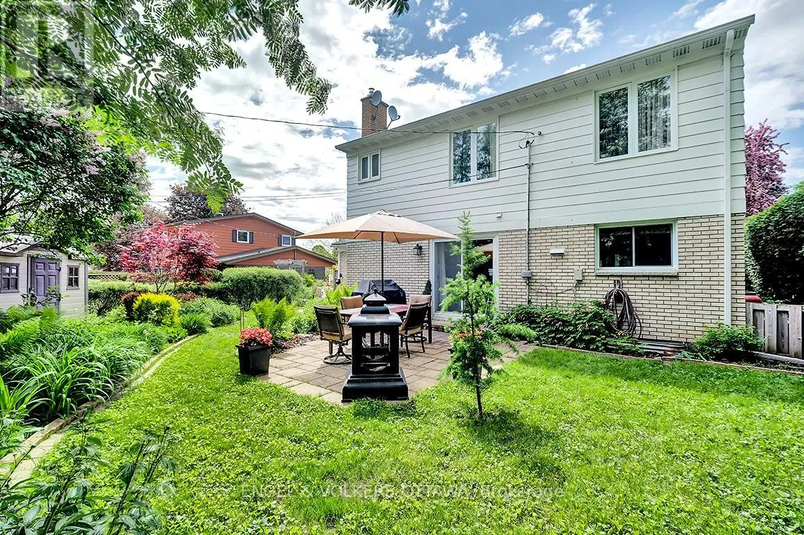 Cross Streets: Louisiana Ave & Quinton St. ** Directions: From Kilborn, turn onto Virginia Dr, then Louisiana Ave. Nestled on a beautiful, tree-lined street in Guildwood Estates, 1885 Louisiana Ave is a warm and well-maintained family home with a private backyard retreat. The charming covered entry opens into a bright, tiled foyer that flows into the spacious front-facing living room with oversized windows and hardwood floors. Just past the dining room, the renovated kitchen features white shaker cabinets, stone countertops, stainless steel appliances, a peninsula with seating, and a full-height pantry. The adjacent family room continues the home's warm aesthetic with exposed ceiling beams, a stone-surround gas fireplace, built-in shelving, and sliding doors to the yard. Upstairs, the primary bedroom boasts hardwood floors, multiple windows, ample closet space, and a dedicated sitting or dressing area, with direct access to the updated ensuite. Three additional bedrooms offer flexibility for children, guests, or a home office, each filled with natural light and consistent finishes. An updated full bathroom with a stone vanity, tile flooring, and a tub-shower combination is shared by the remaining bedrooms on this level. The fully finished lower level adds valuable living space, featuring a versatile rec room with plush carpeting, recessed lighting, and an impressive wall-to-wall built-in bookshelf. A well-sized bedroom provides privacy for guests or extended family, and includes a three-piece ensuite with a walk-in shower. A combined two-piece bathroom and laundry area, along with a dedicated storage room, enhances the home's functionality. Outside, the beautifully landscaped, private backyard, with a quaint interlock patio surrounded by mature trees and carefully curated plantings, creates a peaceful, park-like atmosphere. This lovely neighbourhood offers convenient proximity to Ottawa Hospital campuses, the uOttawa Faculty of Medicine, the Train Yards shopping district, extensive parks and schools, and easy access to the 417, Riverside Drive, and major transit routes. (id:27476)