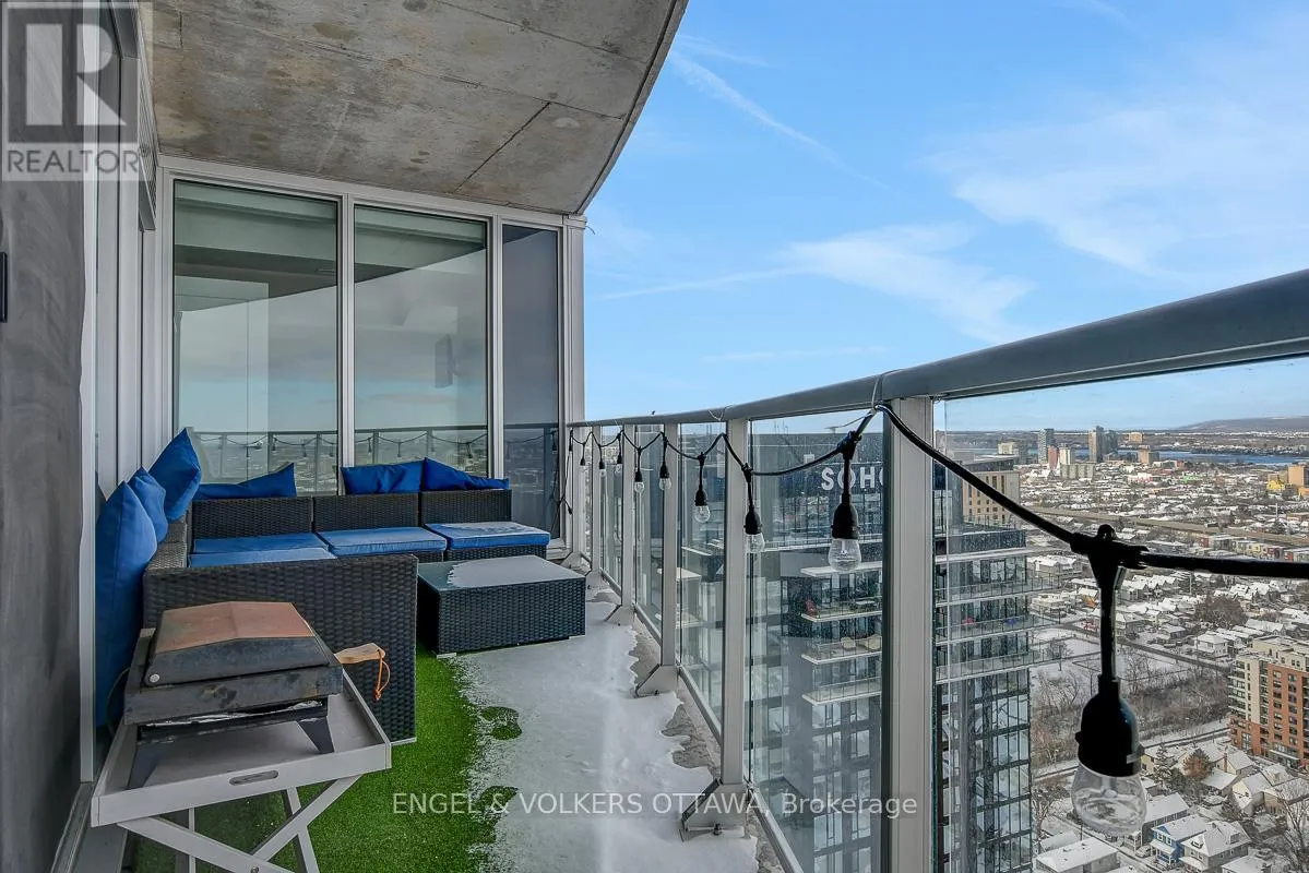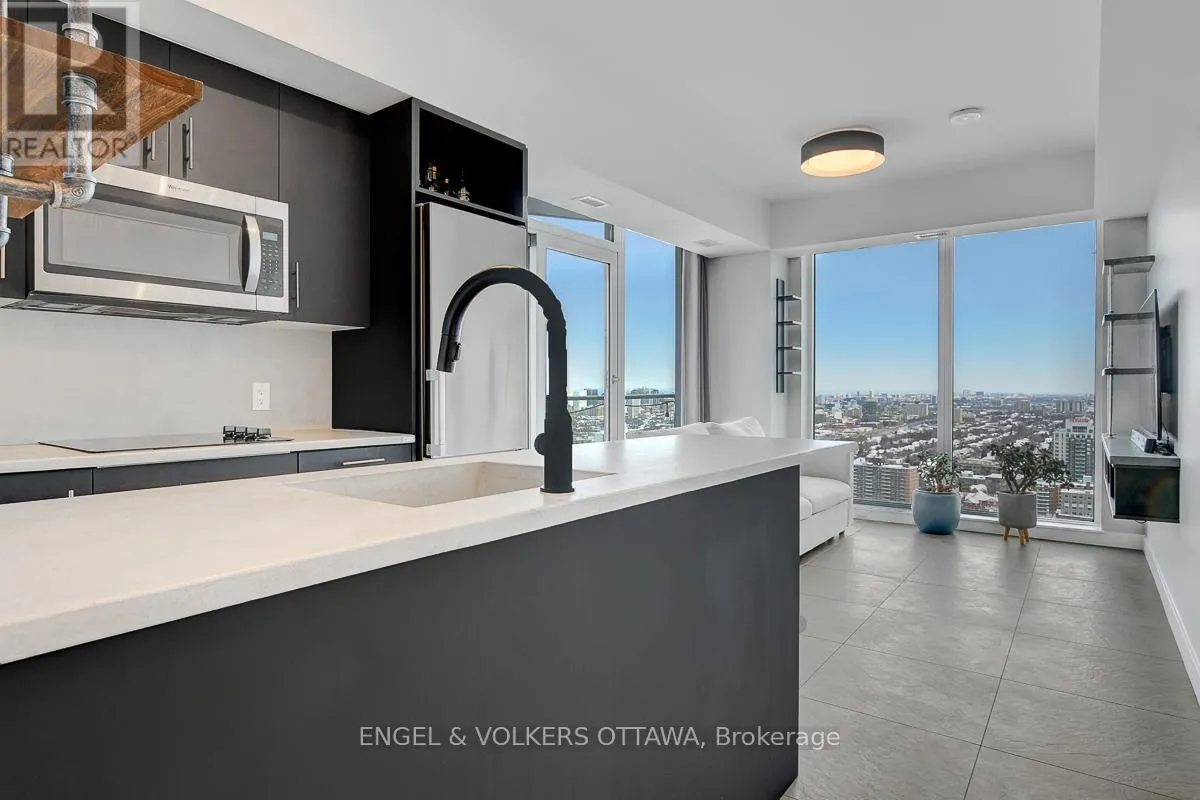 Cross Streets: Carling Ave & Preson St. ** Directions: Carling Ave to corner of Preston St. Beautiful one-bedroom condo offering stunning north-facing city views and sweeping vistas of the Gatineau Hills from the 32nd floor. Floor-to-ceiling windows flood every room with natural light, and the spacious balcony-where electric BBQs are permitted-provides an ideal spot to unwind and take in the scenery. The open-concept kitchen overlooks the living area and features custom concrete countertops and quality Whirlpool appliances. The bedroom includes a generous closet and floor-to-ceiling windows, offering excellent privacy while maintaining brightness. This unit includes exclusive underground parking with a dedicated attached storage locker. Residents enjoy an impressive range of amenities, including a concierge, indoor pool, yoga studio, fitness centre, sauna, and a meeting/party room. Tenant is responsible for electricity, cable, and Wi-Fi. (id:27476)