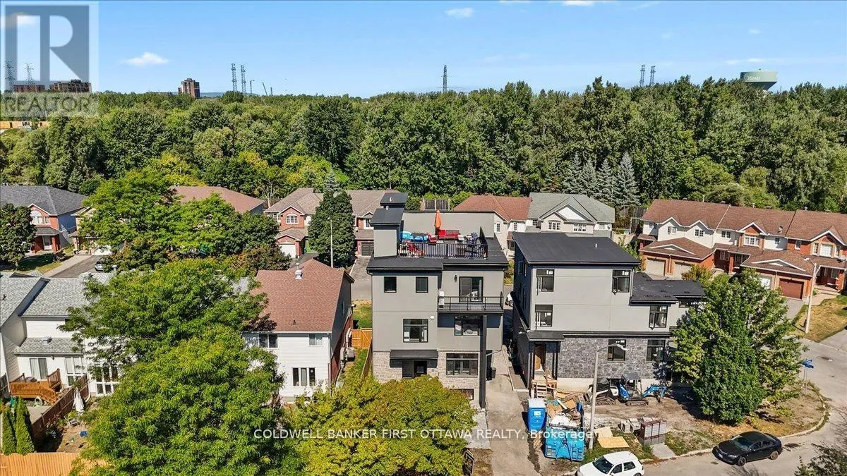 Cross Streets: Johnson and Pennard. ** Directions: 25 PENNARD WAY OTTAWA ON K1T 4C1. Nestled in the prestigious and well-established Hunt Club neighbourhood at 25 Pennard way, this newly constructed, semi-detached executivetownhome represents a premier opportunity for both luxurious owner-occupancy and strategic investment. The property features two elegantlyappointed, self-contained units, each with private entrances, each with two private parking spots, in-suite laundry, and separate mechanicalsystems, ensuring privacy and ease of management while generating significant rental income to offset carrying costs. Residents will enjoybreathtaking vistas from a 500 sq.ft rooftop terrace, spacious interiors with ensuite bathrooms, walk-in closets, and an open-concept designadorned with high-end finishes and cabinetry. Its unparalleled location offers immediate access to major employment hubs, including the OttawaInternational Airport and Uplands Business Park, effortless commuting via Highway 417, and proximity to premier amenities such as Hunt ClubPlaza, recreational facilities, and scenic green spaces, making it an exceptional choice for discerning buyers seeking opulence and astuteinvestment in a high-demand rental market (id:27476)