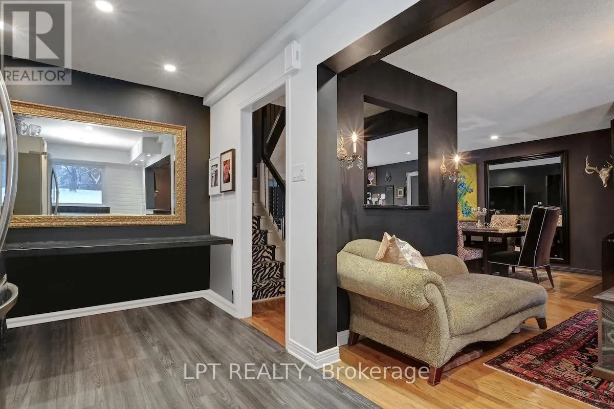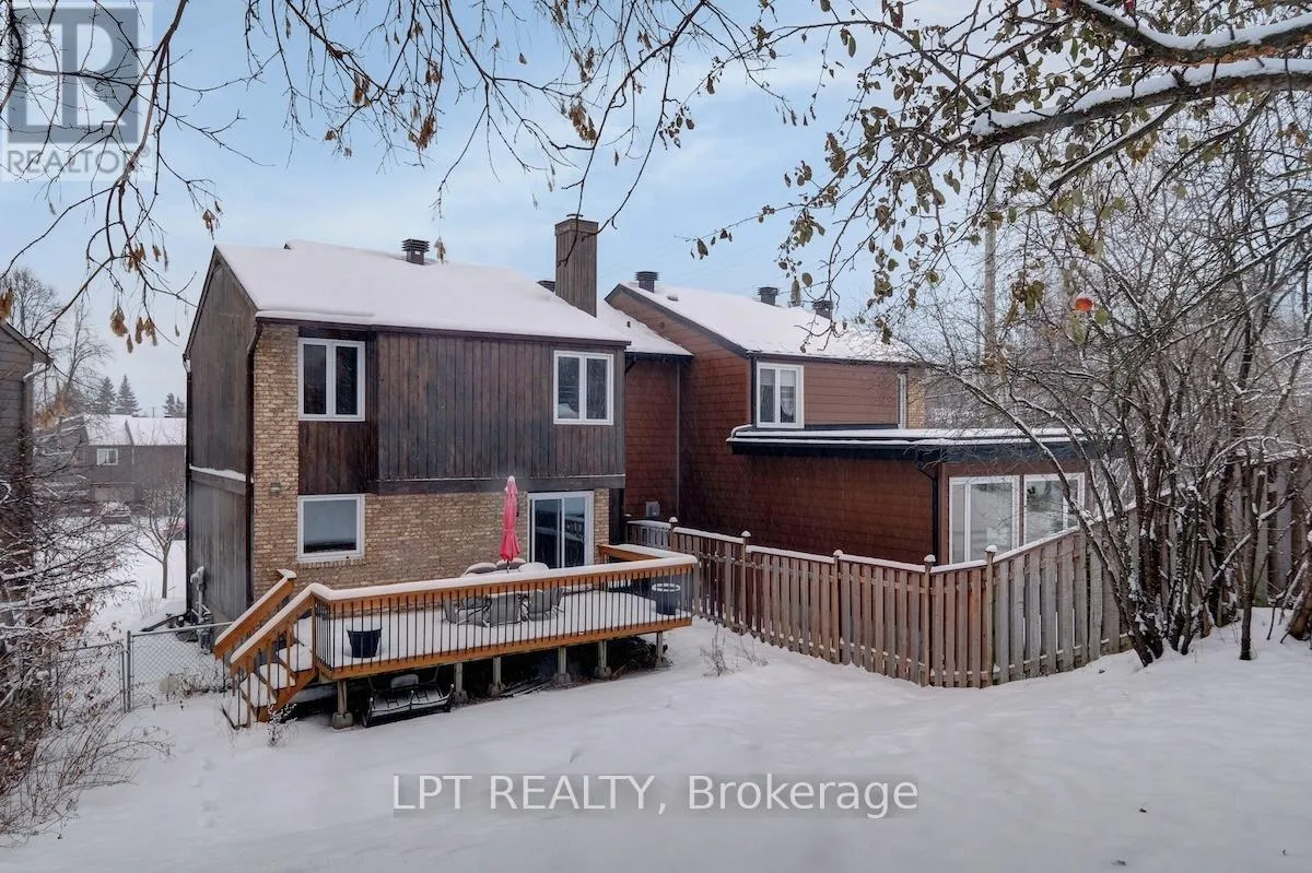 Cross Streets: Flannery. ** Directions: Flannery to Sandhurst Crt. Welcome to 56 Sandhurst, an executive 4-bed, 3-bath semi-detached home tucked away on a quiet cul-de-sac in highly sought-after Riverside Park-steps to Mooney's Bay, Hogs Back, and scenic pathways. Situated on an oversized lot, this property offers exceptional space and privacy rarely found in the area. The bright open-concept living/dining room features hardwood flooring and a striking double-sided wood-burning fireplace, along with patio doors that extend your living space into a spectacular, private backyard oasis with a large deck-an outdoor retreat that truly sets this home apart. The sun-filled kitchen includes ample cabinetry, granite countertops, an eating area, and direct flow into the adjacent sitting/dining space. The second level boasts four generous bedrooms, including a spacious primary bedroom with a 4-piece ensuite, plus an additional full 4-piece bathroom. The finished lower level offers a versatile family room/exercise area, abundant storage, and a dedicated laundry room with convenient inside access to the single car garage. Perfectly positioned close to all amenities-O-Train transit, Carleton University, parks, schools, airport, shopping, and bike paths-this home provides easy access to downtown while enjoying a unique, private setting in one of Ottawa's beloved communities. A rare opportunity you won't want to miss. (id:27476)